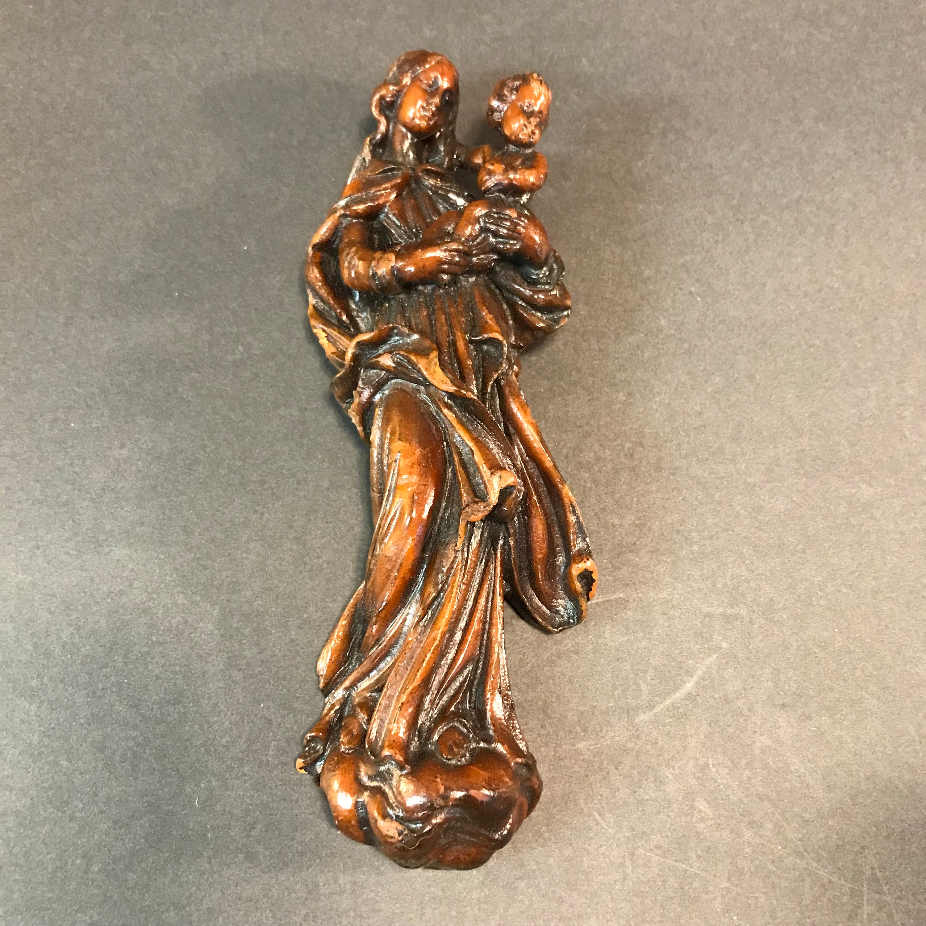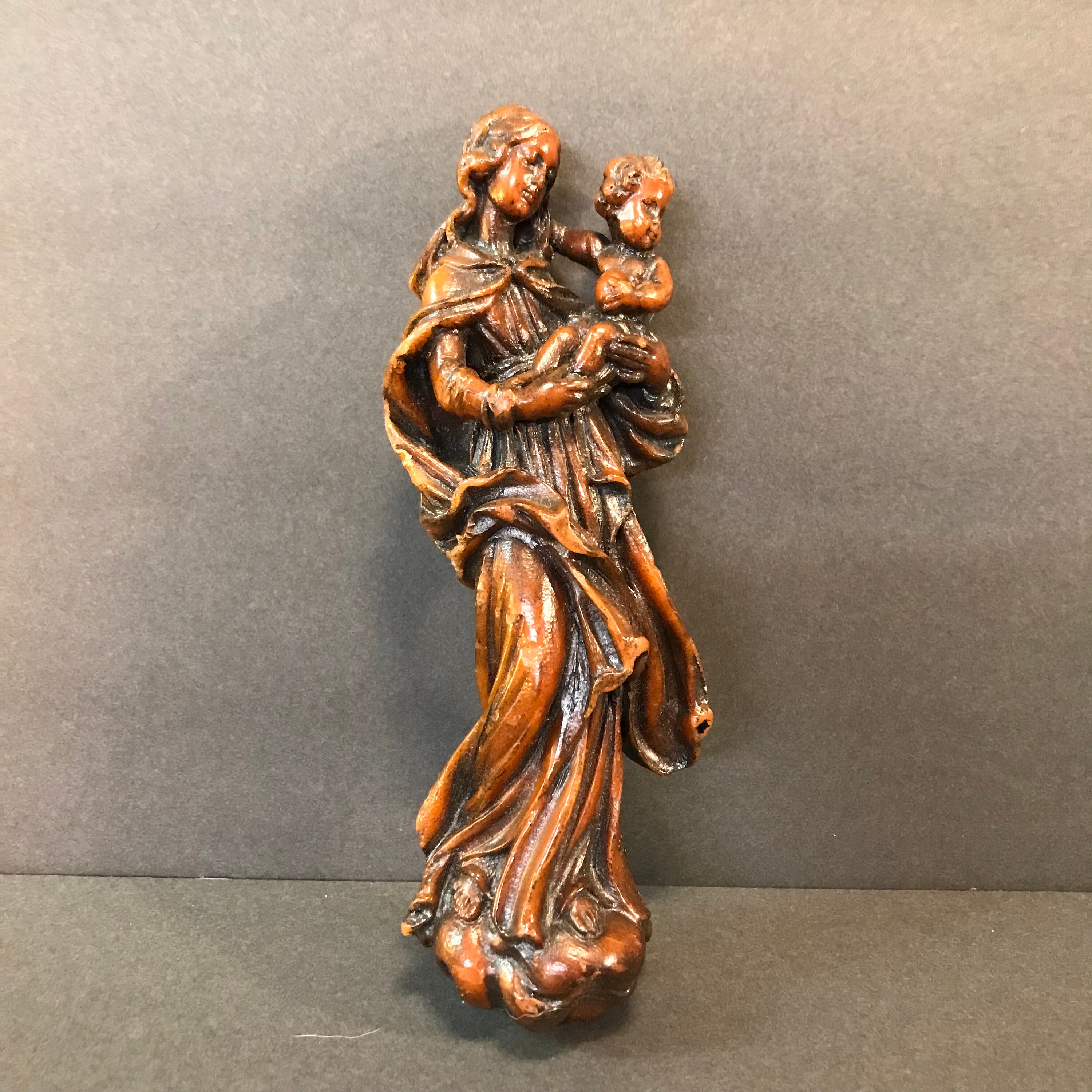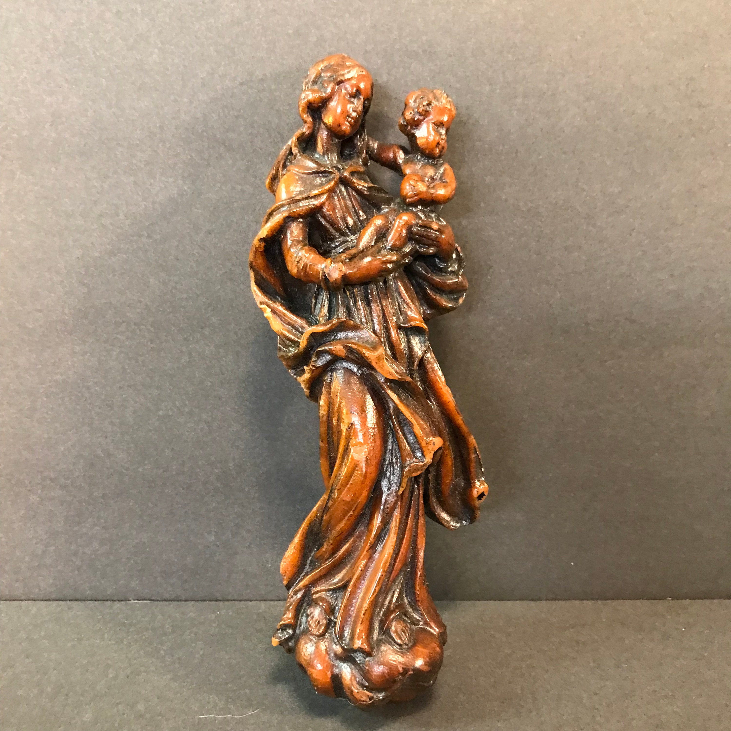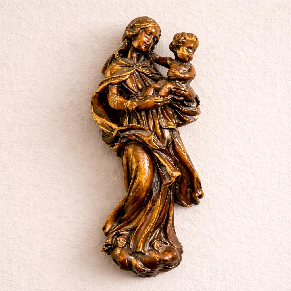Vintage Religious Icon Wall Hanging | Virgin Mary and Baby Jesus Wax Relief Decor