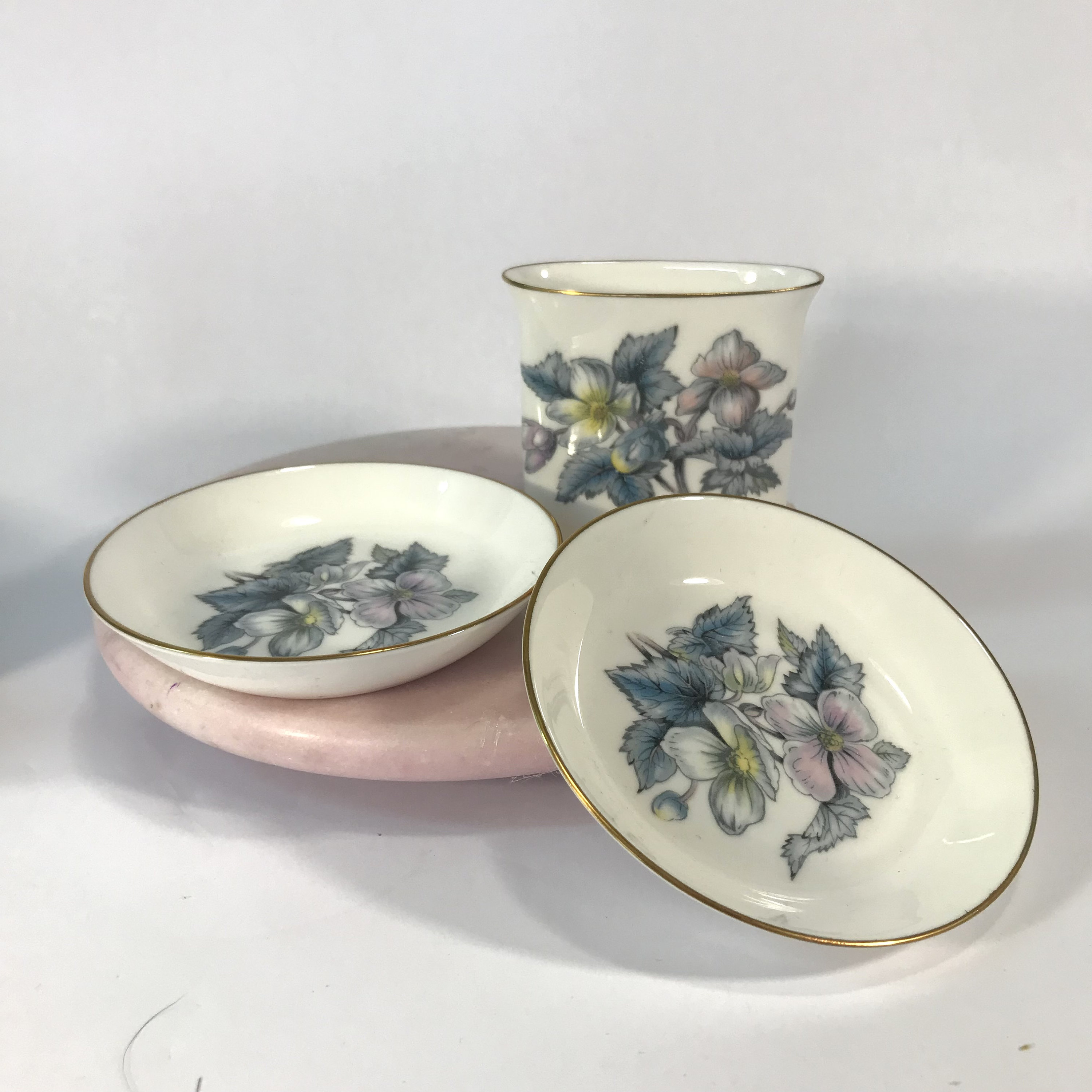 Could also be used a vanity decor as two trinket dishes and a small oval vase for a posy!