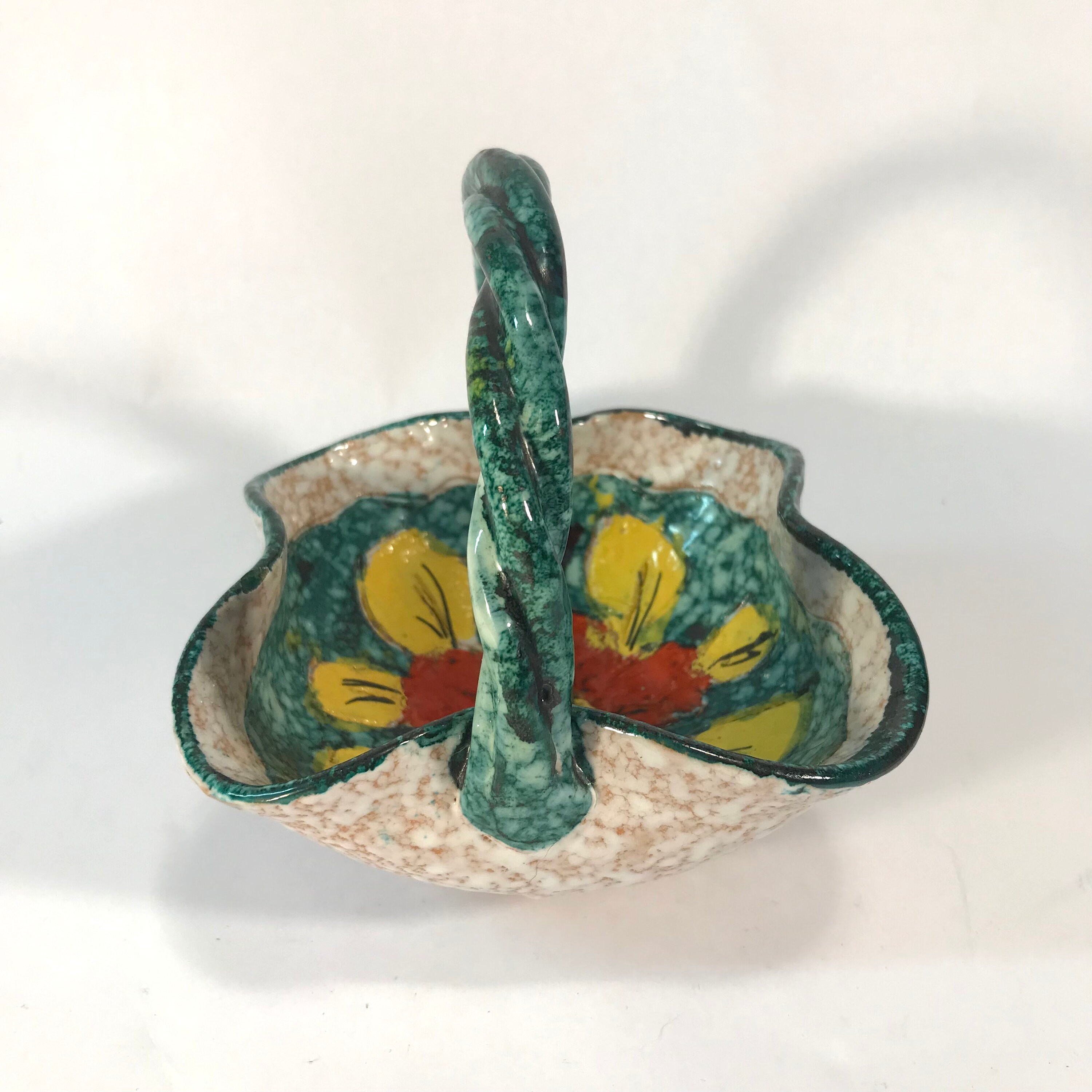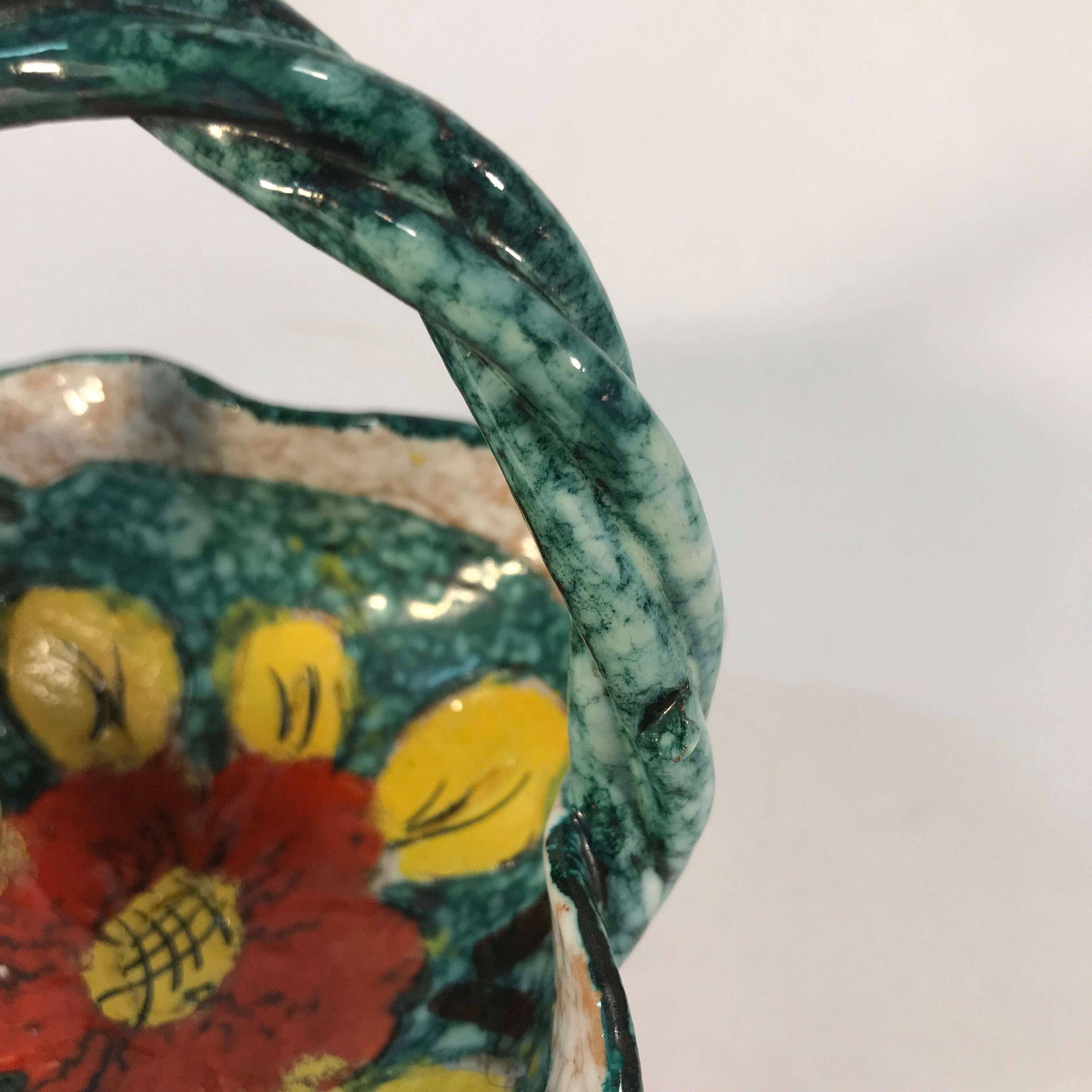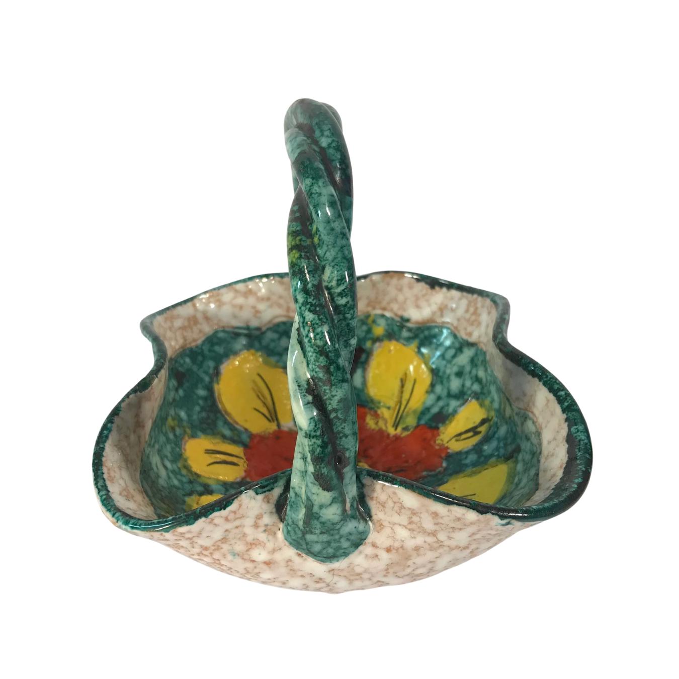 Exquisite Vintage Italian Floral Bowl with Unique Twisted Handle