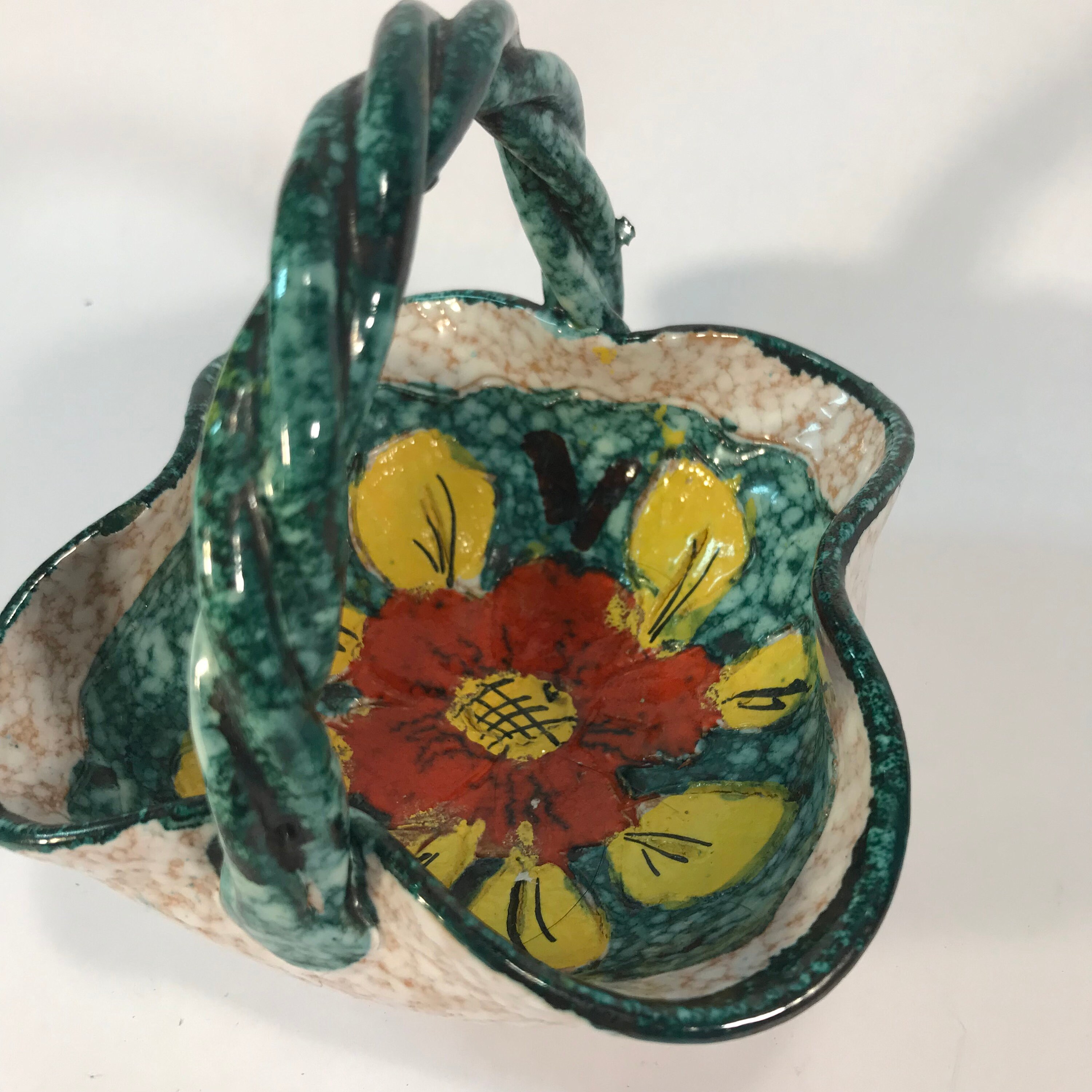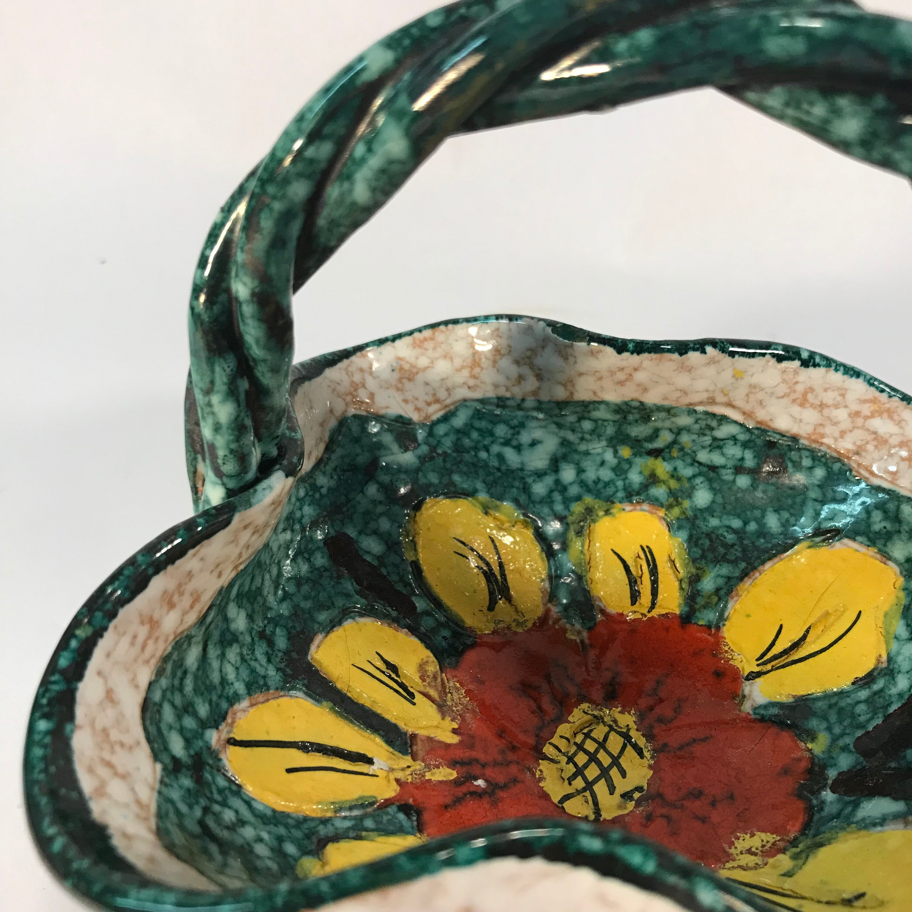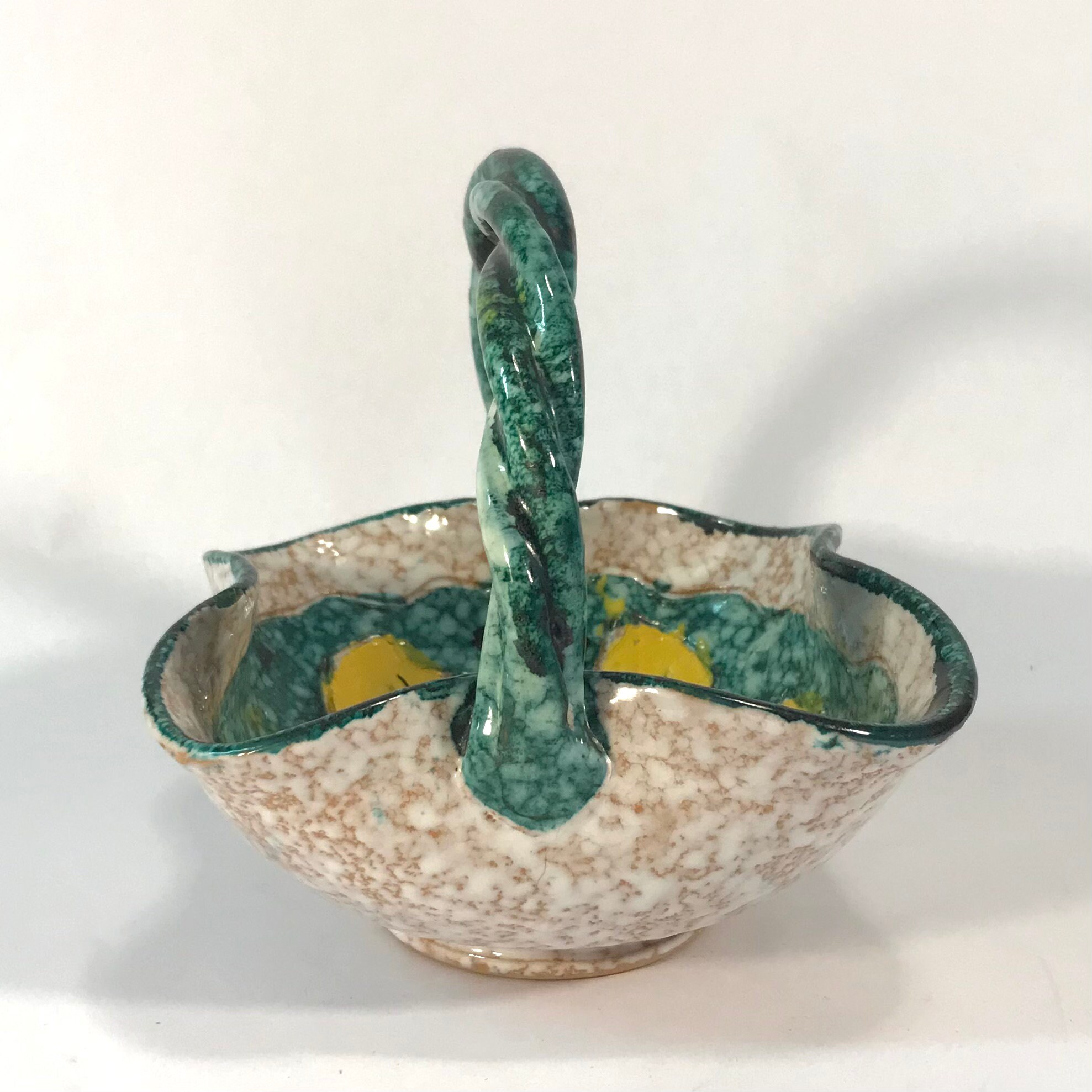 Exquisite Vintage Italian Floral Bowl with Unique Twisted Handle