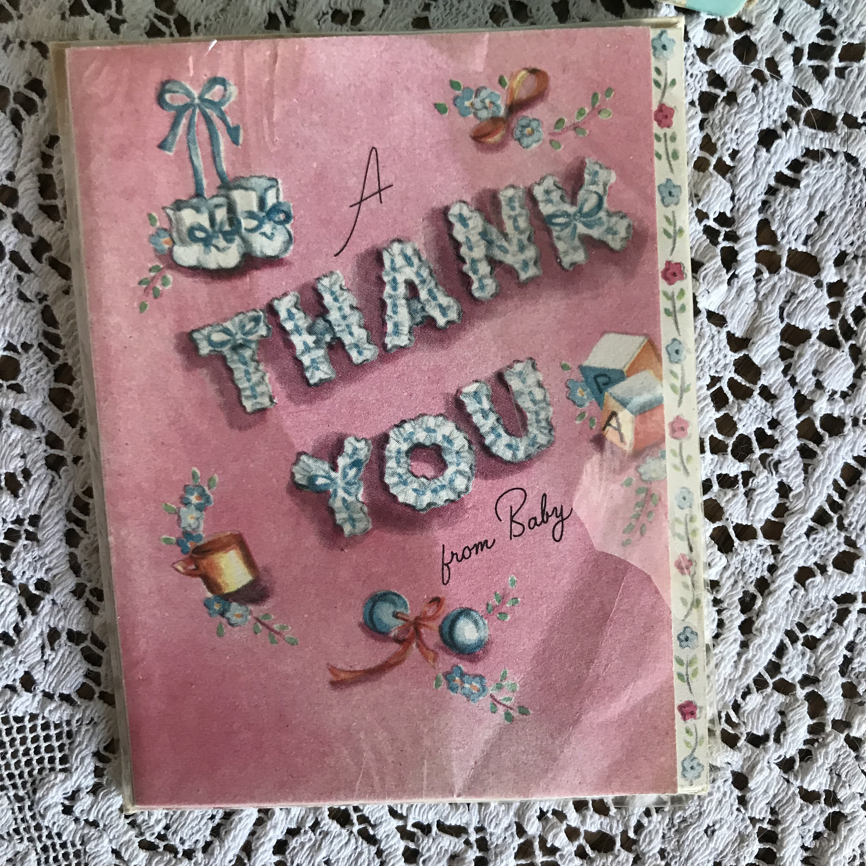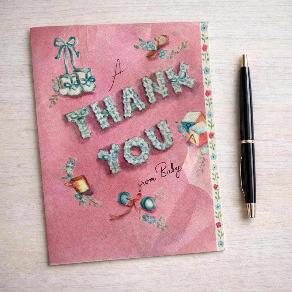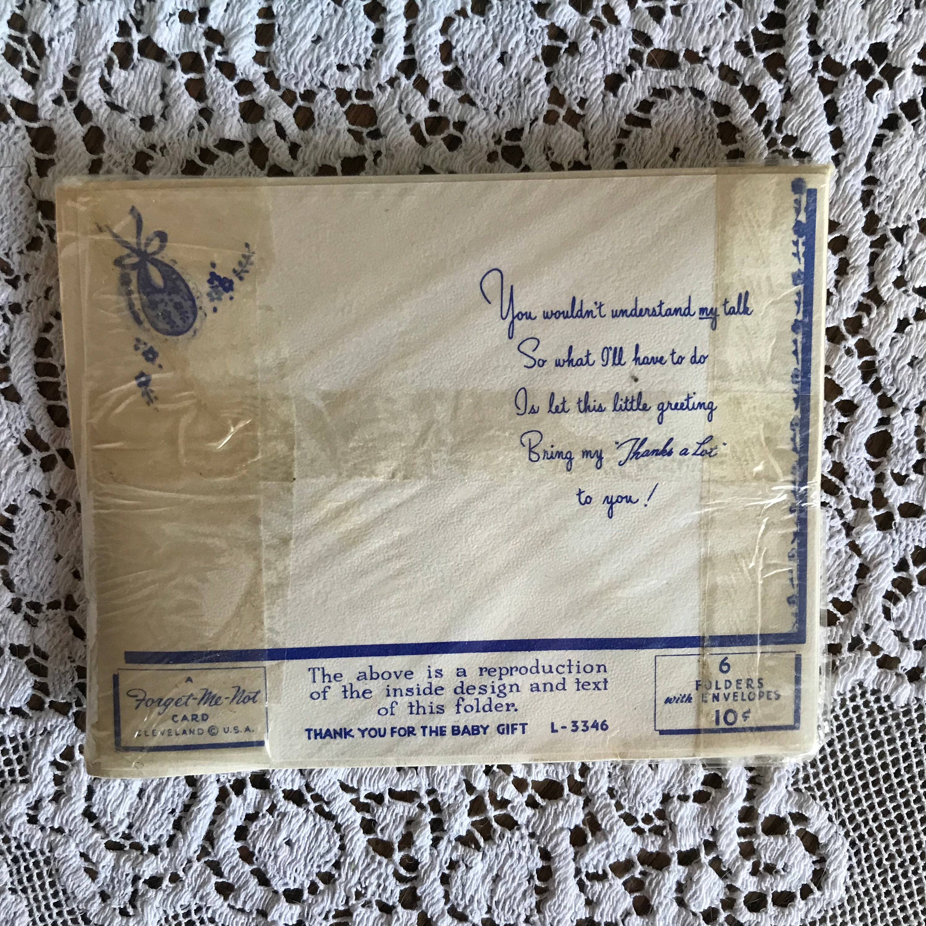 These vintage 'Forget-Me-Not' cards, made in Cleveland, Ohio, USA are a beautiful pink with baby illustrations on the fronts. Please see photos for details. Inside of card reads