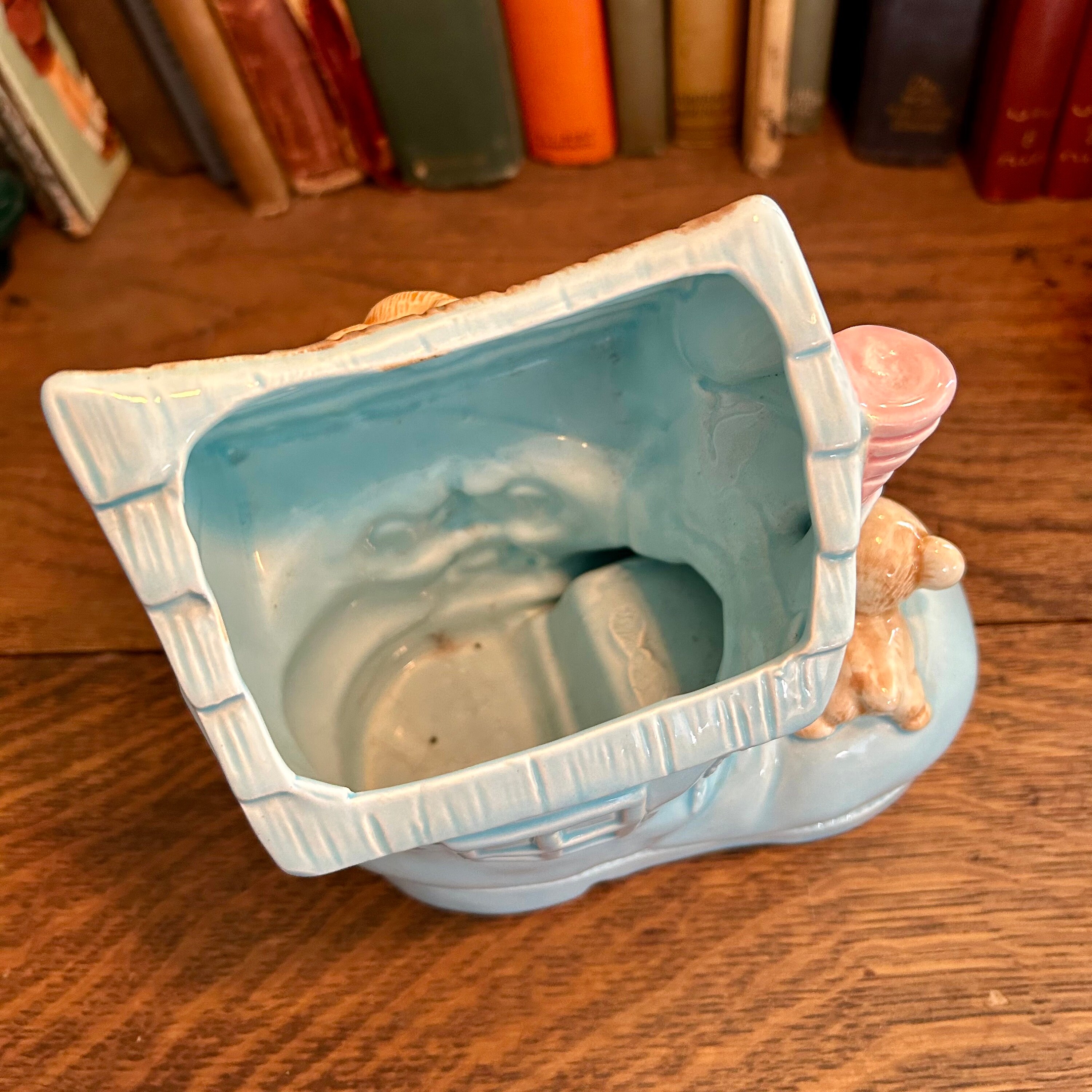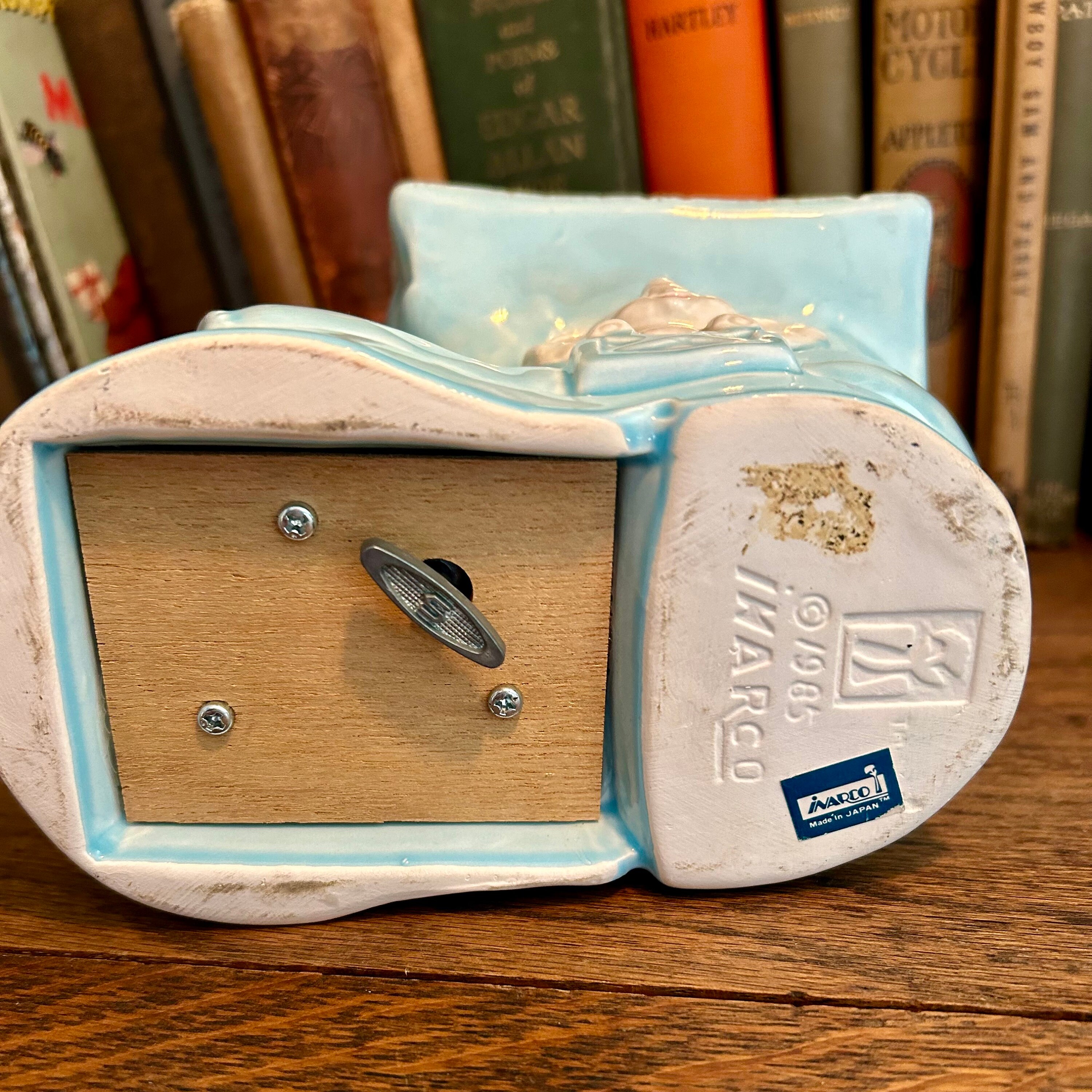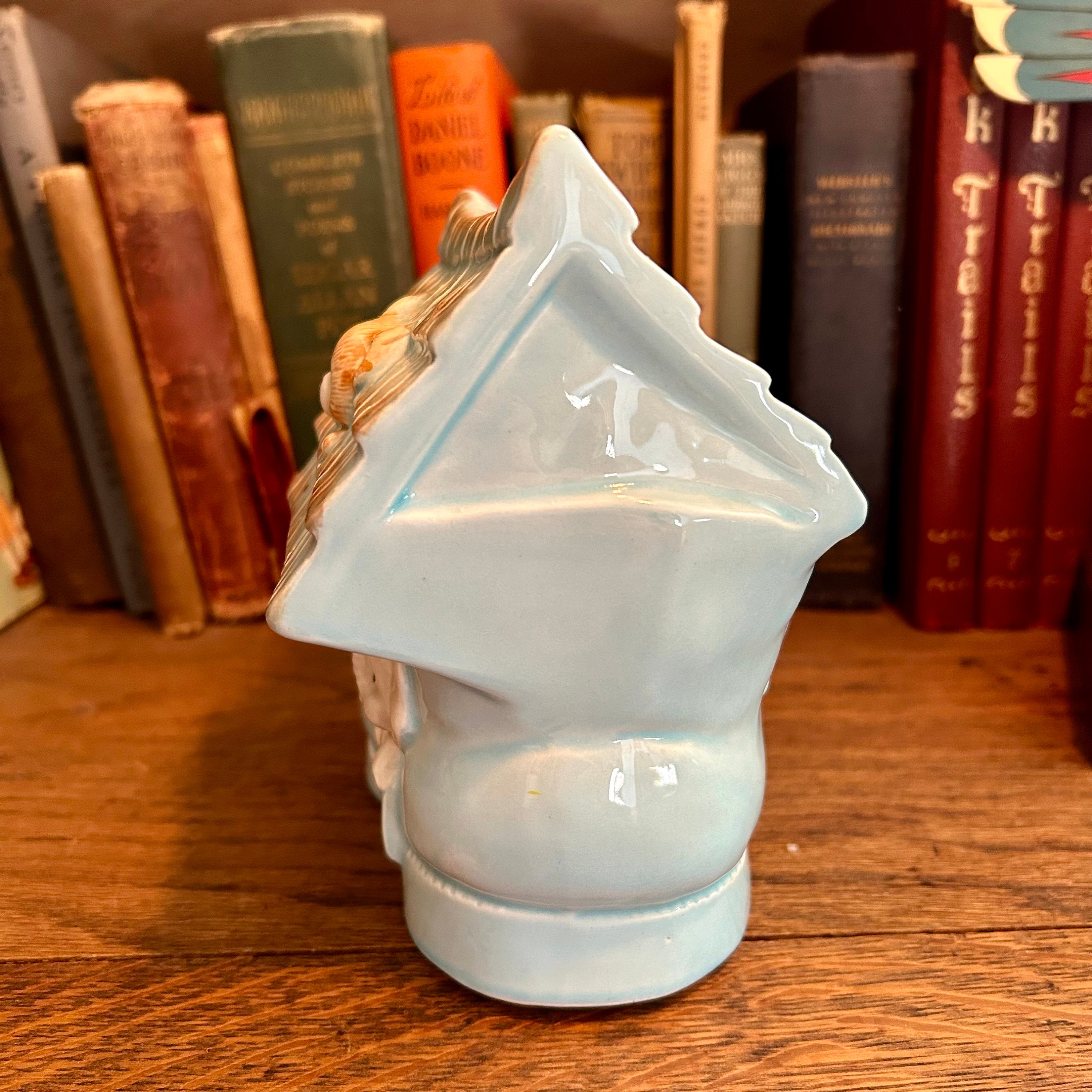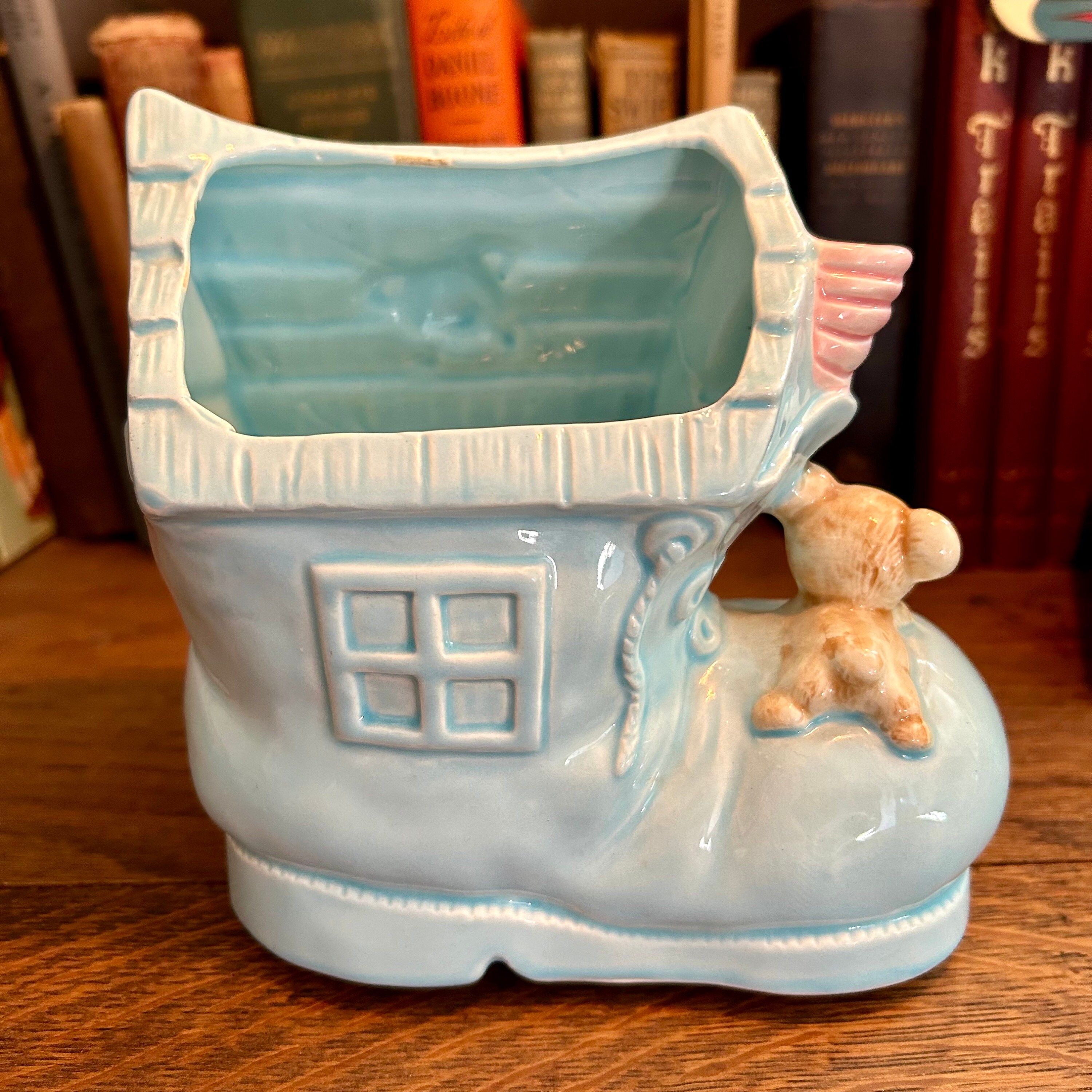 This vintage musical planter from Inarco is a charming addition to any collection. With a design featuring a boot house, an elephant, a teddy bear, and a mouse, it's a delightful decor choice for any home. Made in 1985, it's sure to bring a touch of nostalgia to your space.