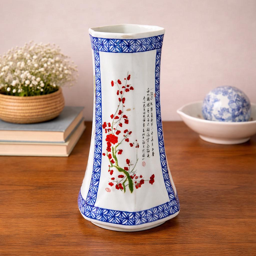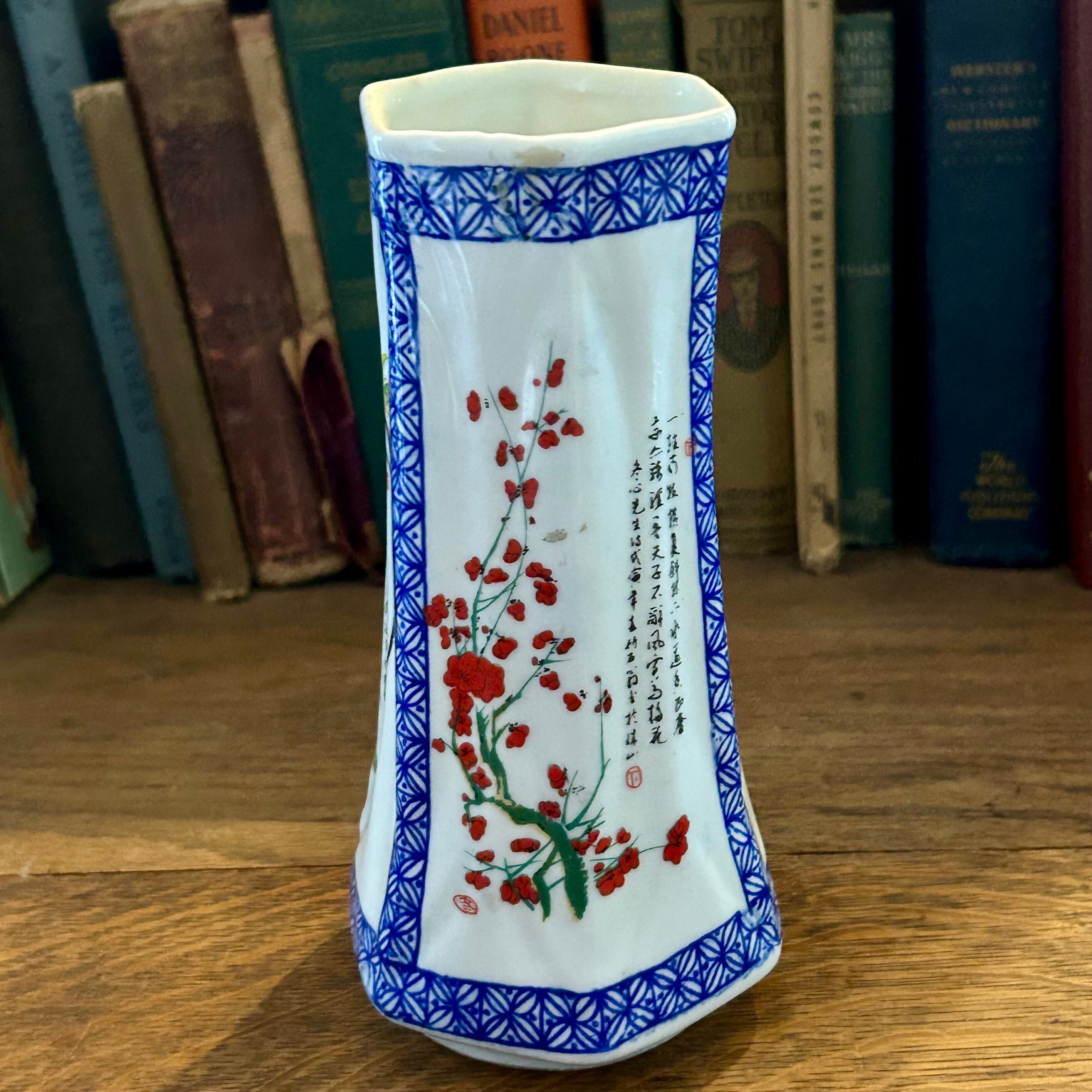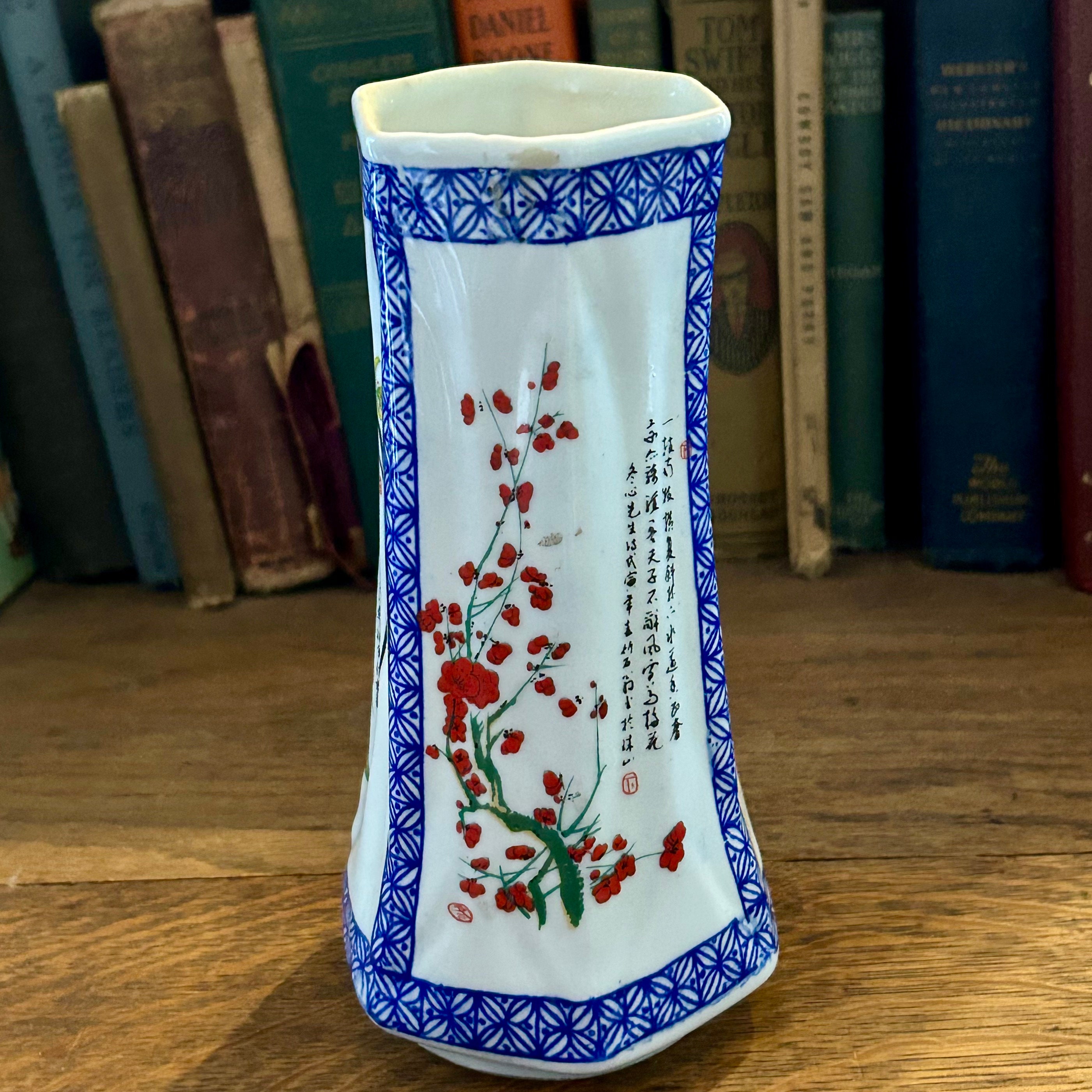Discover the beauty of our Japanese decorated floral vase, a stunning piece featuring intricate Japanese writing and a delicate floral design. Measuring 4x7 inches, this vase is perfect for displaying your favorite blooms or as a striking decorative accent. Its excellent condition ensures it will be a cherished addition to your home or collection. Bring a touch of elegance and cultural charm to any space with this unique floral vase. Shop now to elevate your decor!