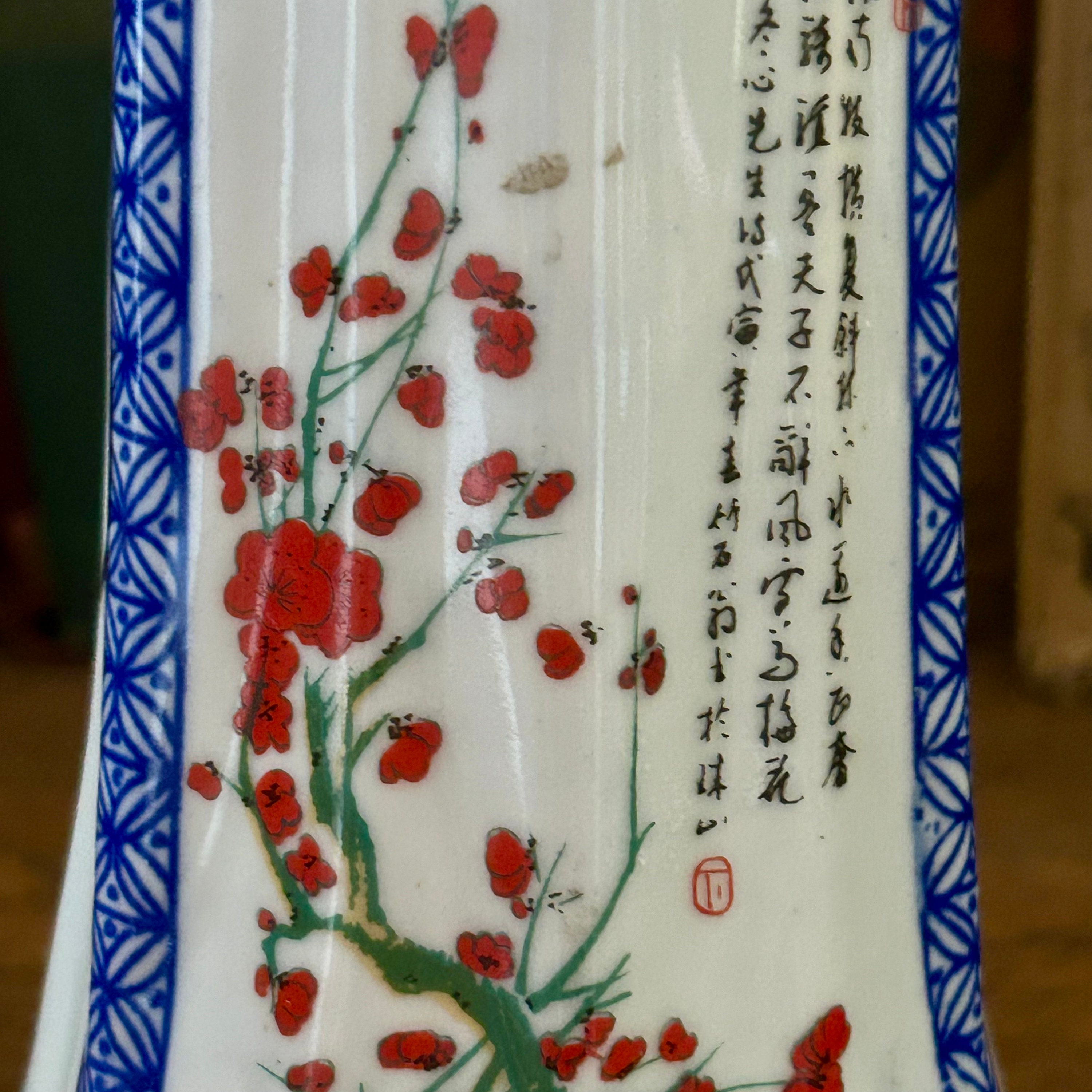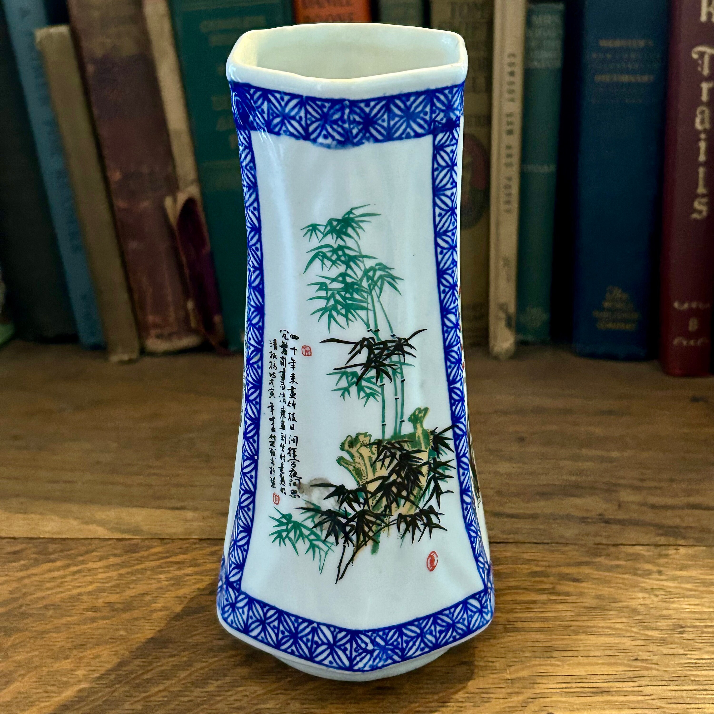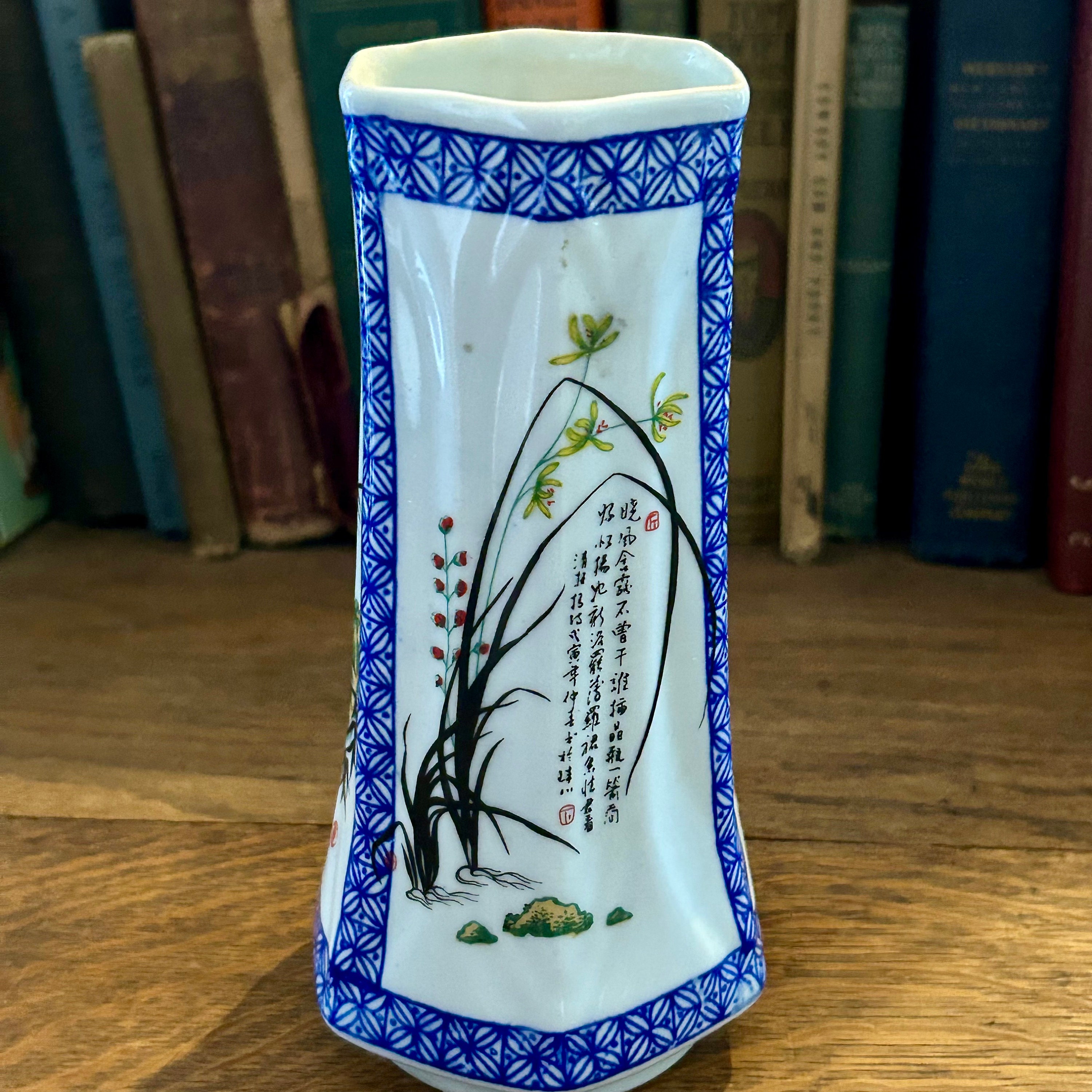 Discover the beauty of our Japanese decorated floral vase, a stunning piece featuring intricate Japanese writing and a delicate floral design. Measuring 4x7 inches, this vase is perfect for displaying your favorite blooms or as a striking decorative accent. Its excellent condition ensures it will be a cherished addition to your home or collection. Bring a touch of elegance and cultural charm to any space with this unique floral vase. Shop now to elevate your decor!