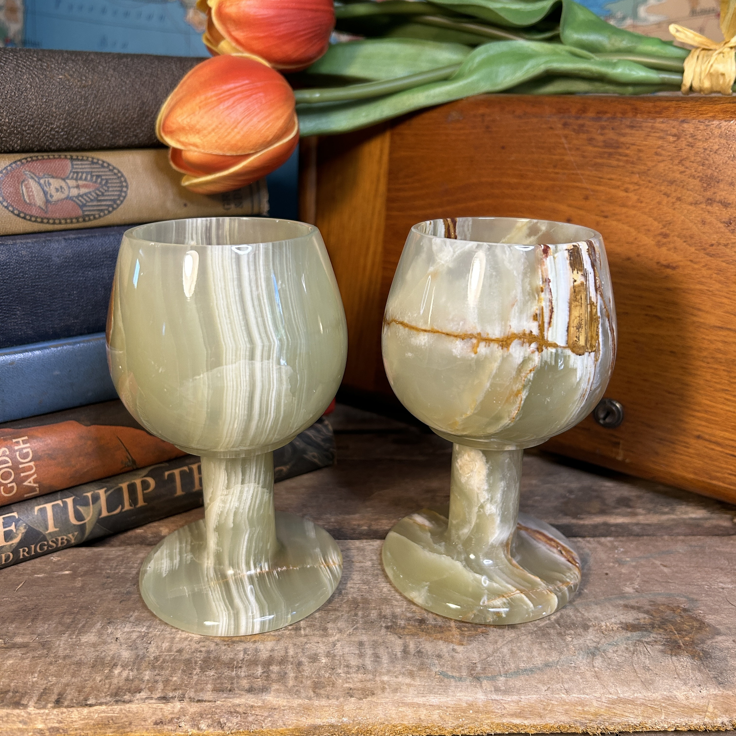 Unmarked. Each goblet weighs almost a pound.