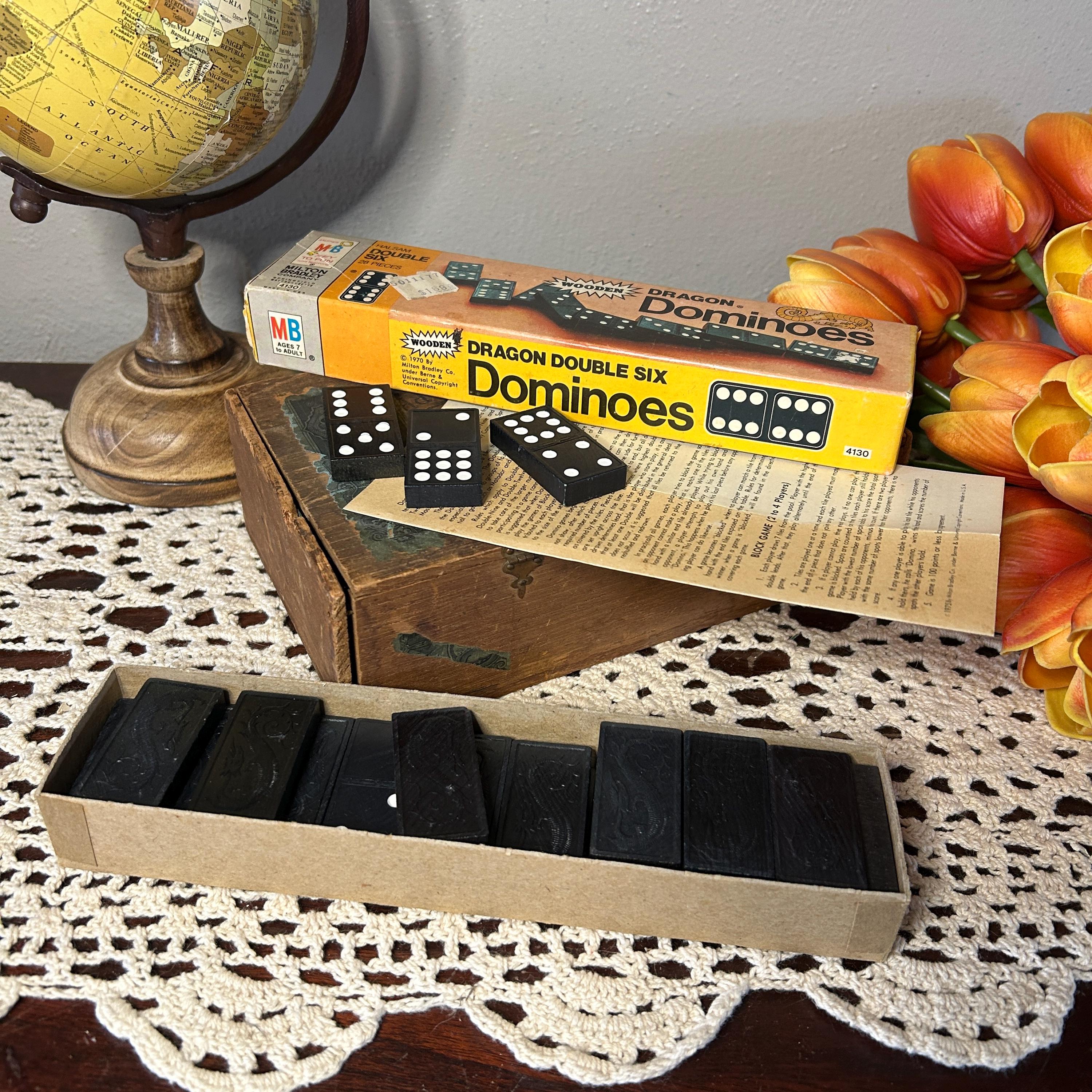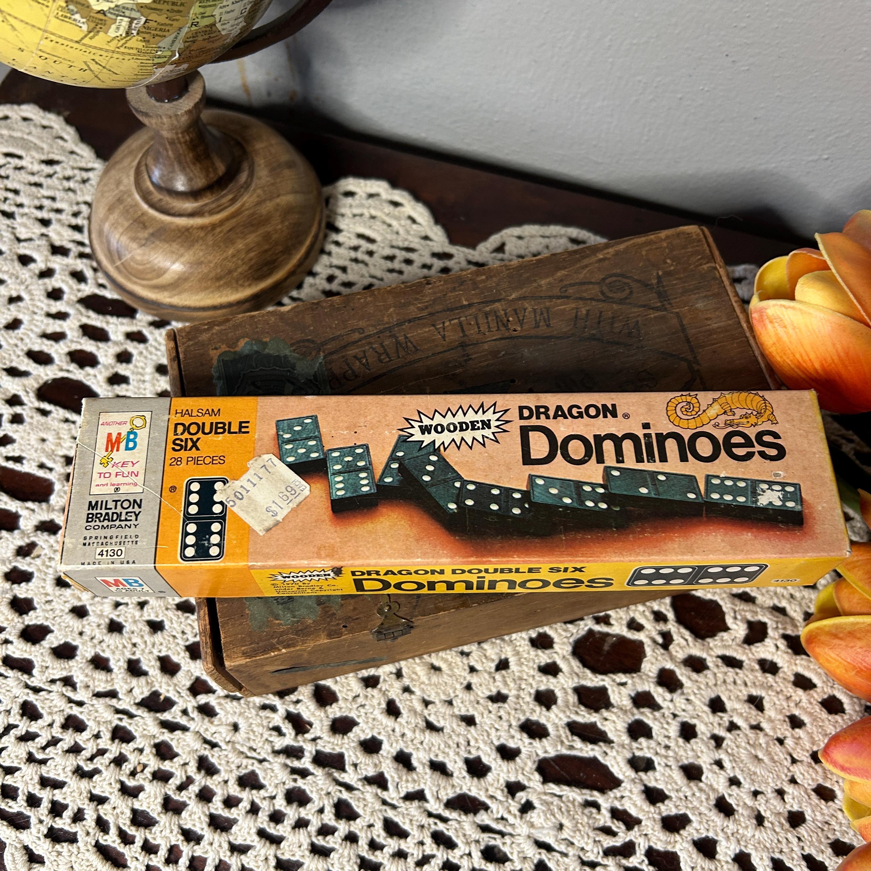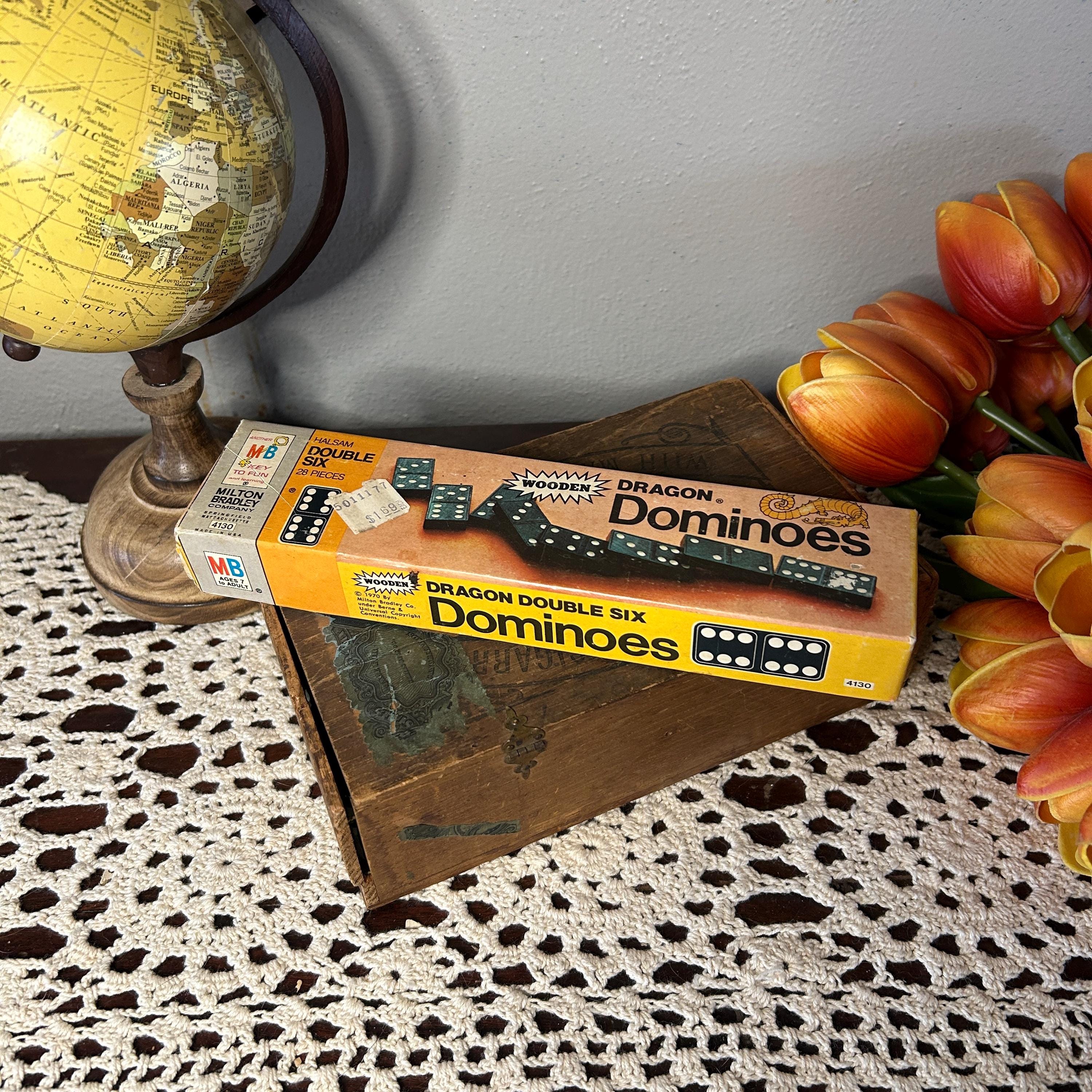 1970 WOODEN DRAGON DOMINOES -Like new condition! Box shows some wear, but completely intact.