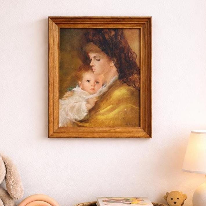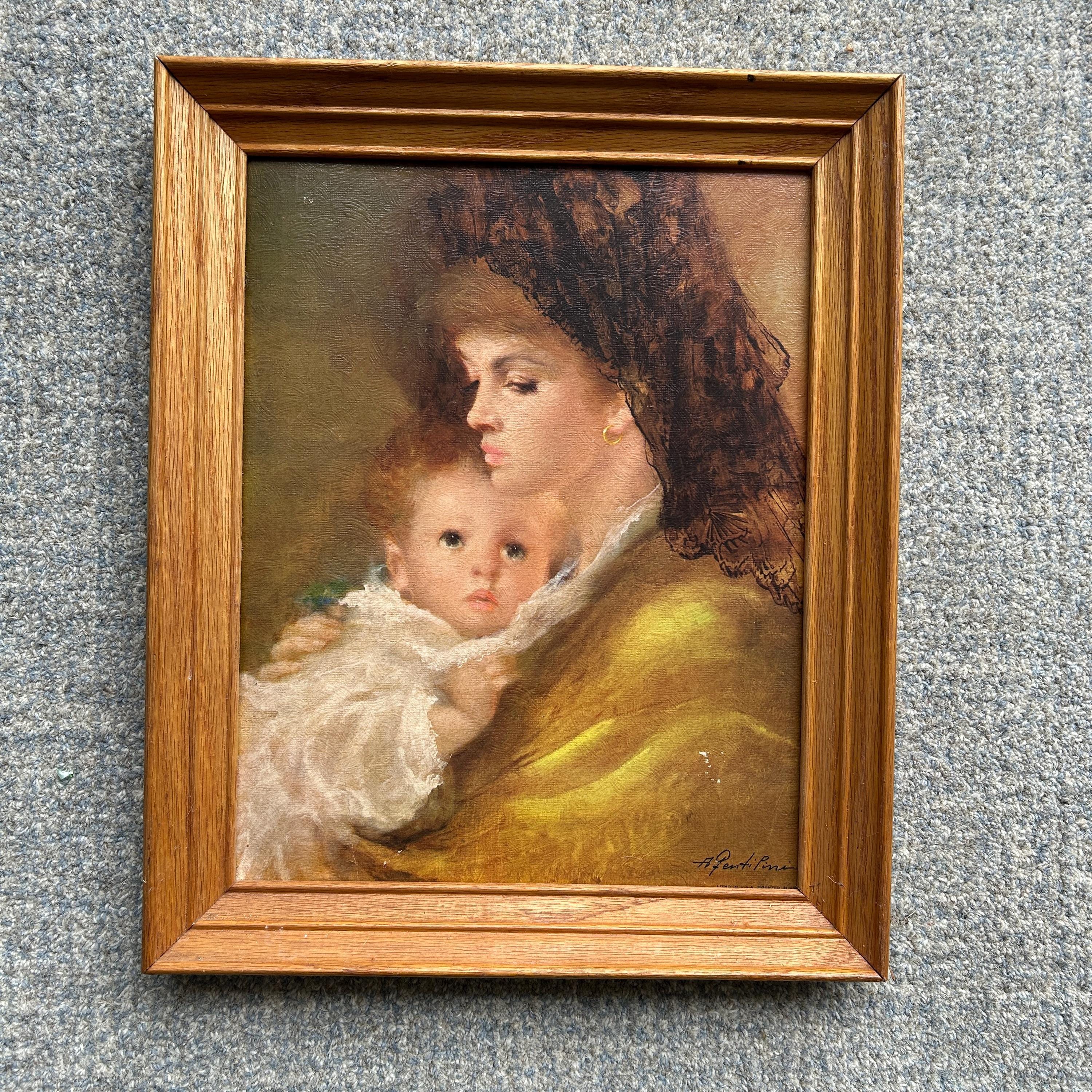 A gorgeous original print on board, of the A. Fenti Pini painting 'Mother and Child'.