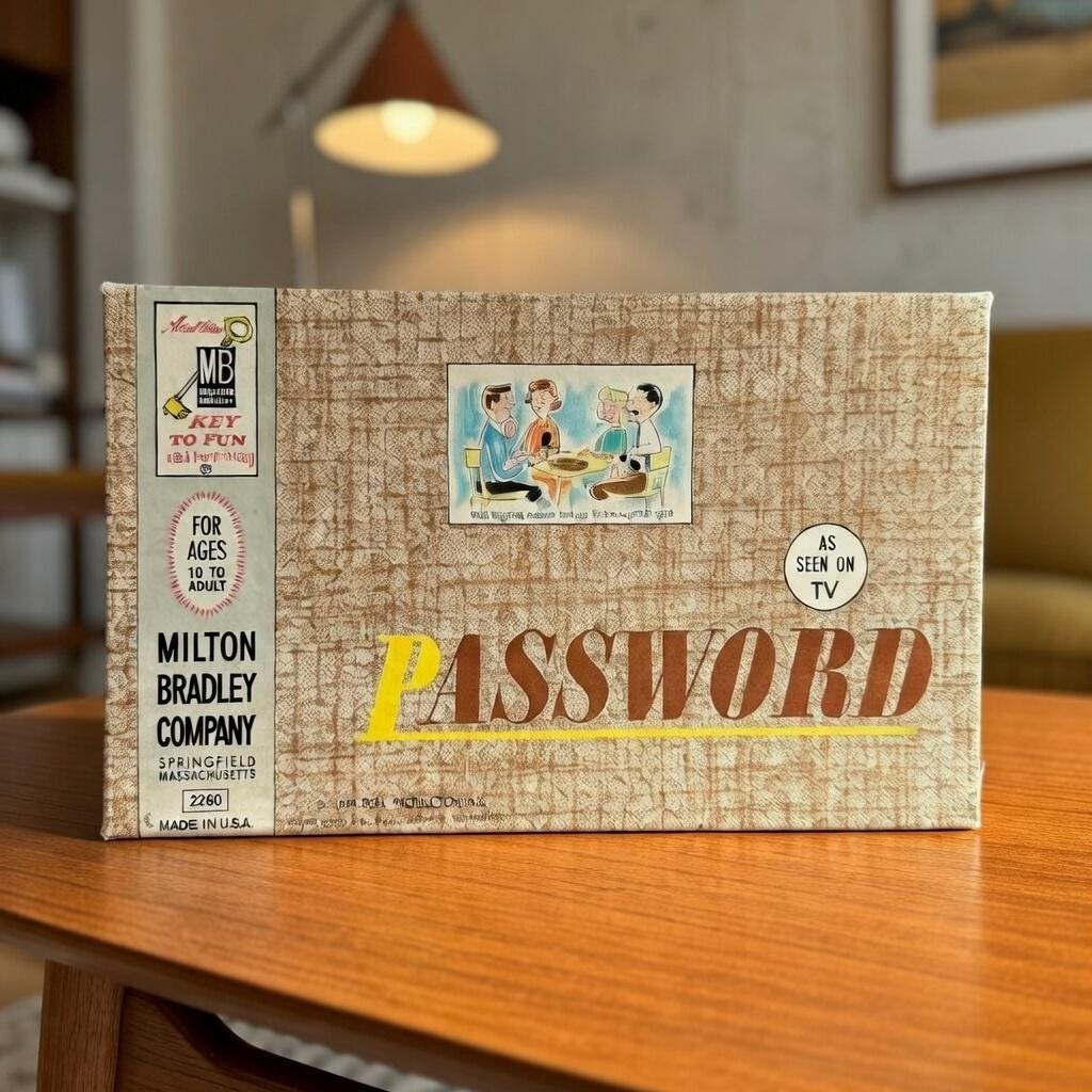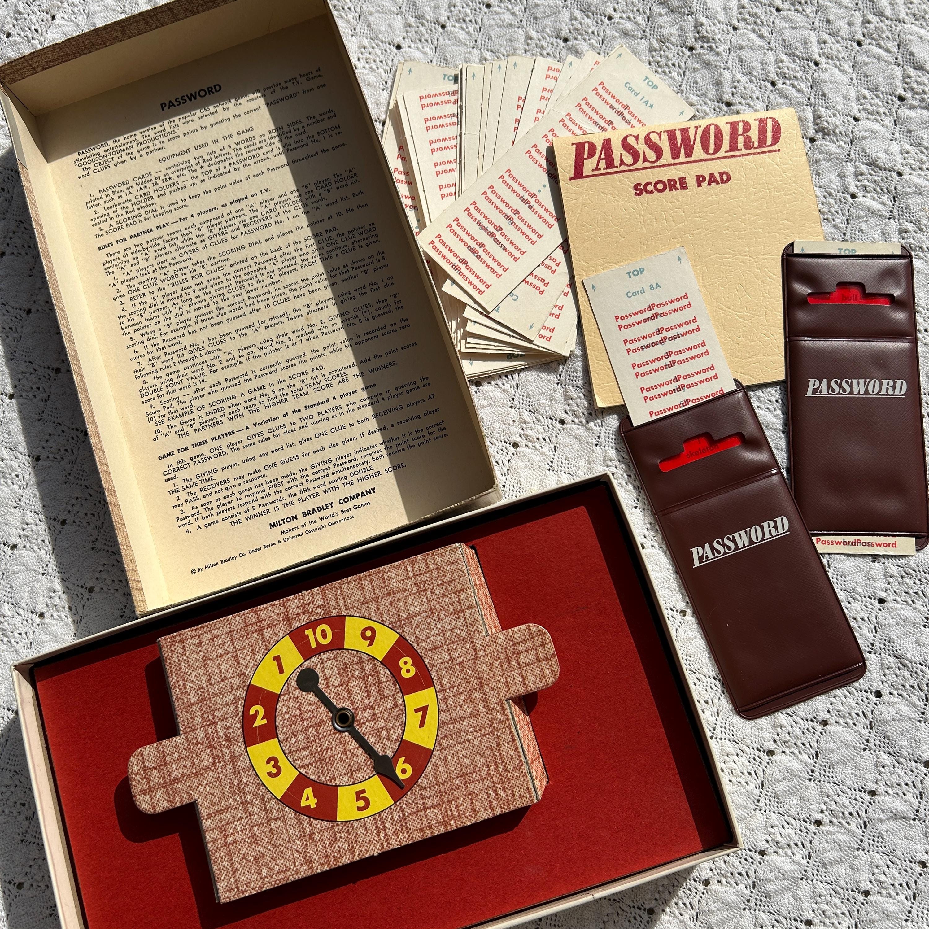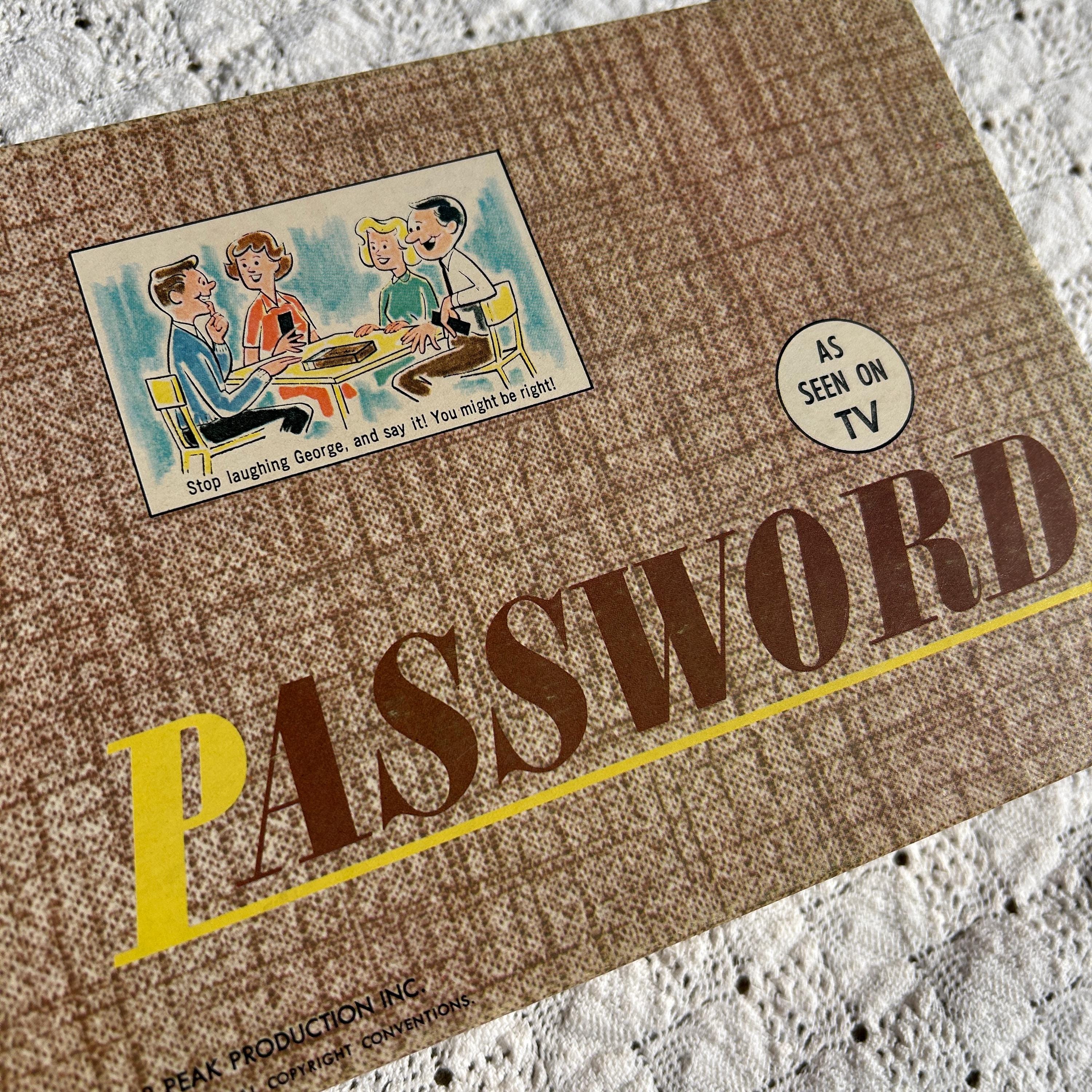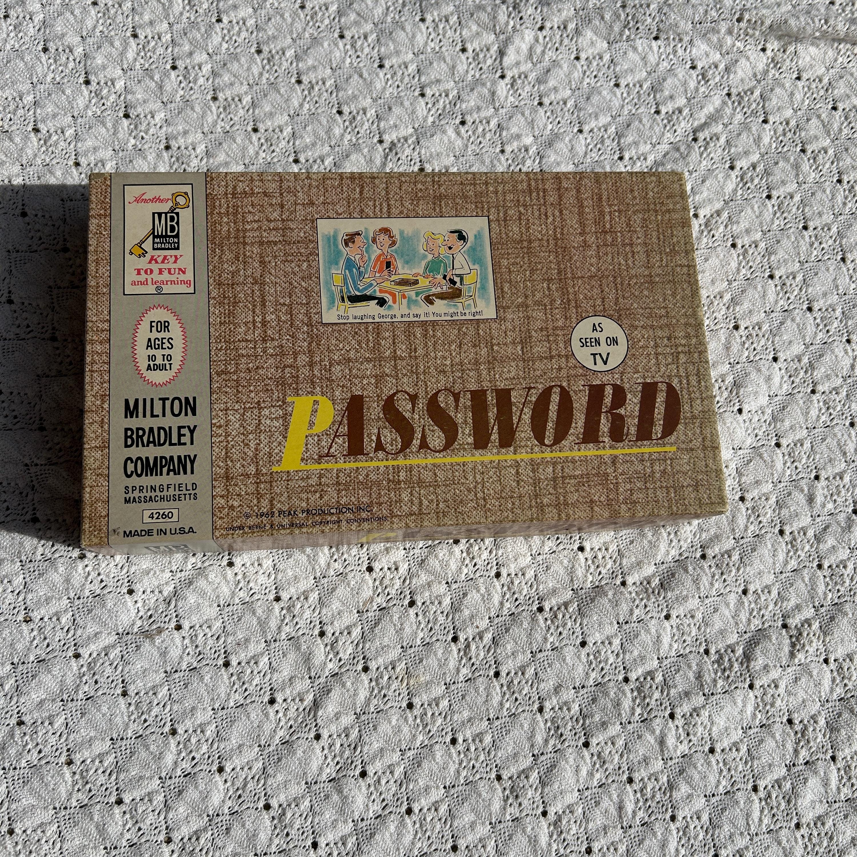 Vintage 1962 Password Game by Milton Bradley Co. #4260 – As Seen On TV, a Goodson Todman Production. This home version game is in great vintage condition, showing minimal signs of use and age. It's perfect for vintage game collectors or for nostalgic play. This is the first edition and in near mint condition