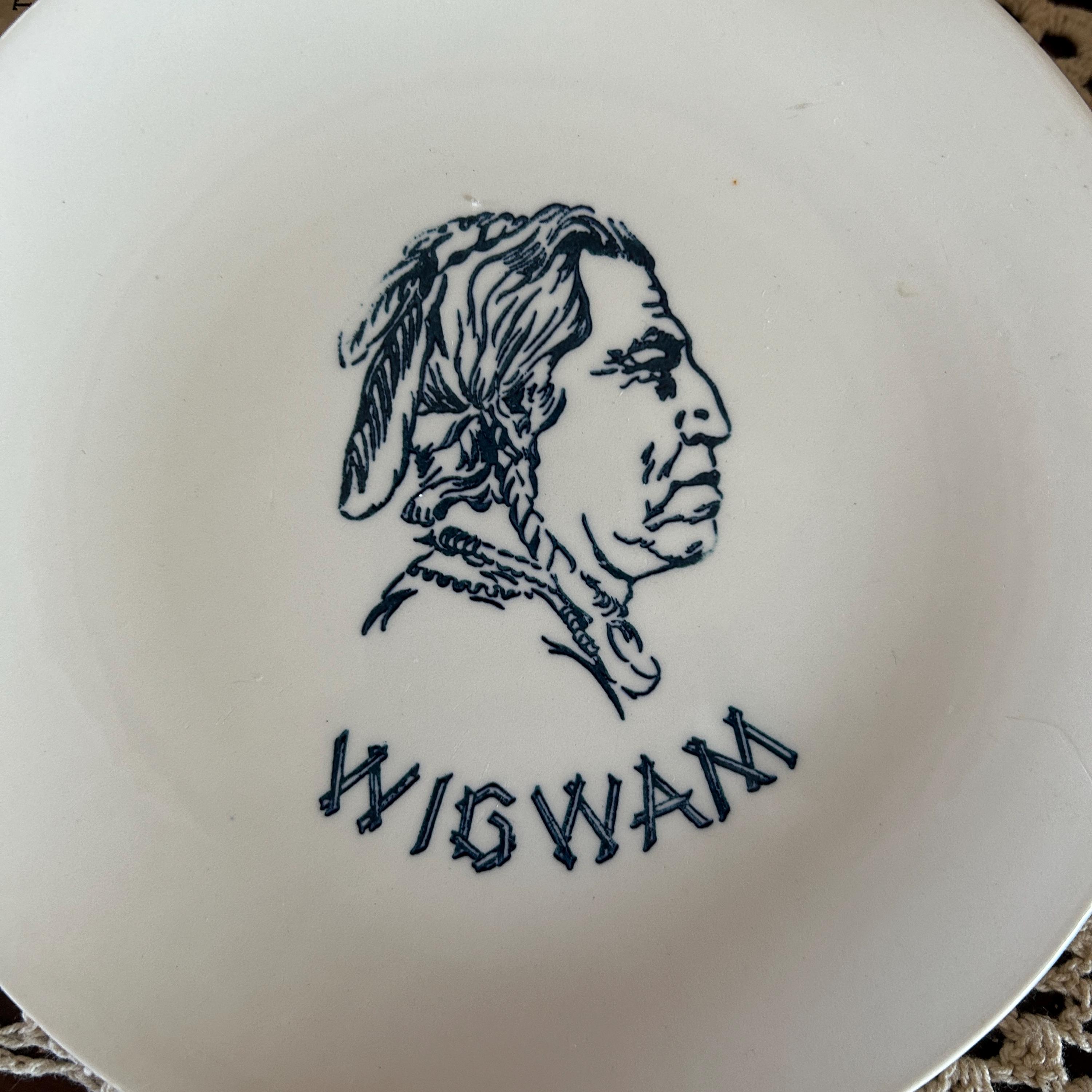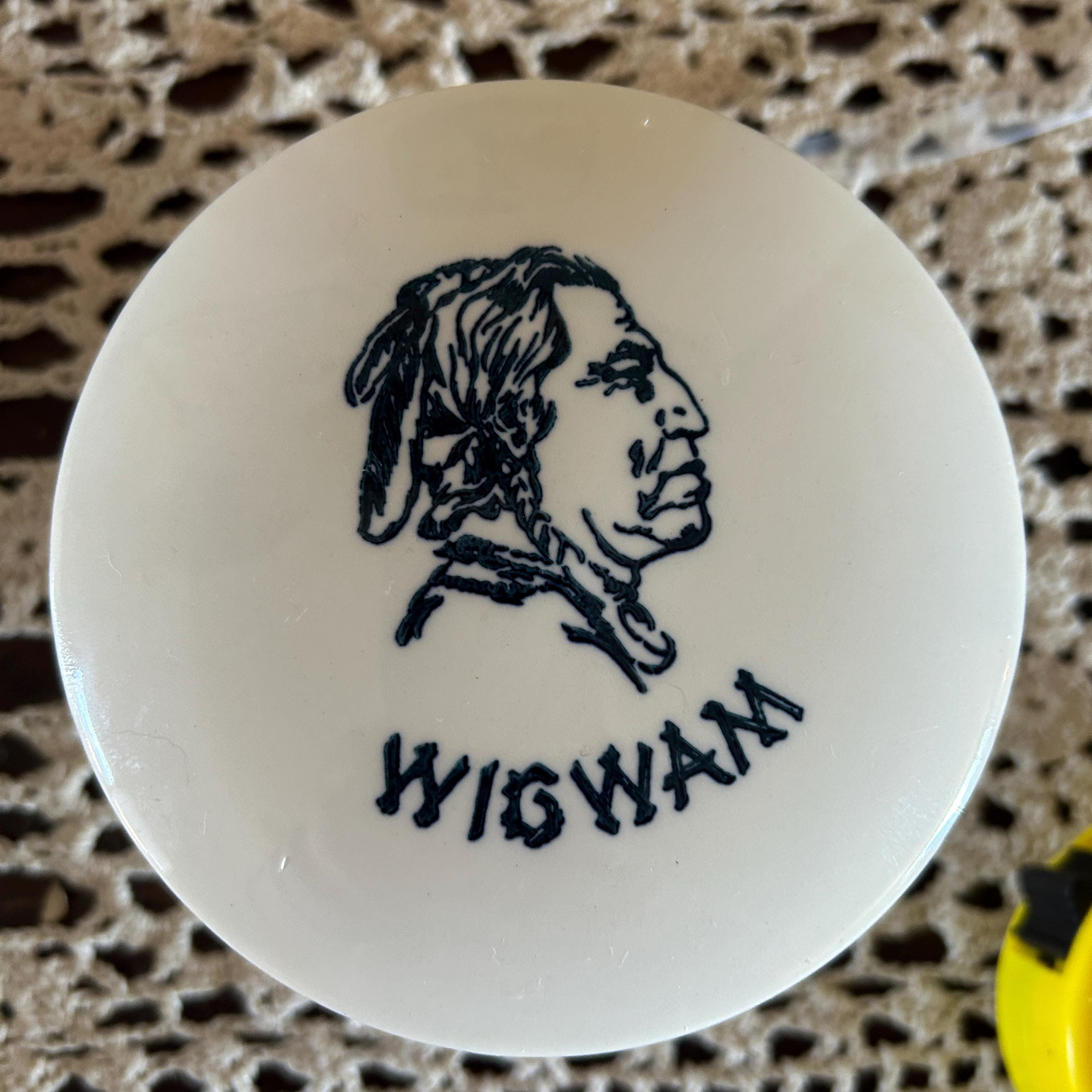 This is from Google: Wigwam pottery, as seen in the image, is a vintage collectible featuring a Native American profile and the word "Wigwam." While specific details about its maker or origin are unavailable in the provided search results, it is likely a souvenir item from a location or business named "Wigwam." Collectors may find value in such pieces due to their age, design, and historical connection to Native American imagery.