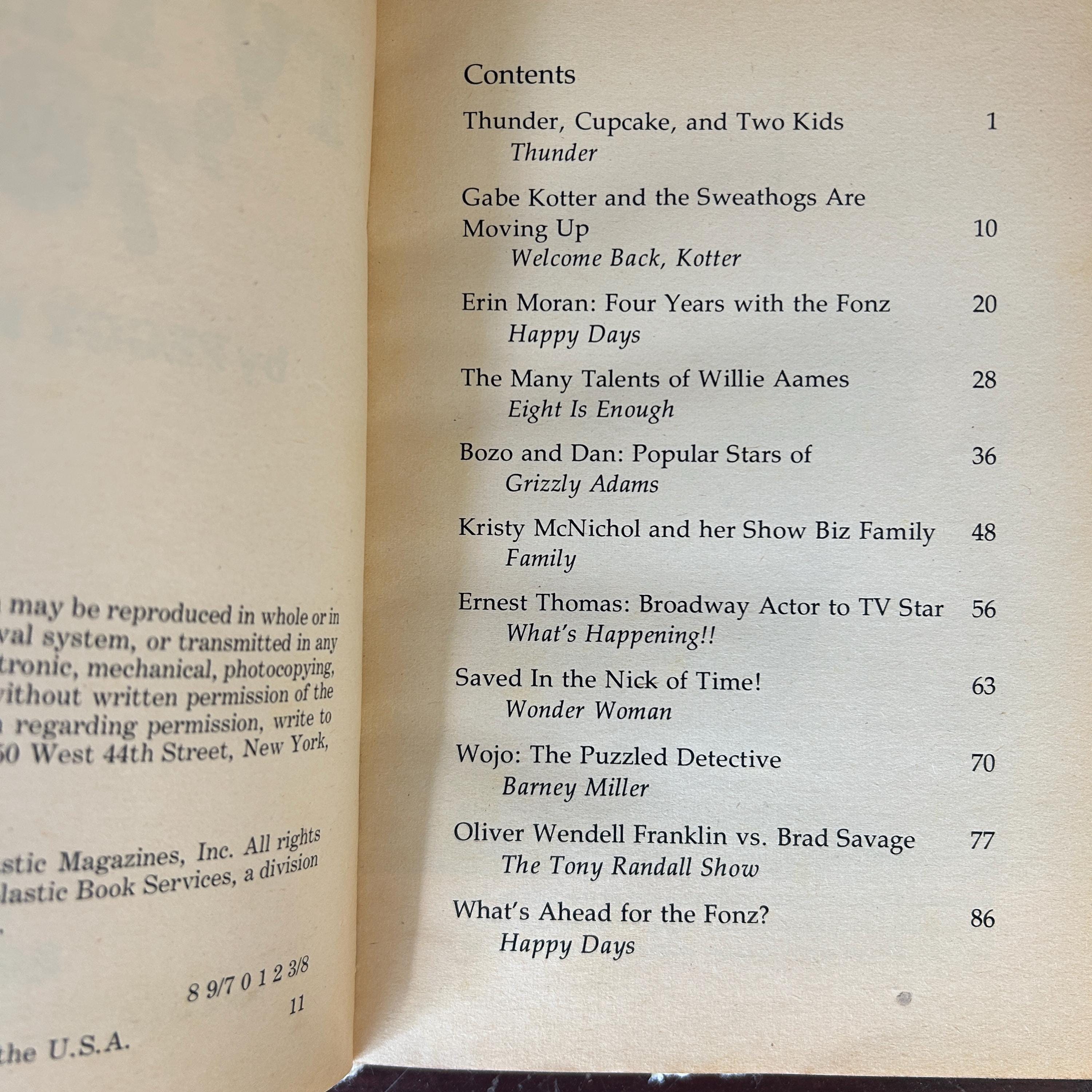 A super cool paperbook from 1978 featuring the stars of the time. Wonder Woman, Willie Adams, Barney Miller, What's Happening, Welcome Back Kotter, Happy Days, Grizzly Adams, and more! In excellent condition. Book is intact and clean.
