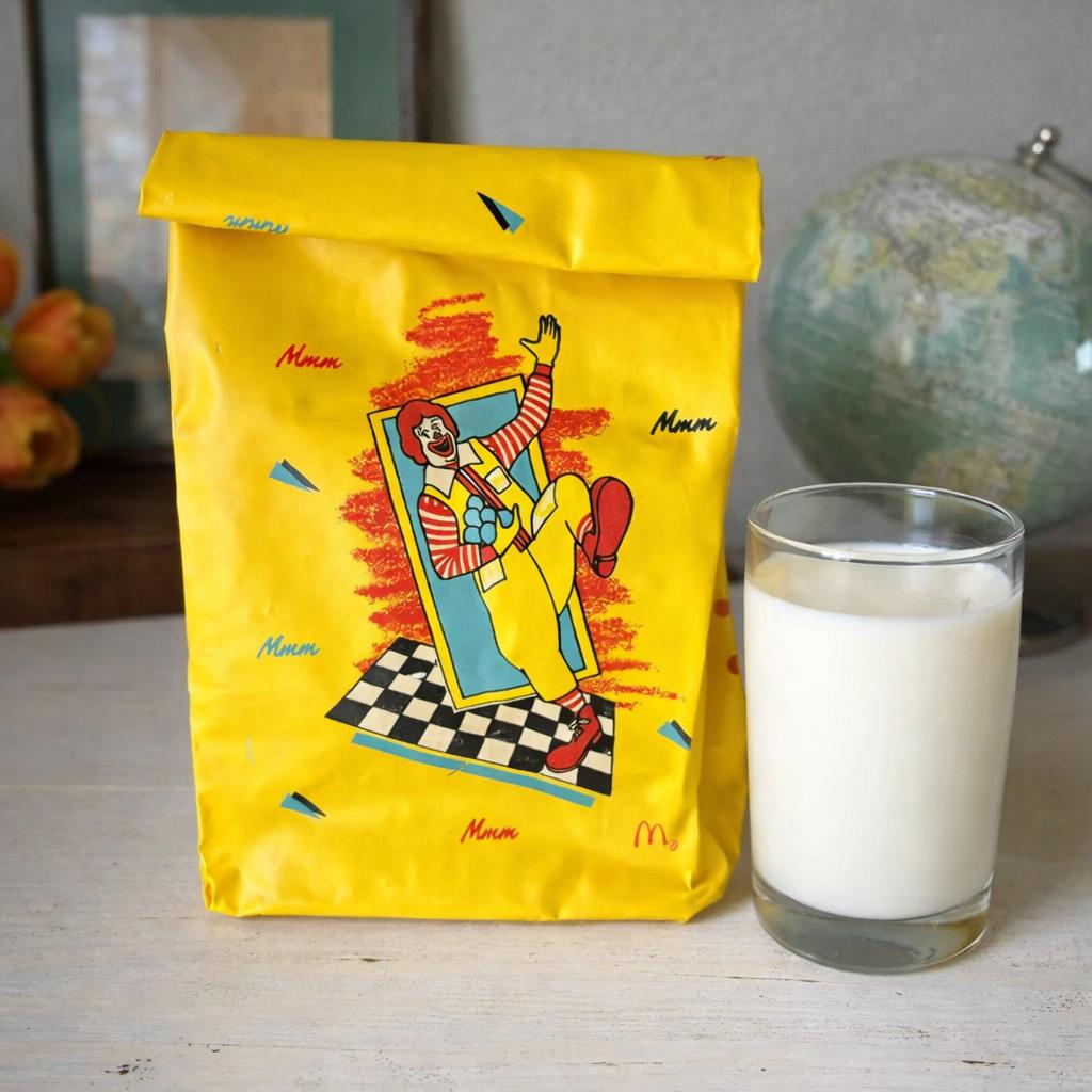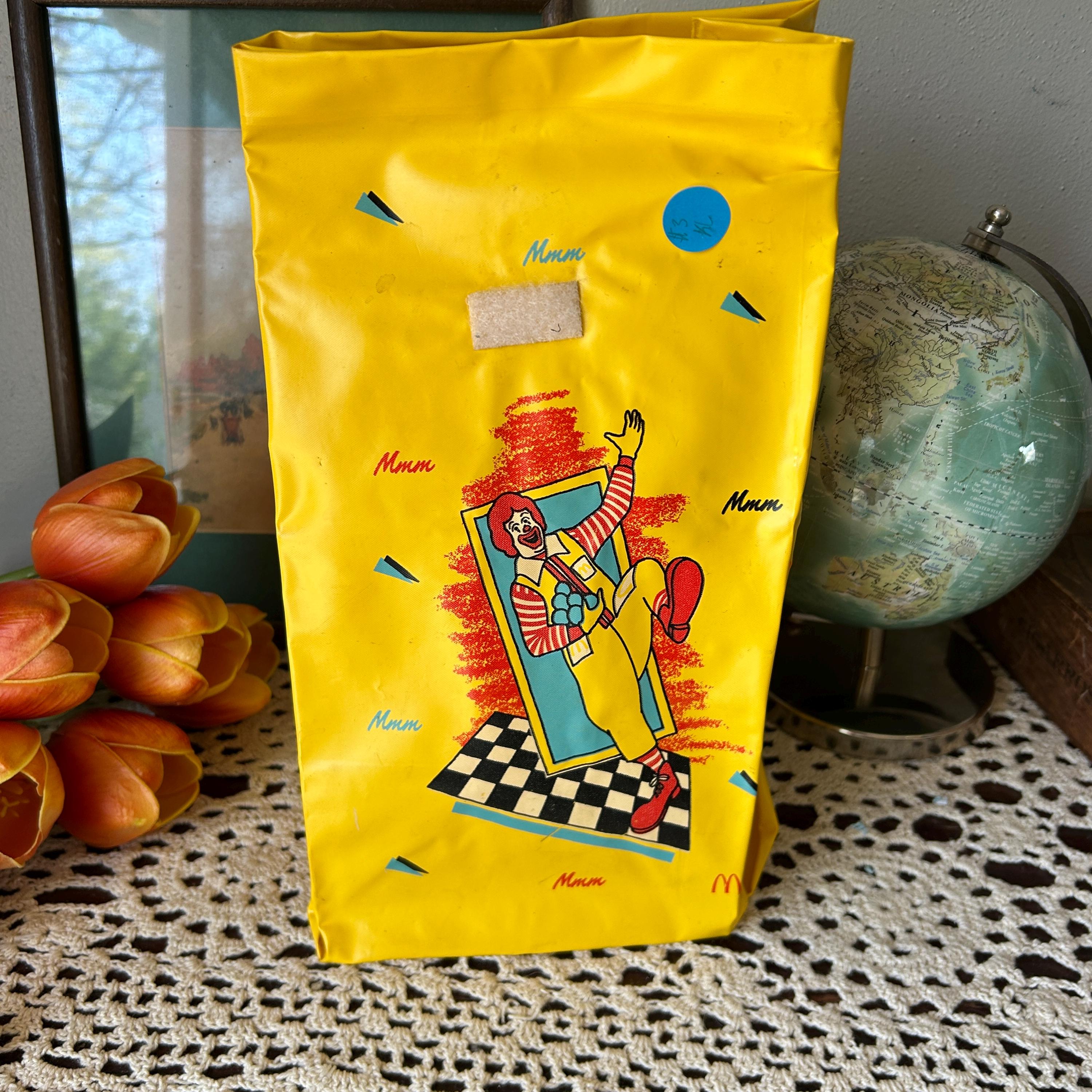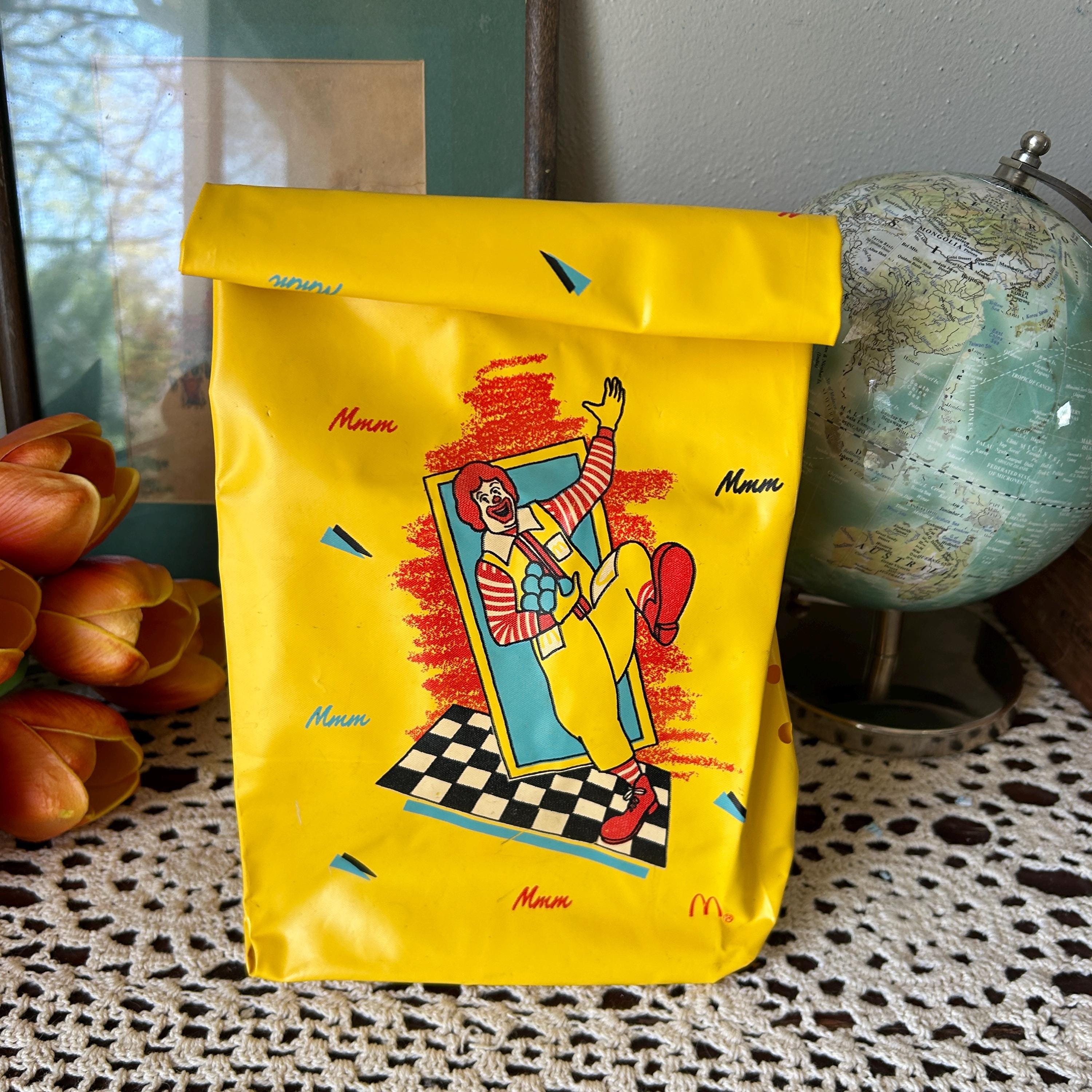 Impress your friends with this hip reusable McDonald's lunch bag. Excellent used condition. Reusable soft vinyl/plastic material. Free standing. Ronald McDonald images on each side. Retro colorful vintage school lunchbox. Closes with velcro. Vent holes on each side of bag.