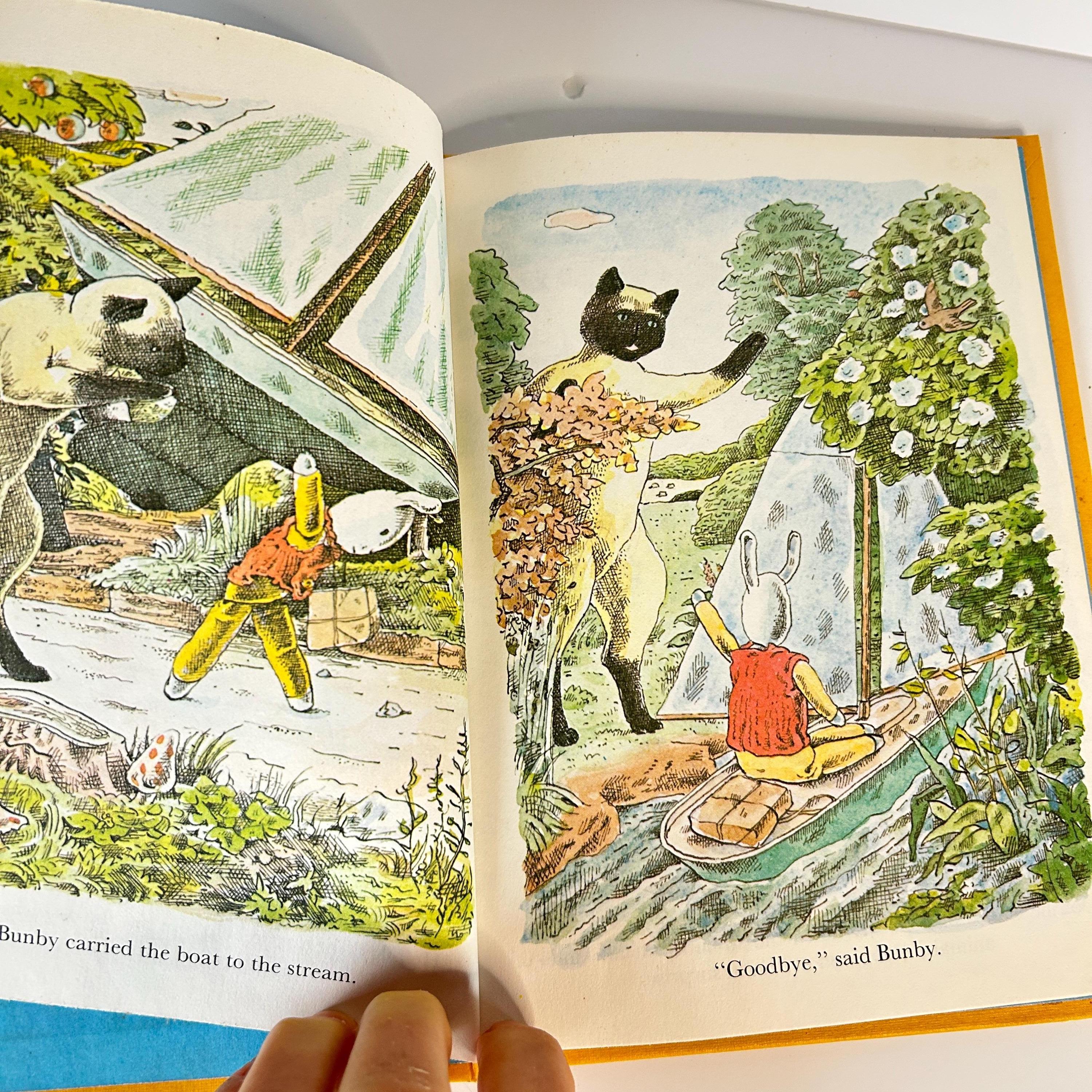Deserted for the day by his human owners, a small toy rabbit makes his own journey down the river on a toy sailboat.