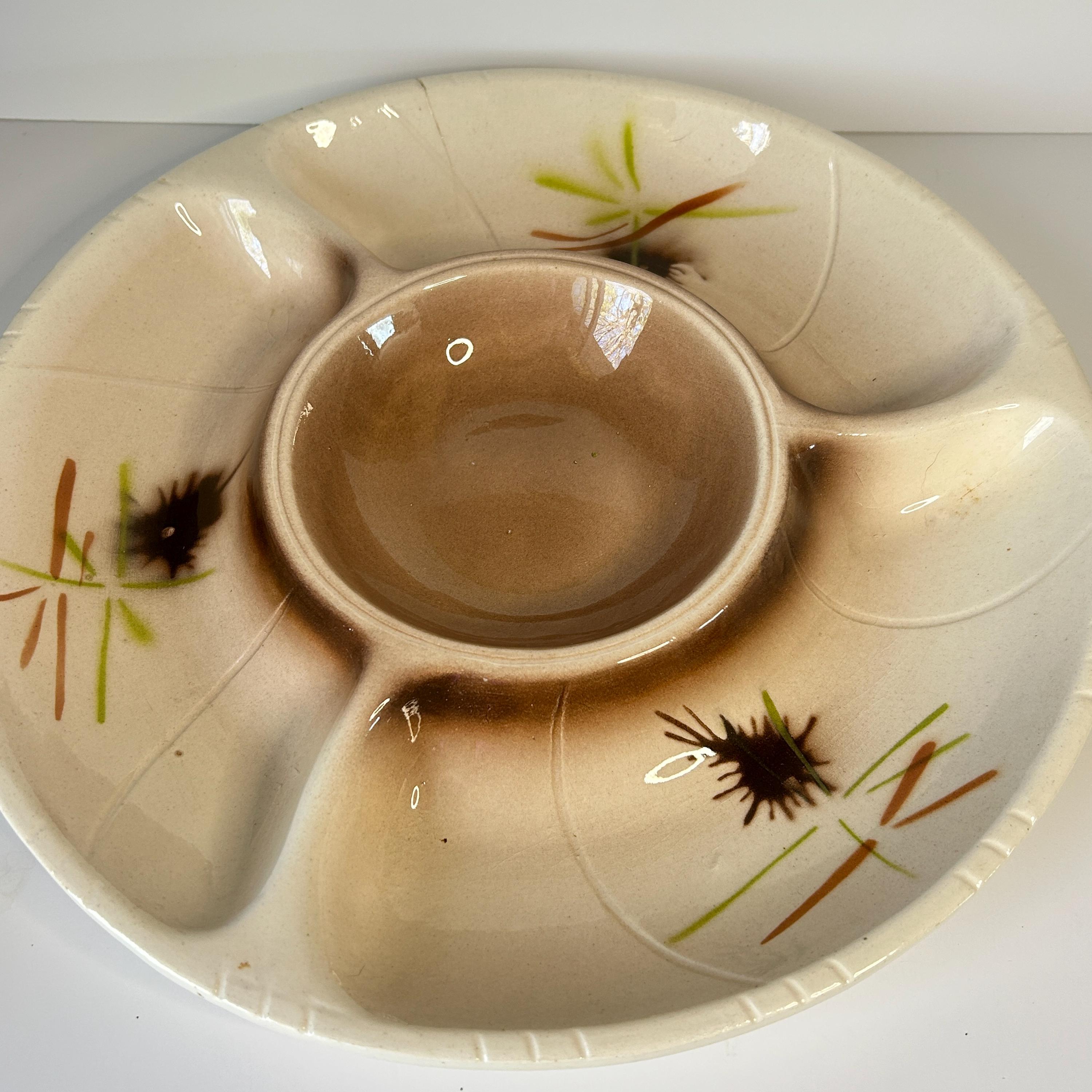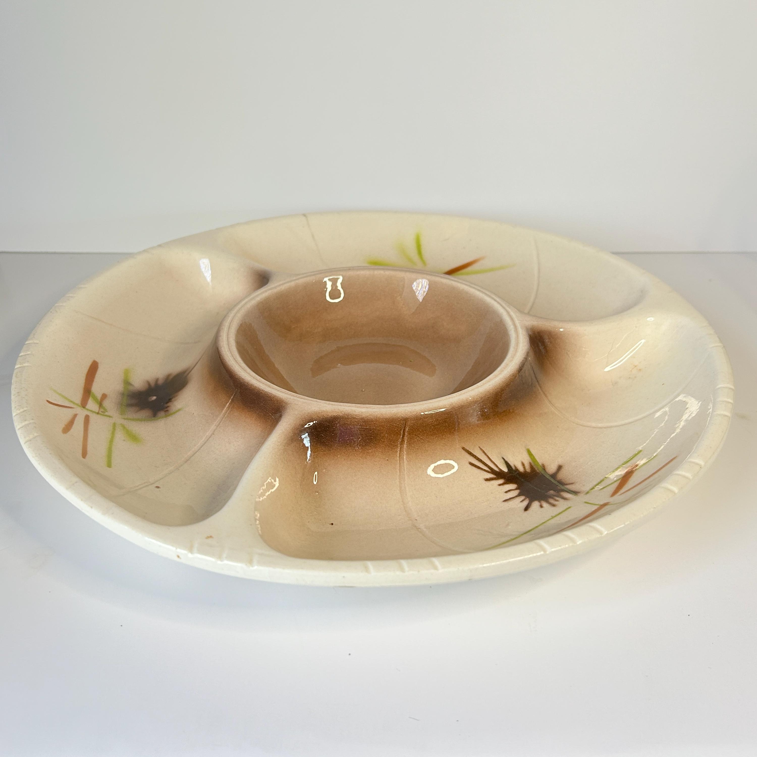 1961 Lane & Company Pottery Van Nuys, California, #3060, Divided Serving Dish, Chip and Dip,