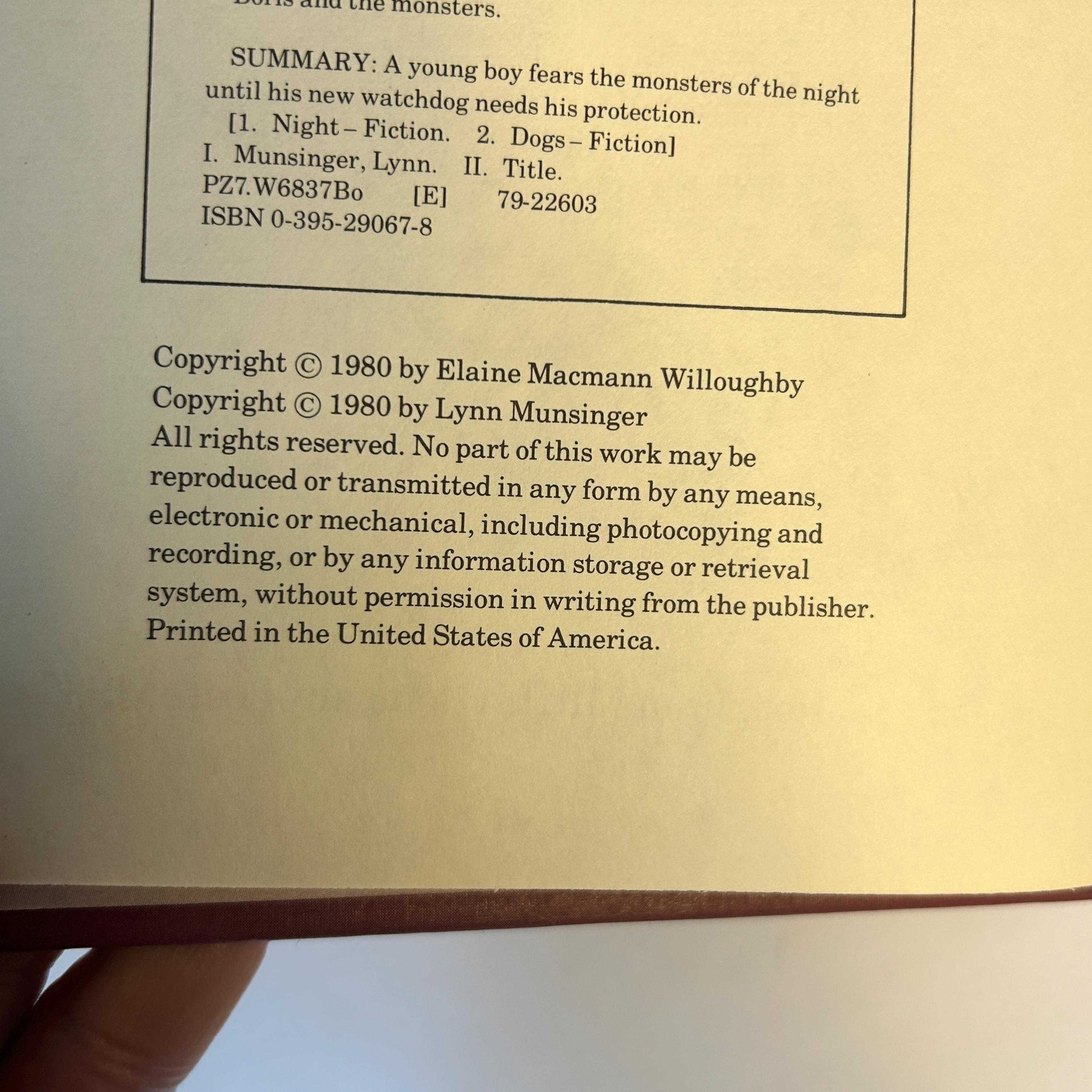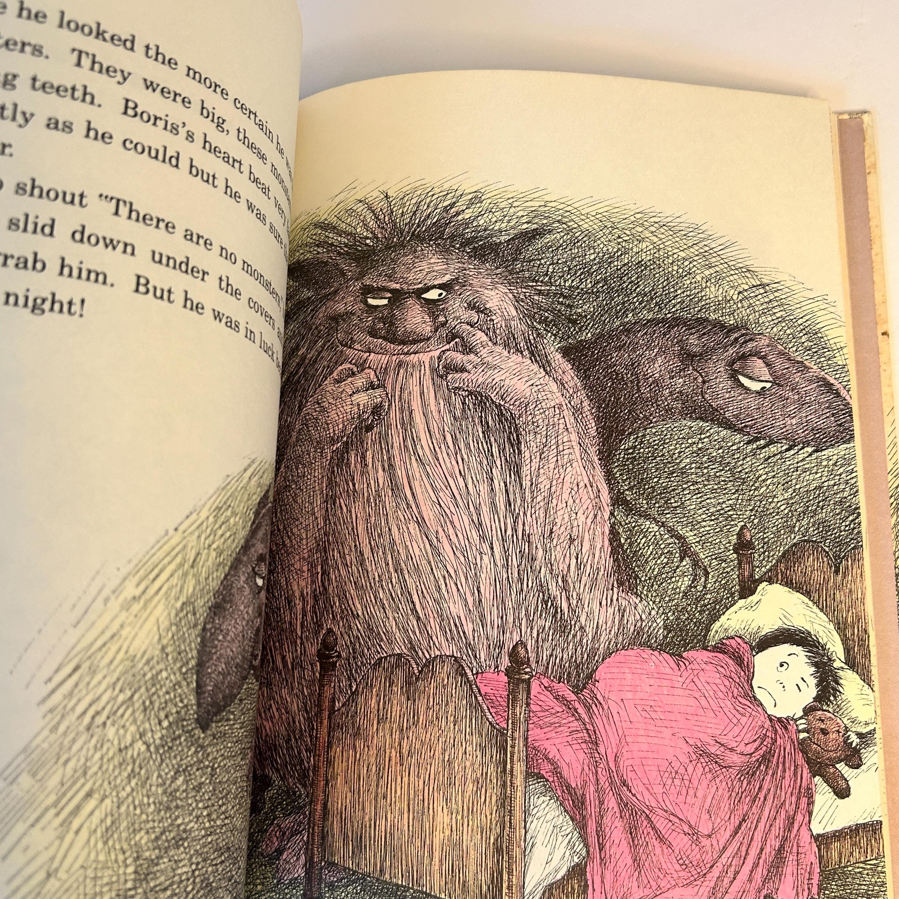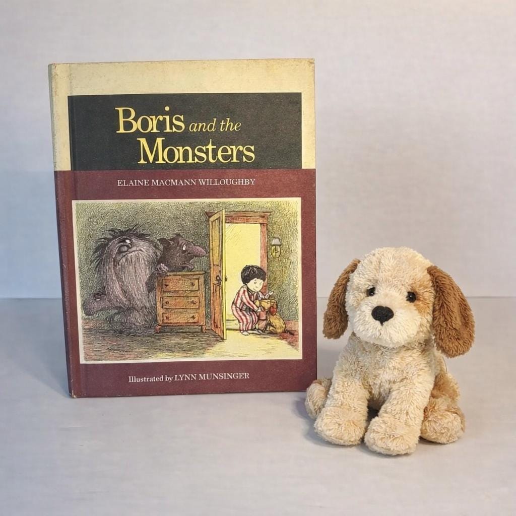 Boris is afraid of the dark and can't convince his parents that there are monsters in his room. They finally get him a puppy for comfort, but Boris winds up protecting the puppy and overcoming his fear. Illustrated.