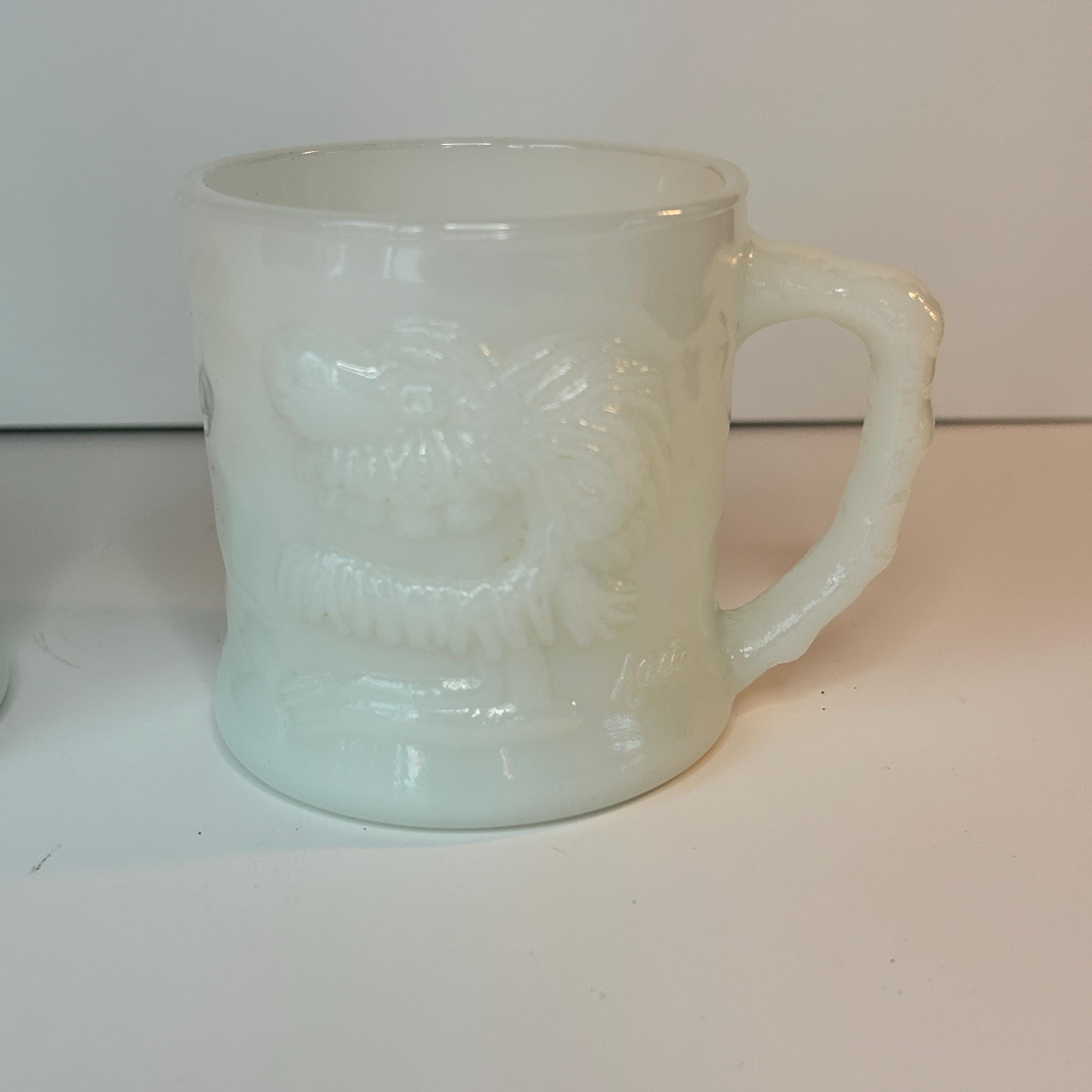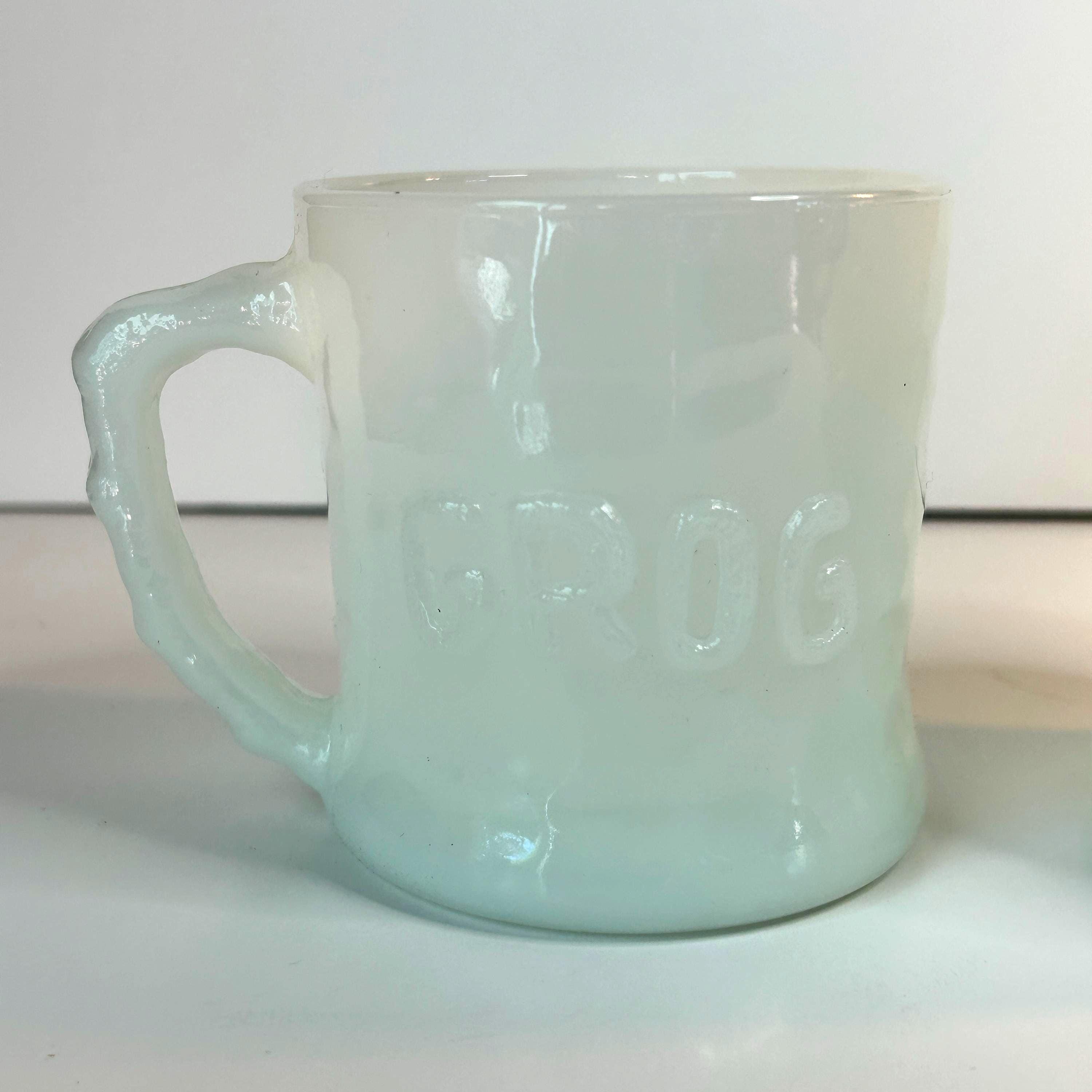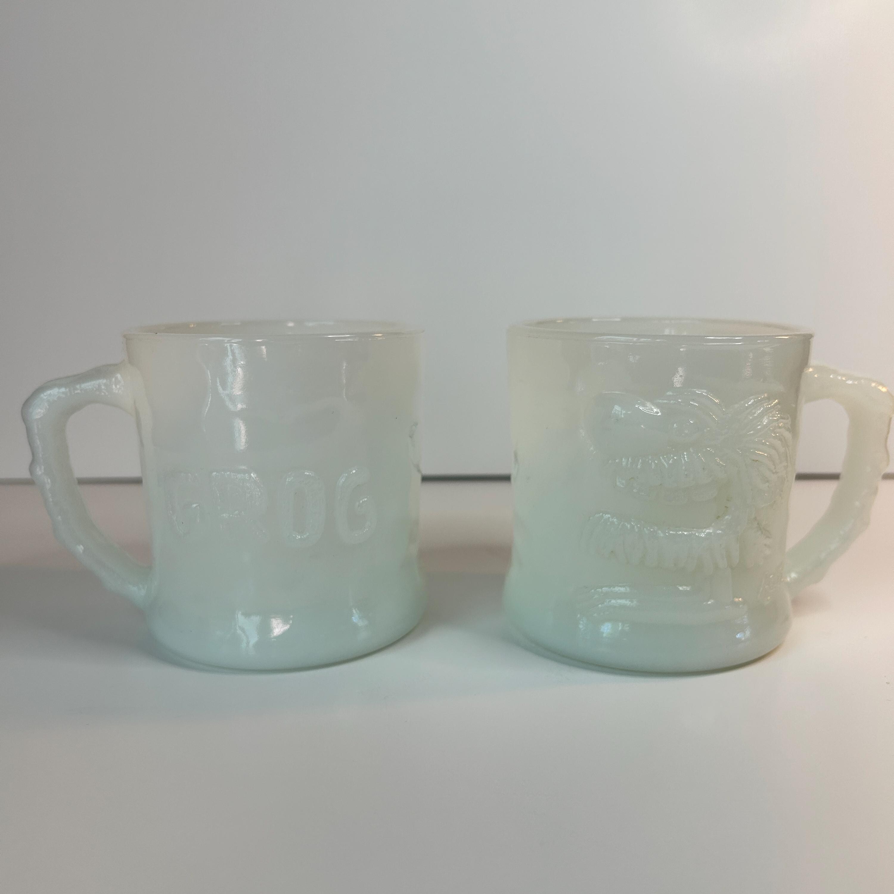 Absolutely amazing, original, and highly collectible RARE vintage Grog milk glass mug by Fire King in the 1960s. Please see all pictures for Gorgeous condition, size, and detail. Measures 3 1/2" tall and 3" in diameter at the mouth.
