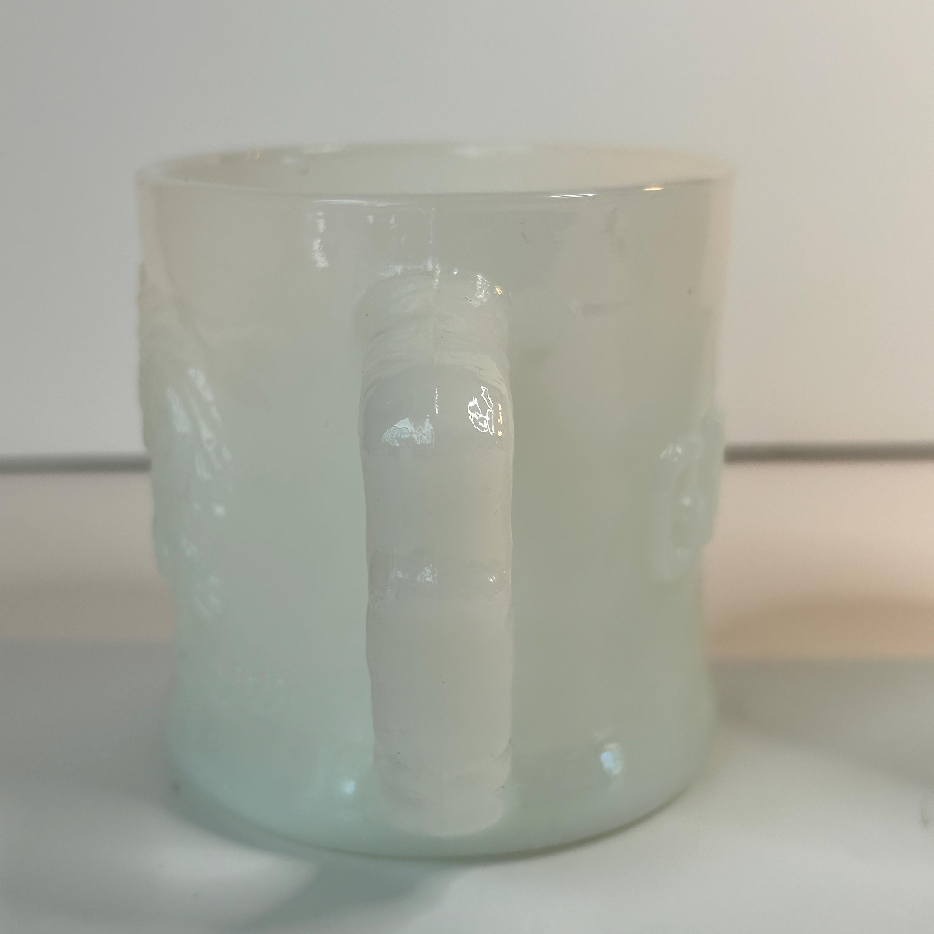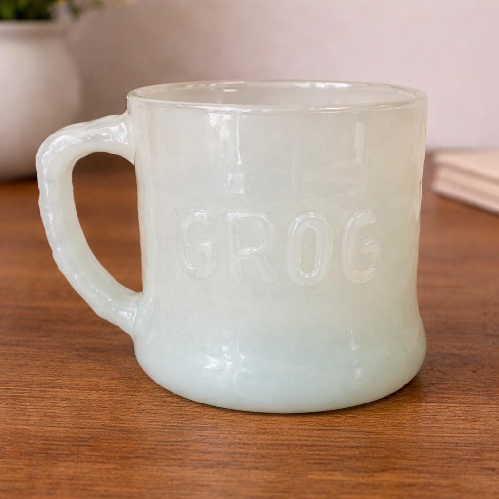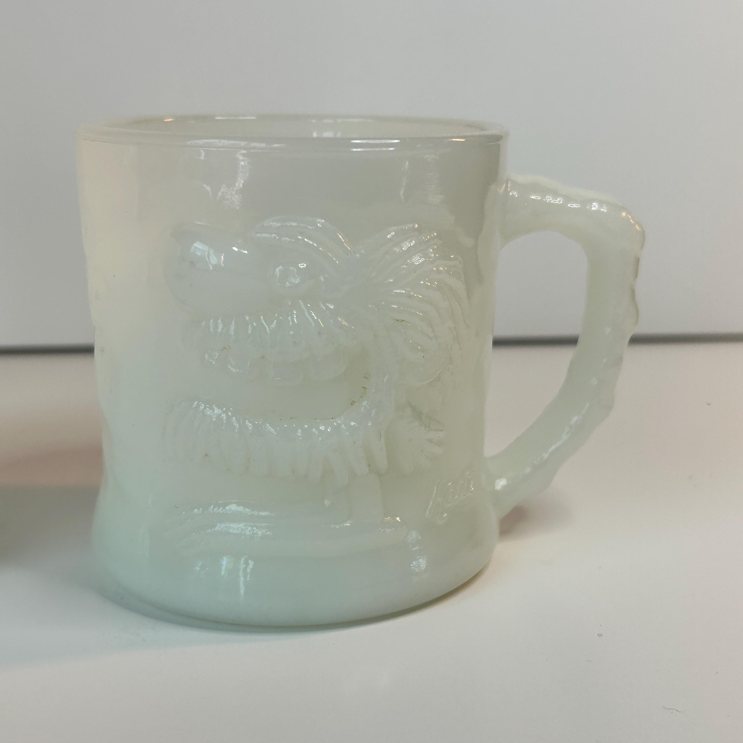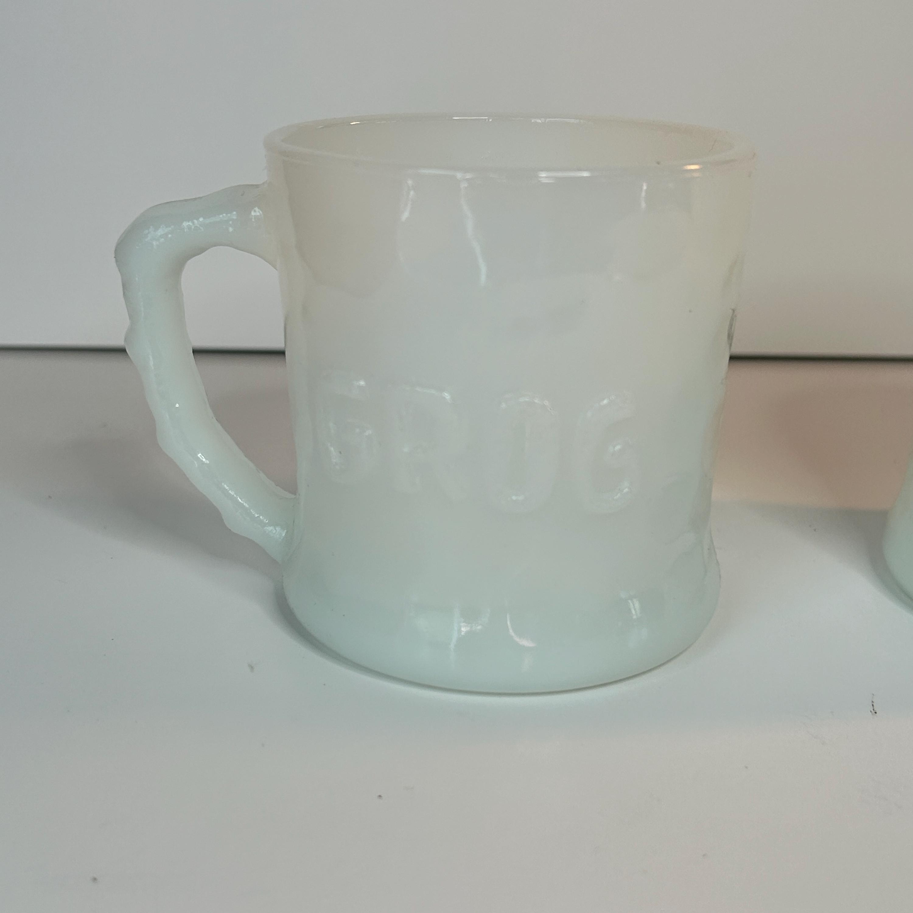 Absolutely amazing, original, and highly collectible RARE vintage Grog milk glass mug by Fire King in the 1960s. Please see all pictures for Gorgeous condition, size, and detail. Measures 3 1/2" tall and 3" in diameter at the mouth.