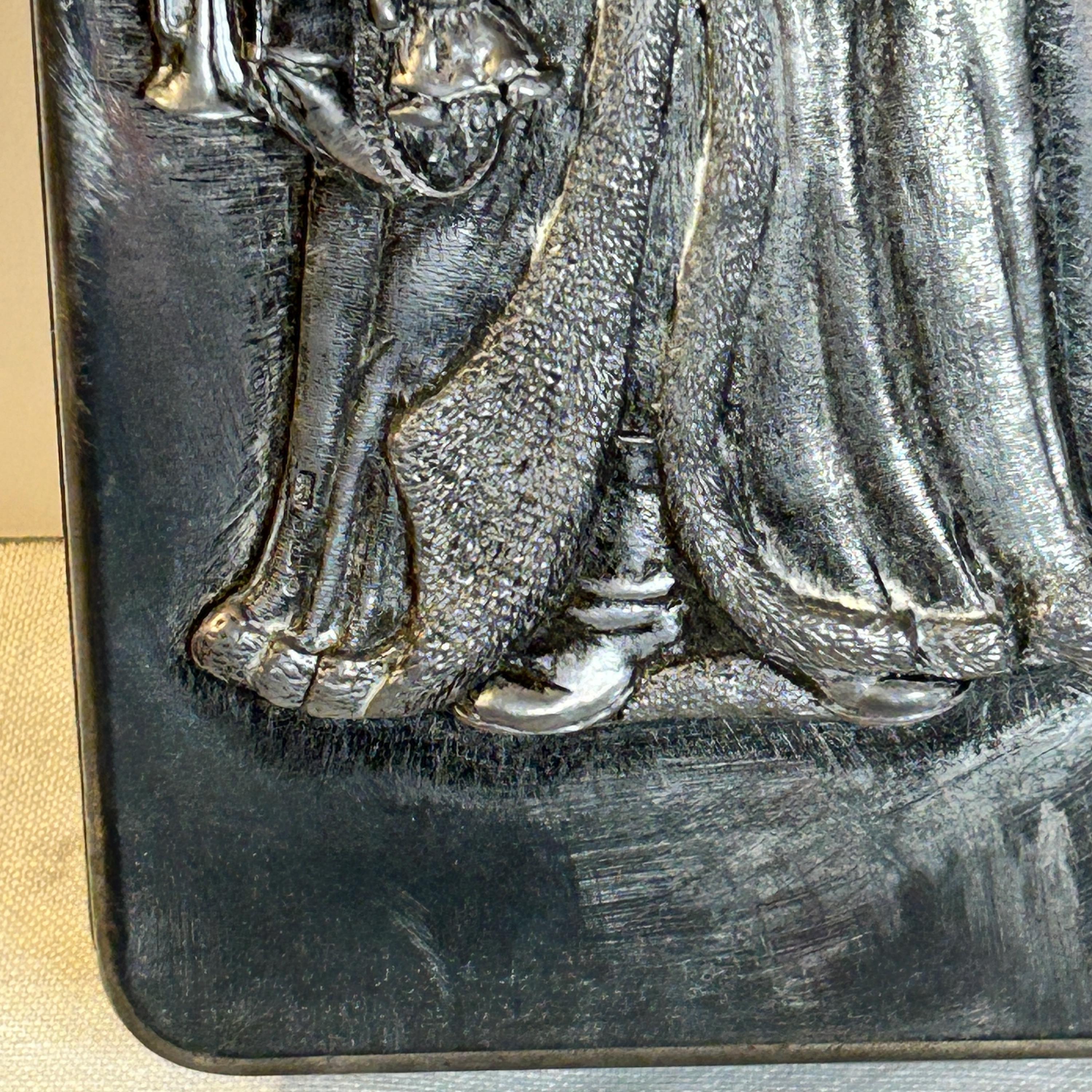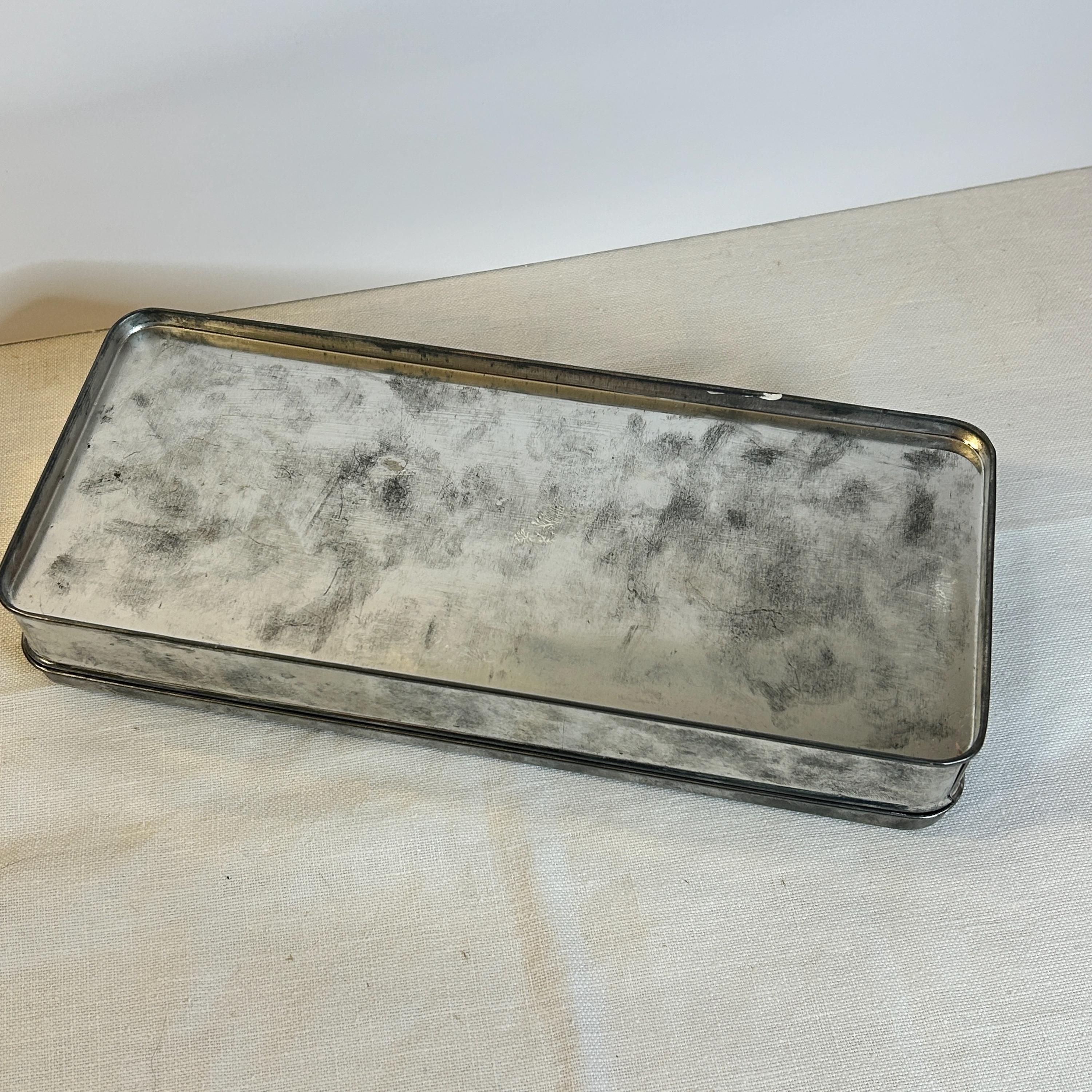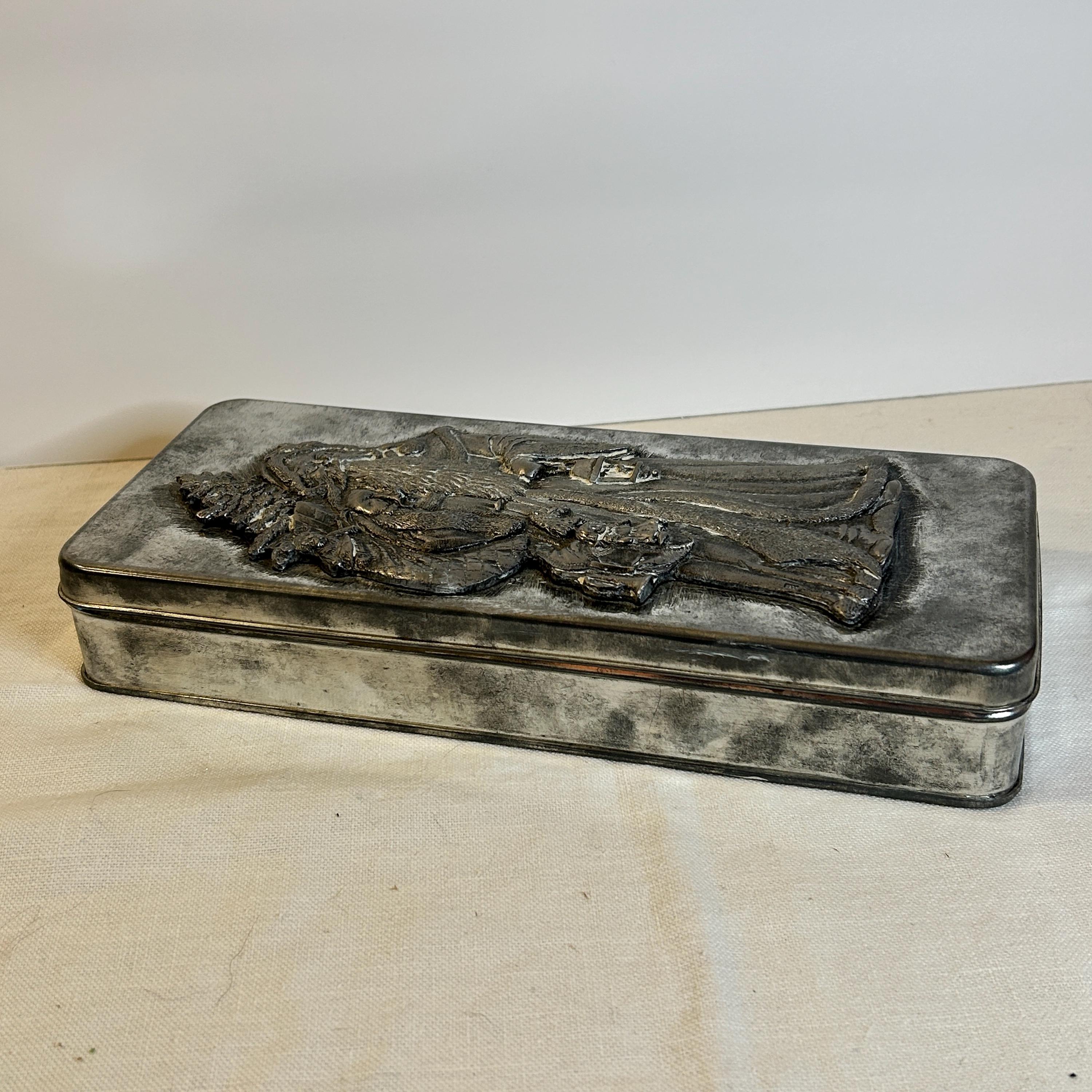 This vintage rectangle Metzke pewter holiday Santa Tin is remarkable.
