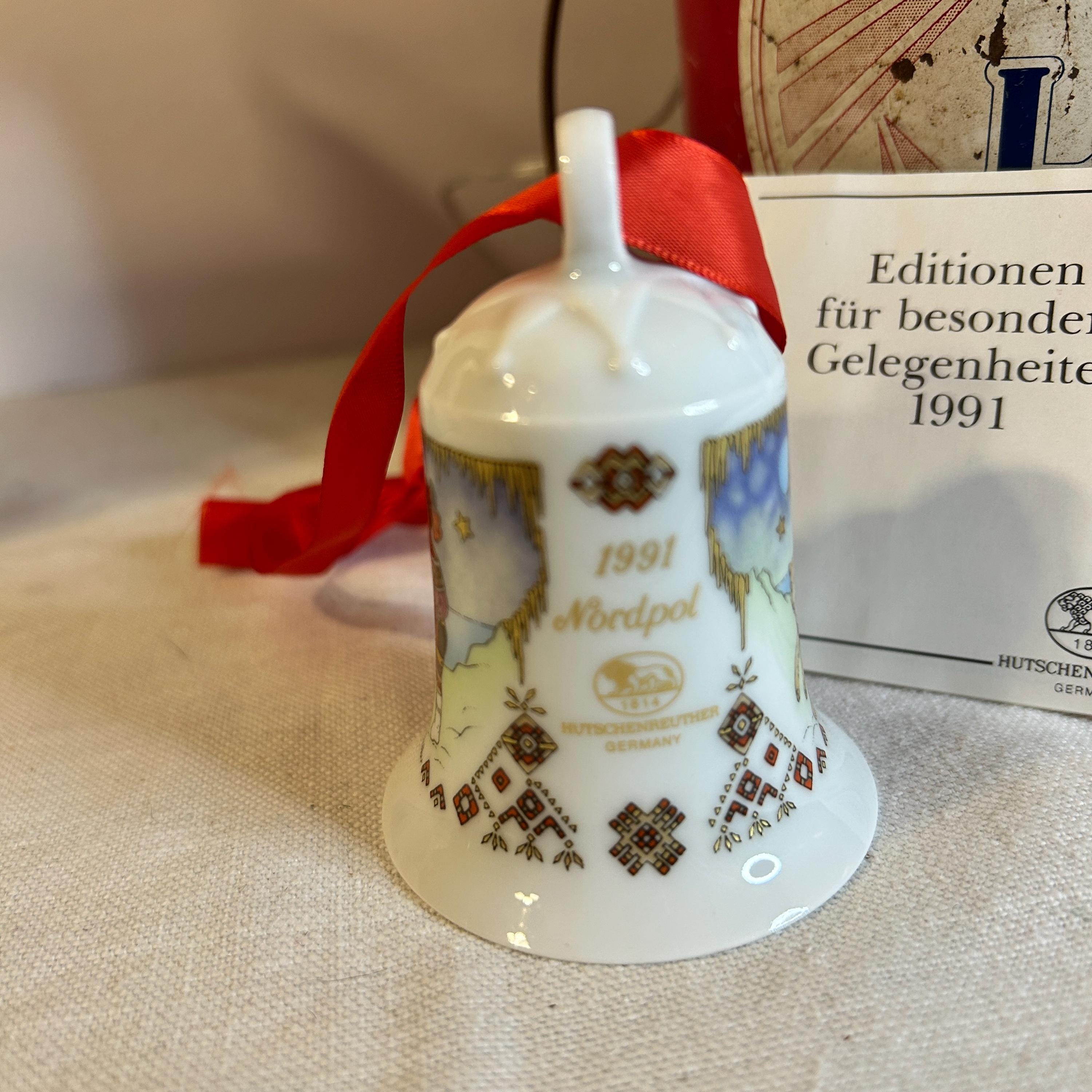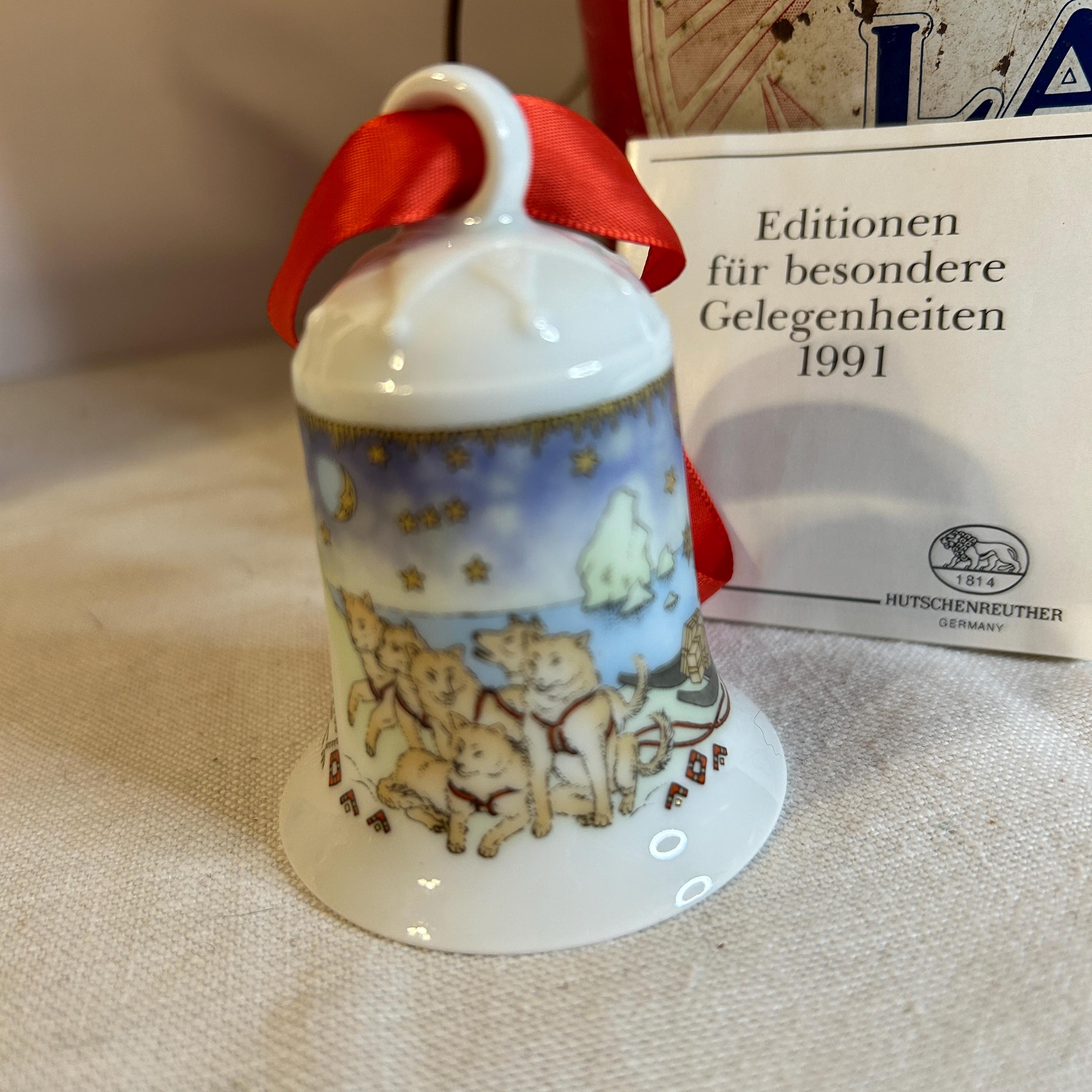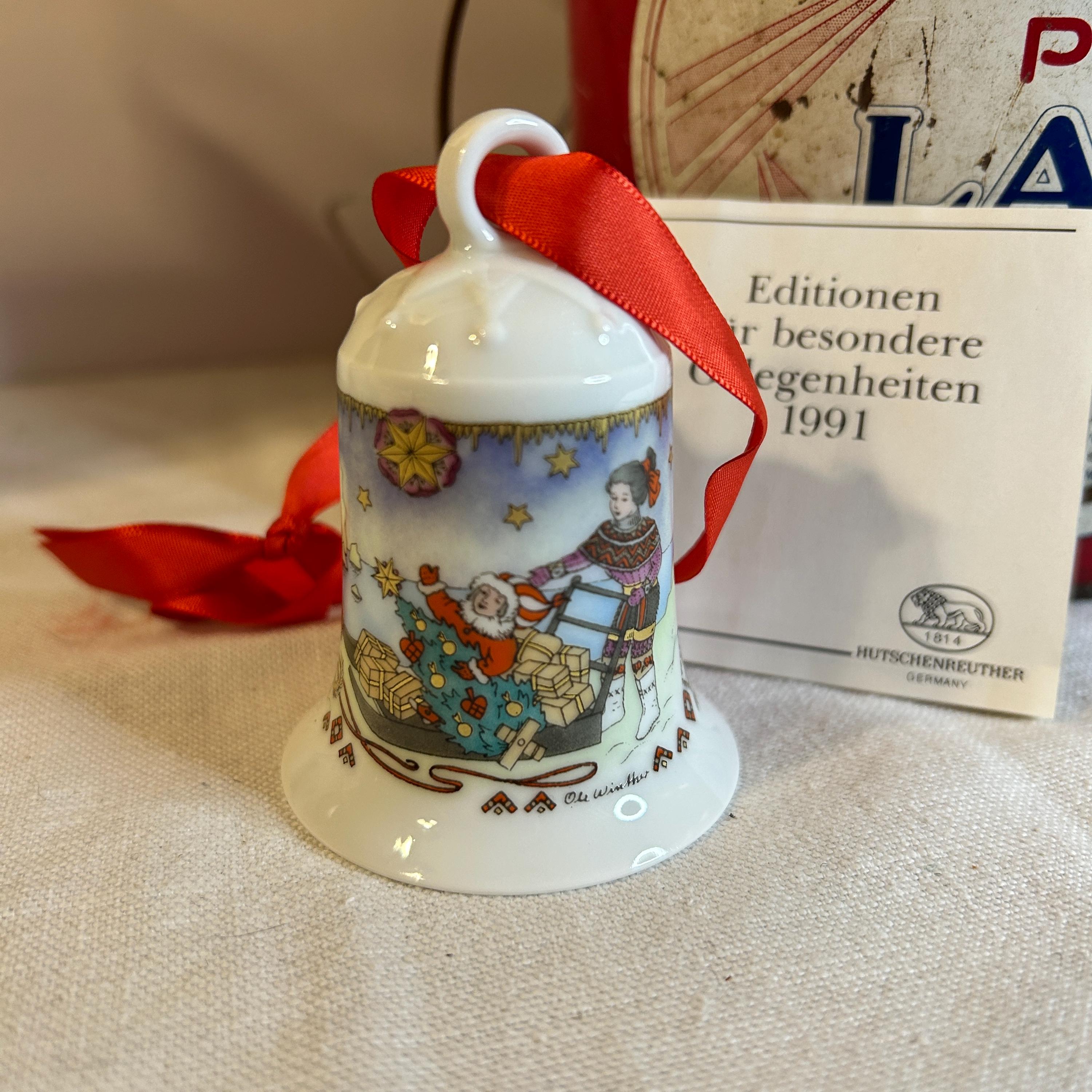 This is a fine bone china Weihnachts-Glocke 1991 Porcelain Christmas Bell. It was manufactured by Hutschenreuther in Germany. It is is 2.9″ H x 2.2″ W. The bell is a limited edition and was released for Christmas 1991. The designer was Ole Winther and his signature is on the bell. The colors are bright & colorful with a special gold etching. The bell is in like new condition in the original box.