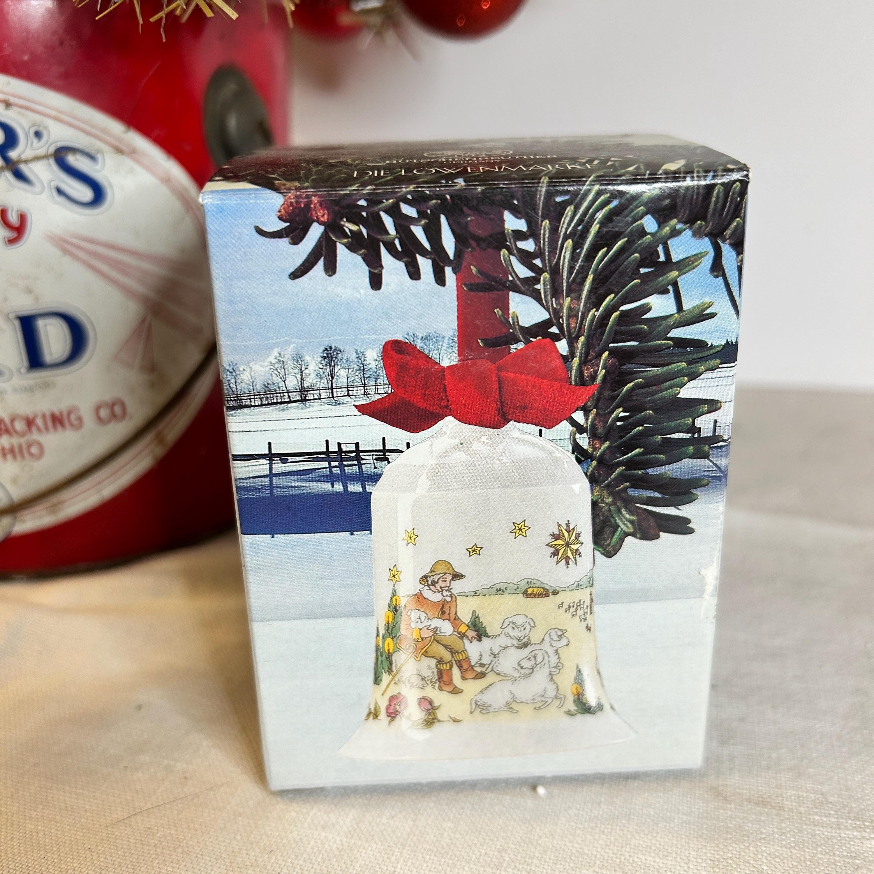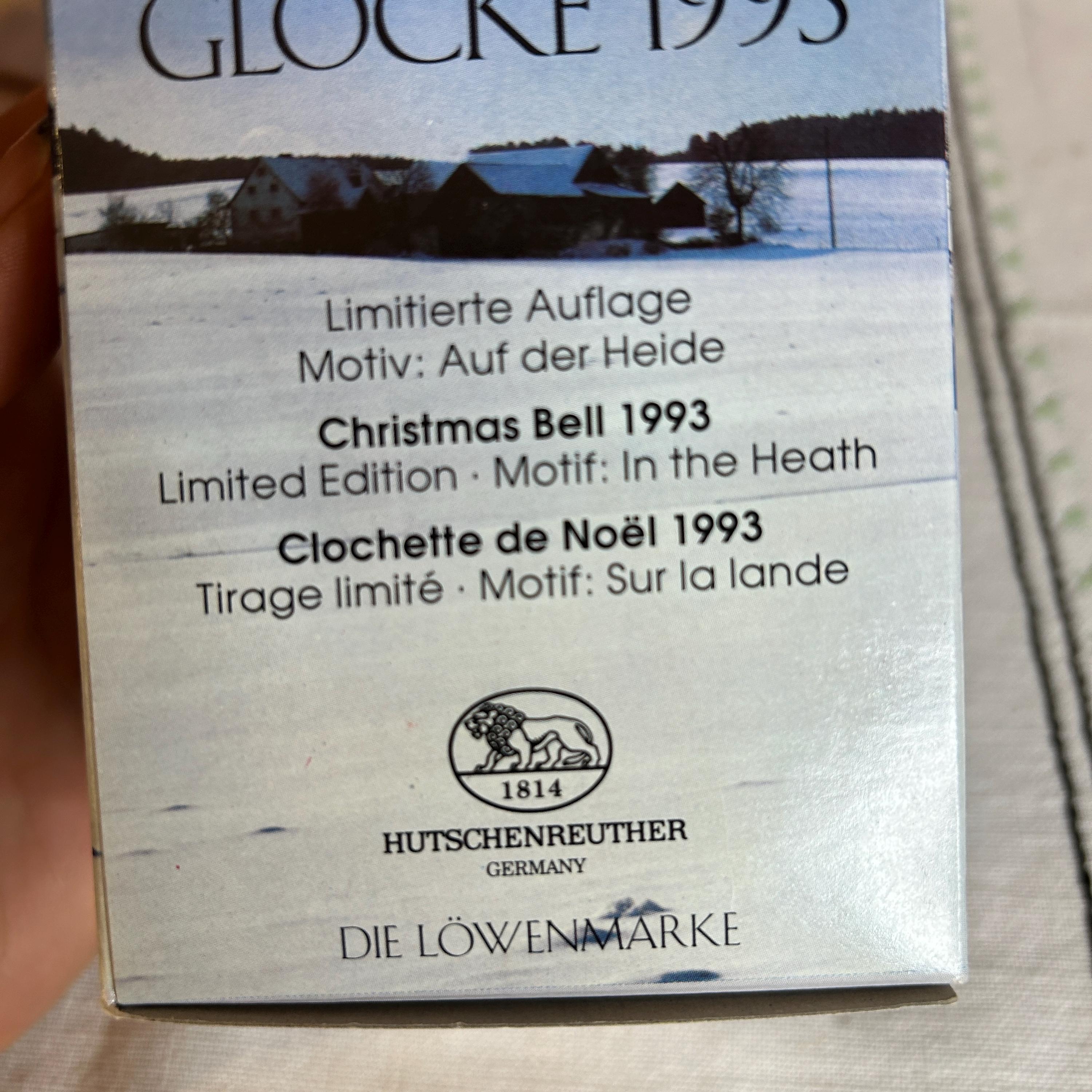 This is a fine bone china Weihnachts-Glocke 1993 Porcelain Christmas Bell. It was manufactured by Hutschenreuther in Germany. It is is 2.9″ H x 2.2″ W. The bell is a limited edition and was released for Christmas 1993. The designer was Ole Winther and his signature is on the bell. The colors are bright & colorful with a special gold etching. The bell is in like new condition in the original box.