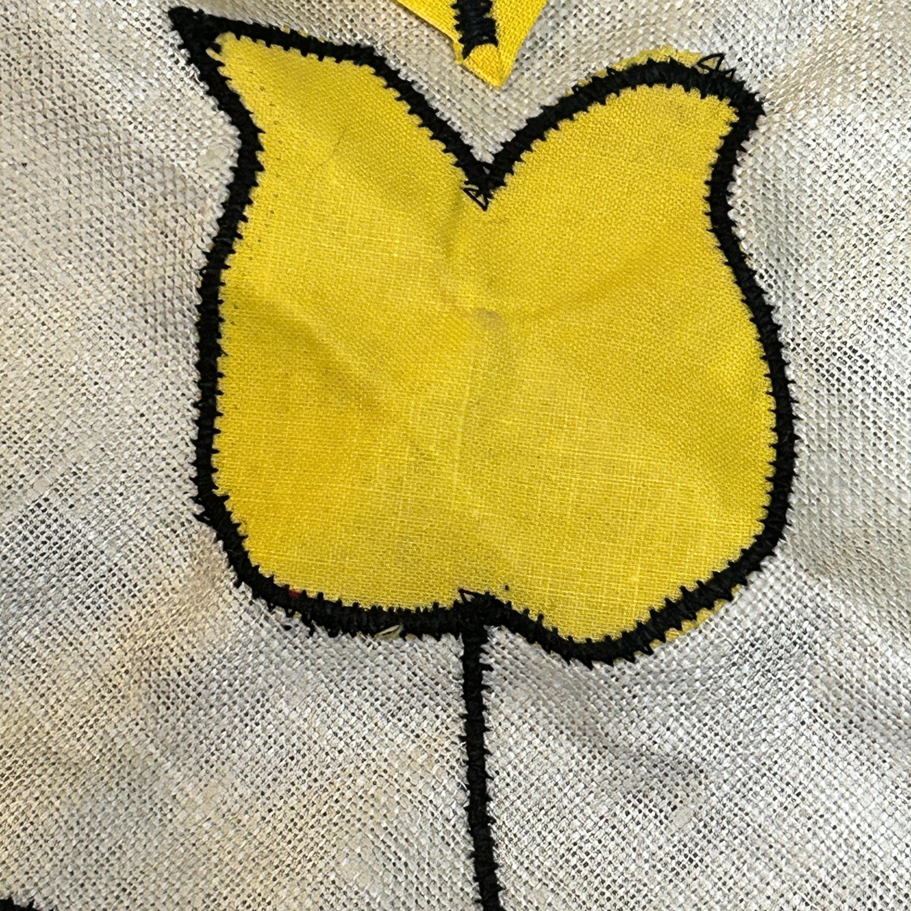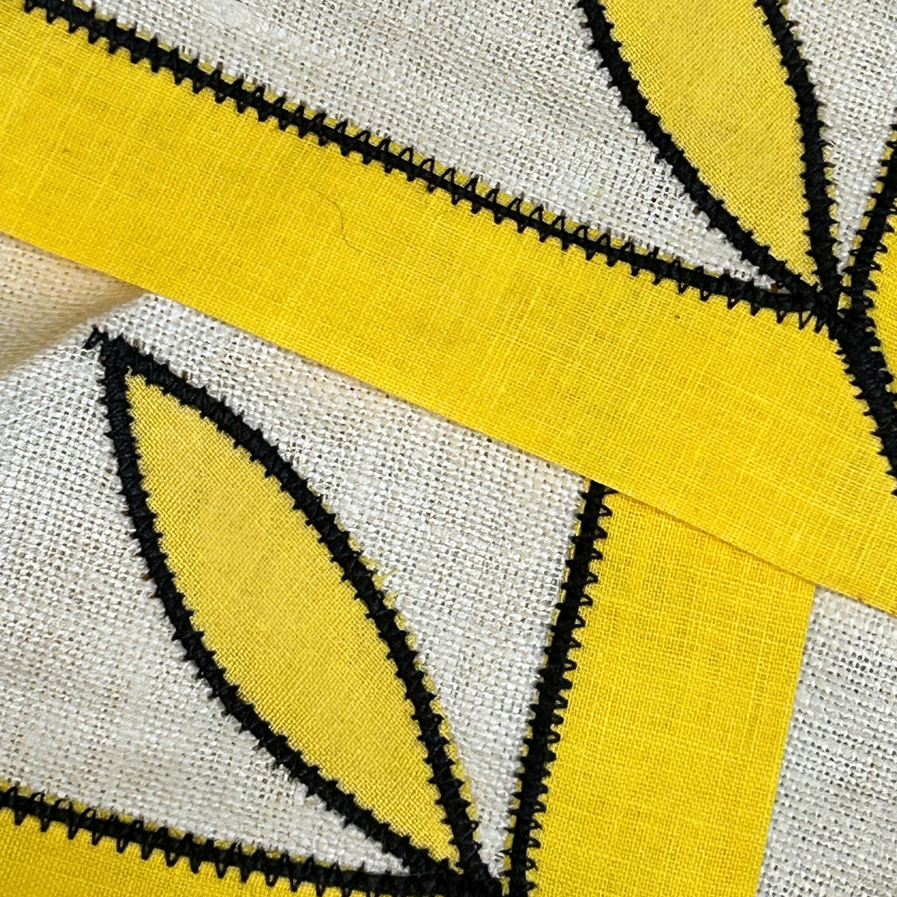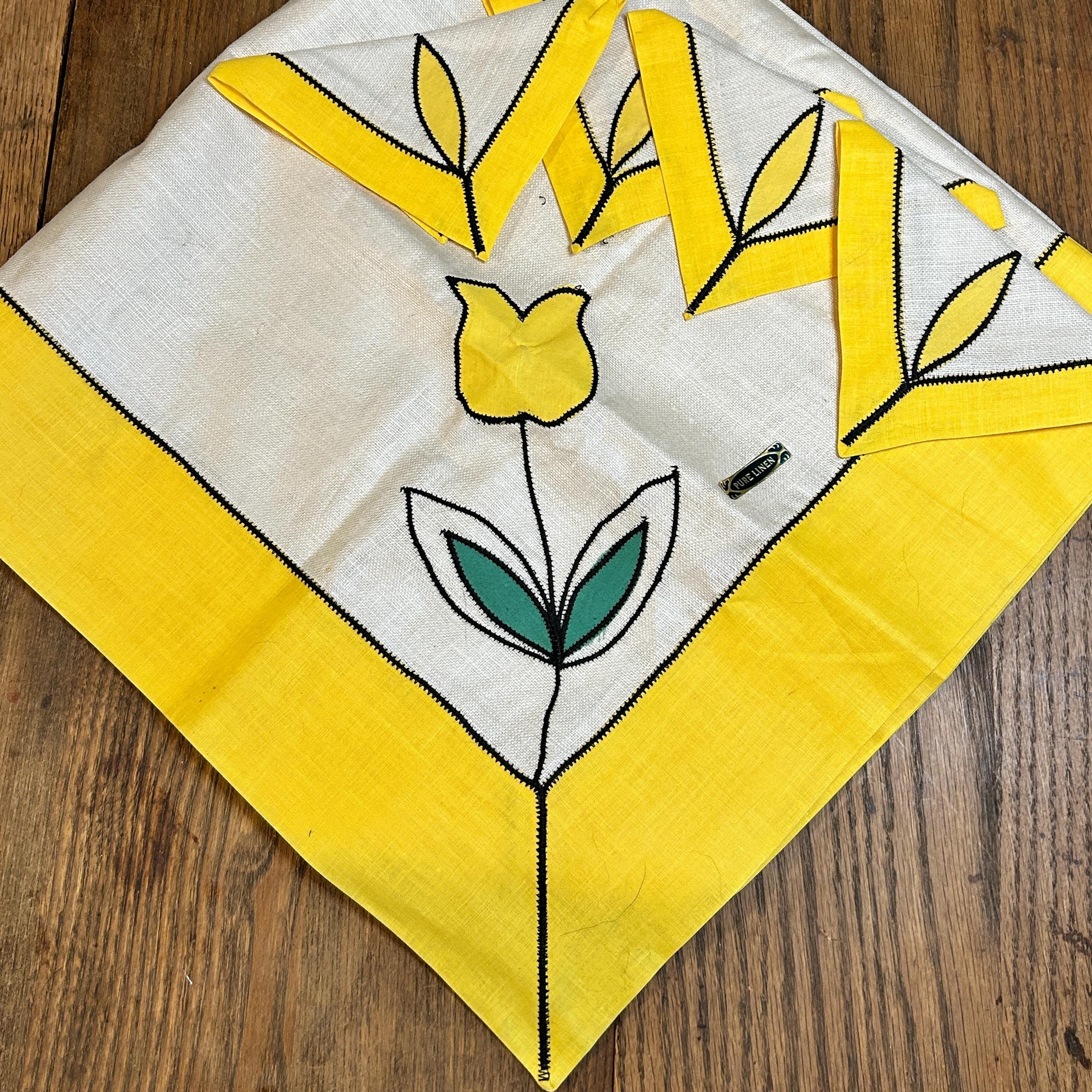 They have bright yellow around the edges of both the tablecloth and the napkins.