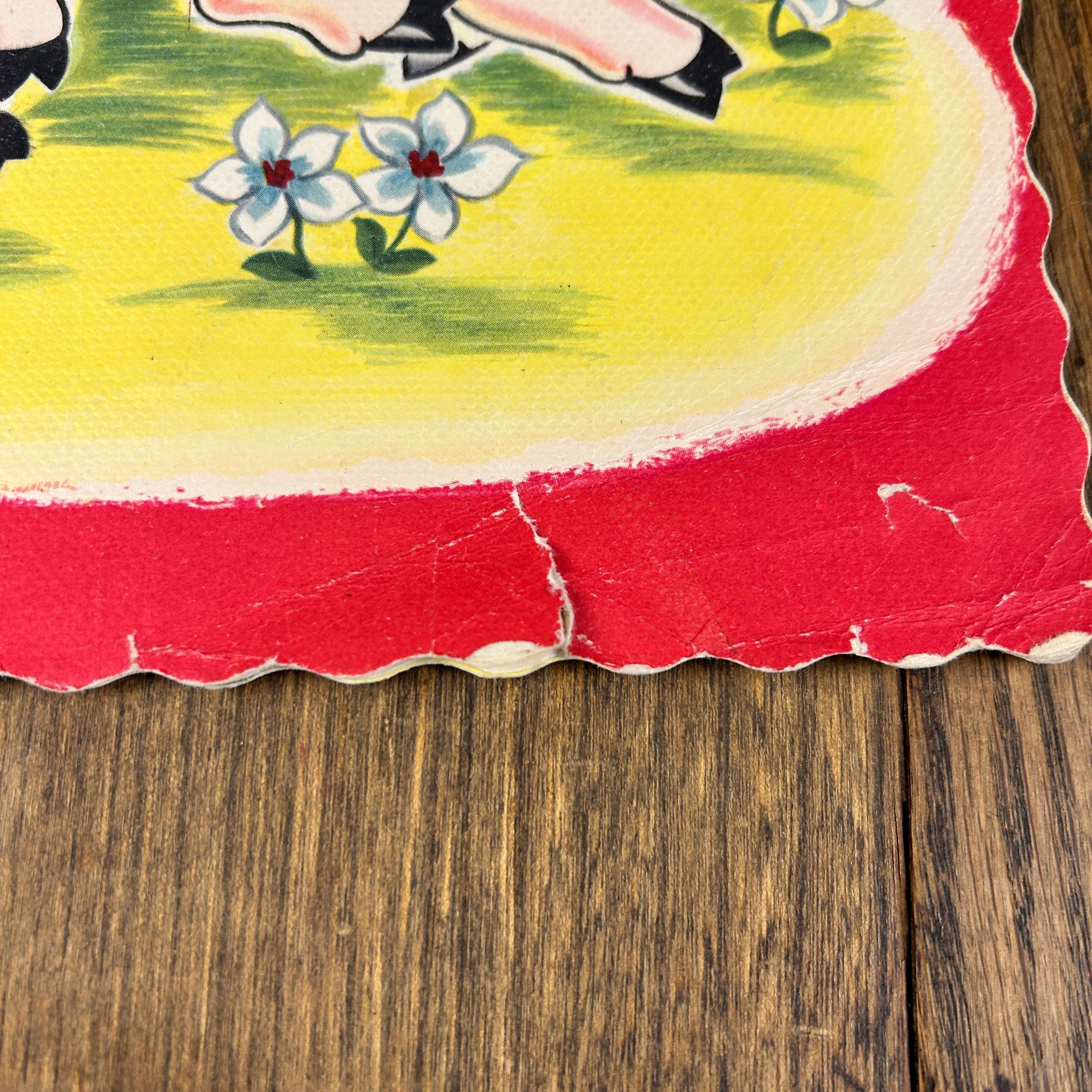 The book is in good condition with a small tear on front cover. No staining. Scalloped edge. Illustrations are colorful and vibrant. There's no writing inside. The page and binding are intact. Please see all photos as they are part of the description.