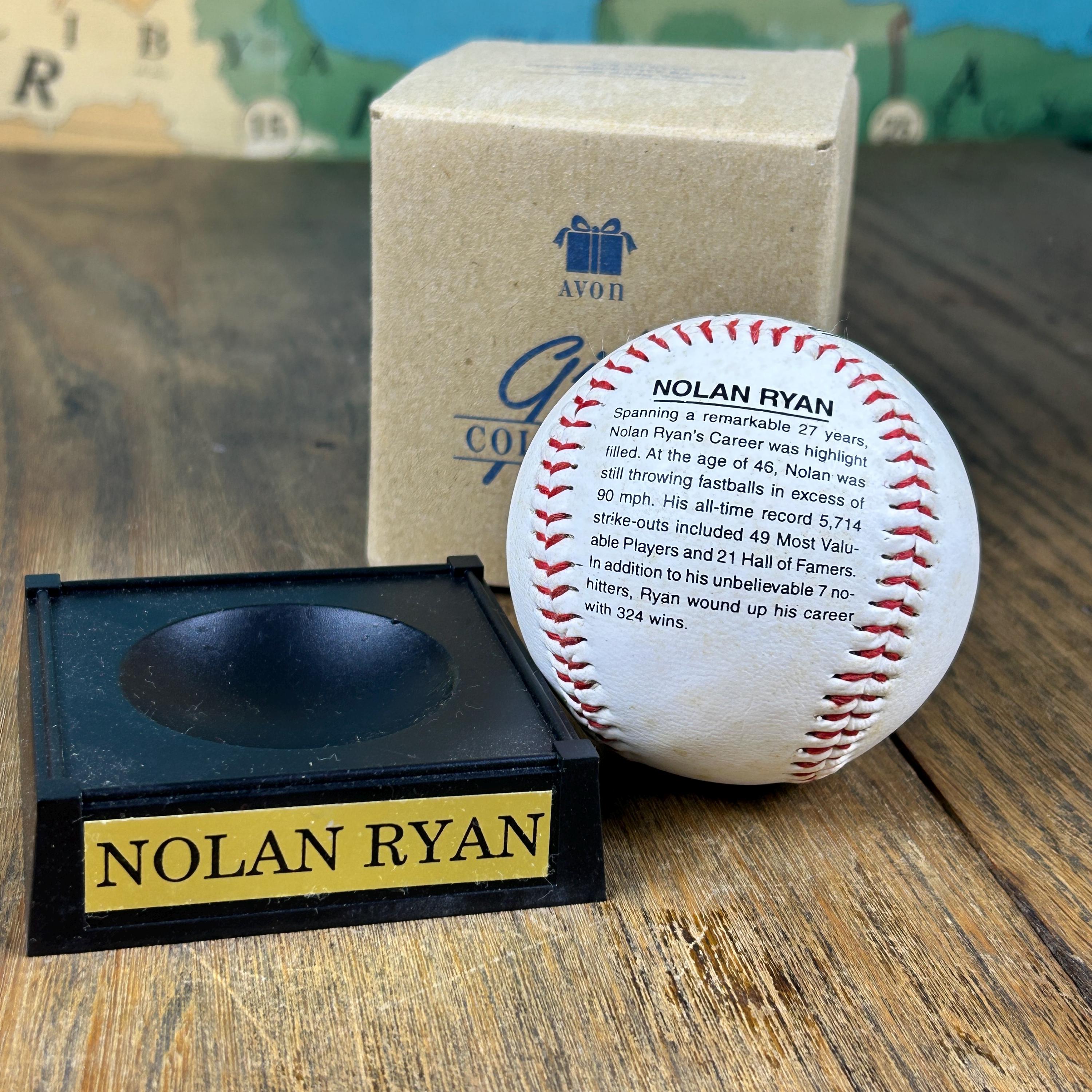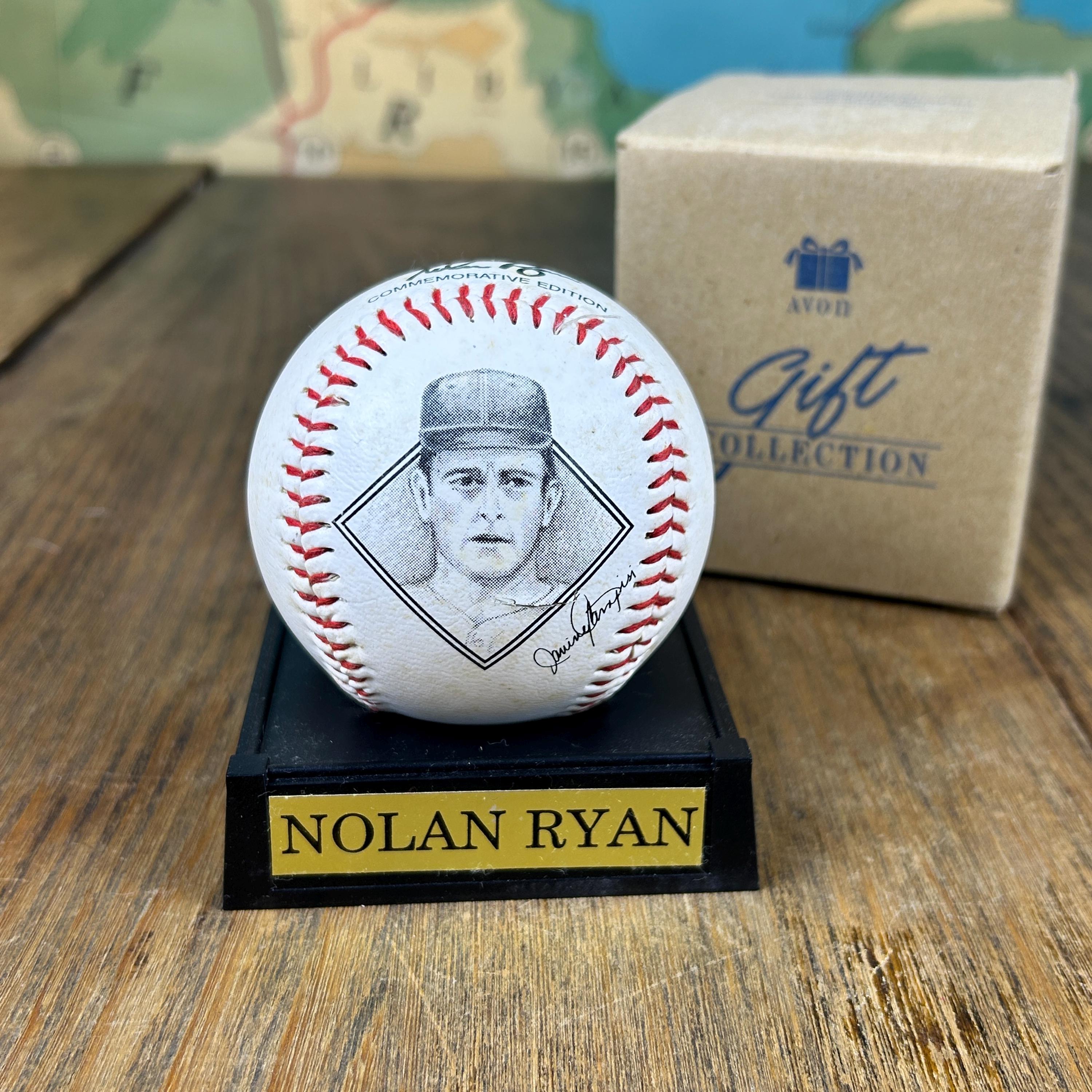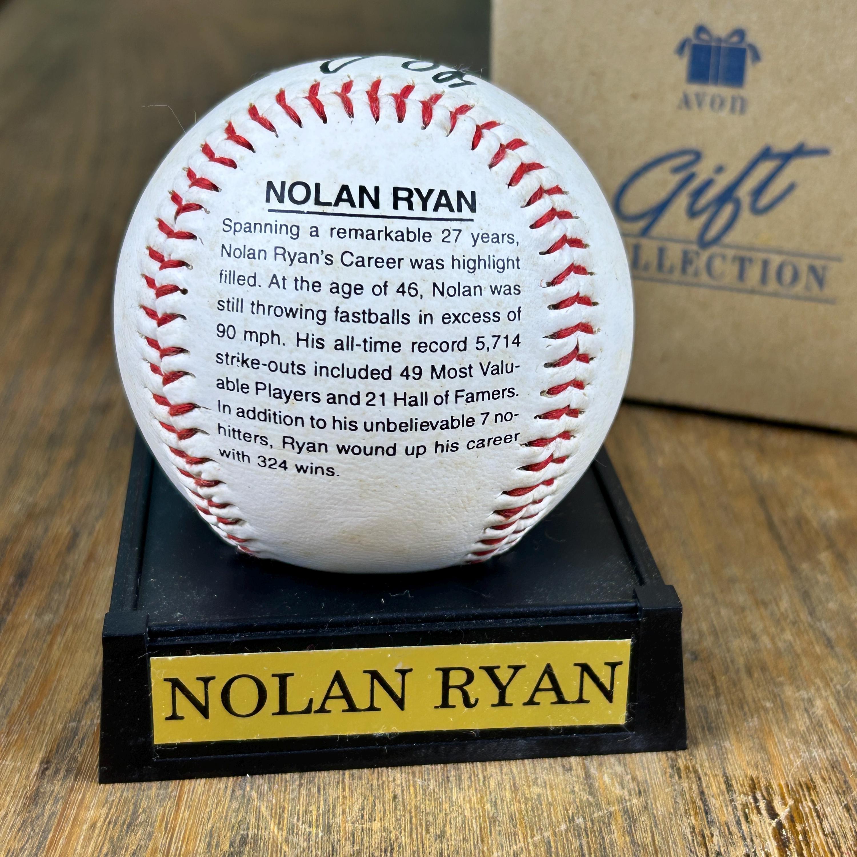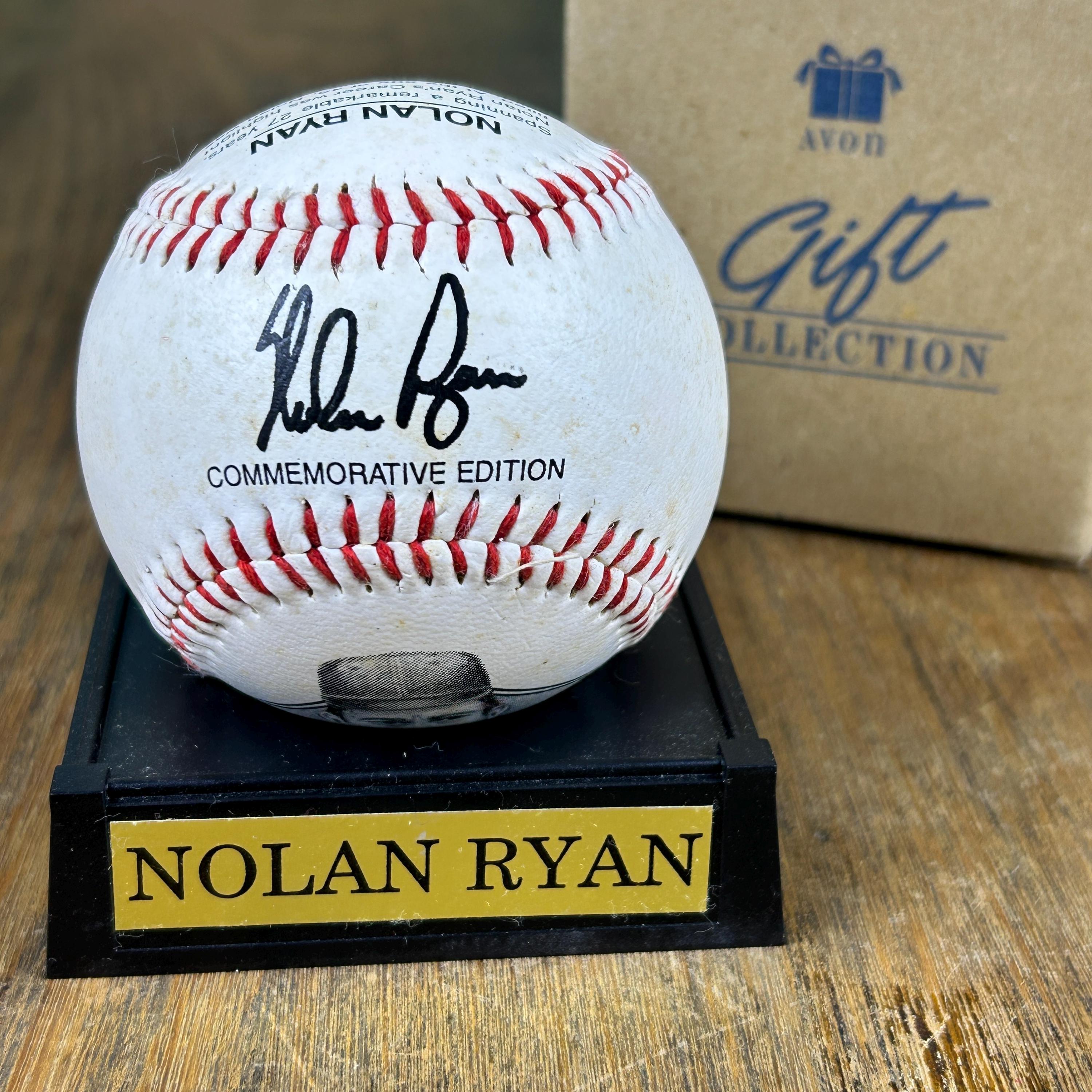 Issued by Avon Gift Collection, this commemorative baseball with display stand features Nolan Ryan. On the front of the ball is a picture of Nolan Ryan and the back states: