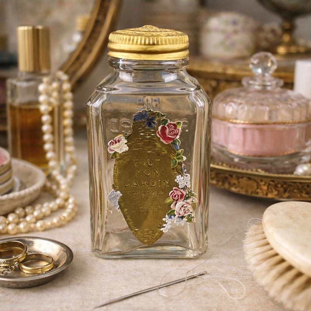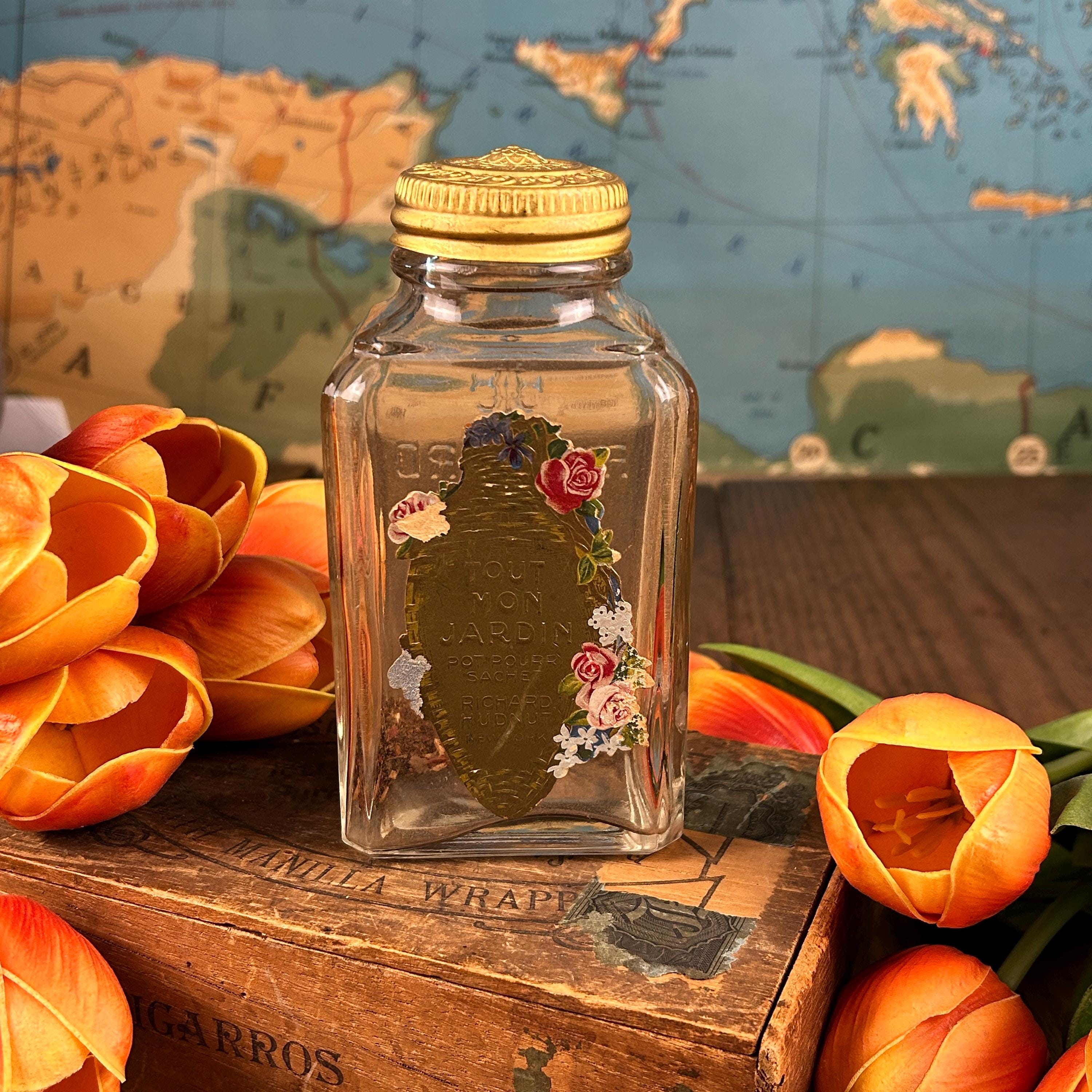 This is one of the coolest things I've ever found. I love antique vanity items and this is an amazing Richard Hudnut bottle with some of the original potpourri still in it!