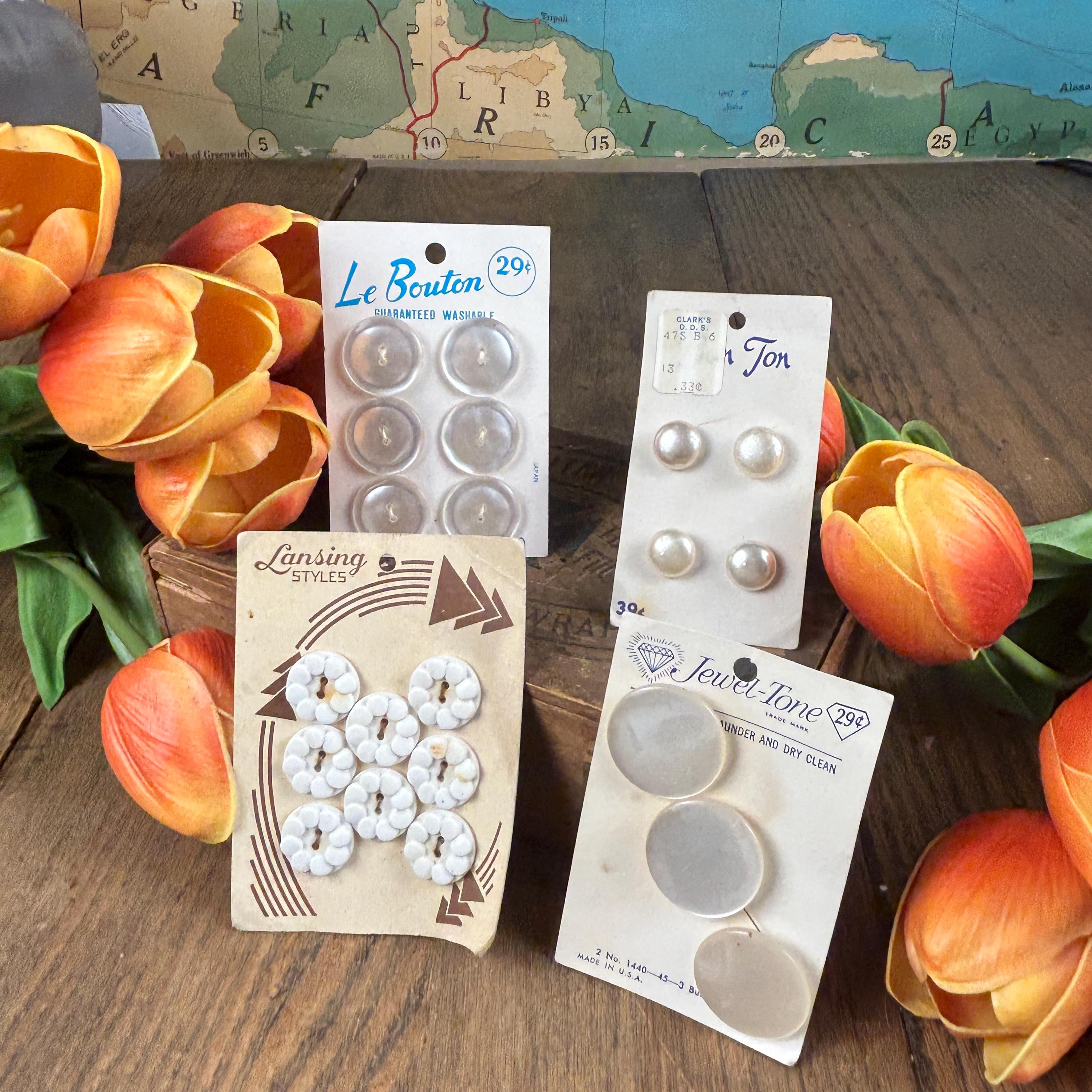 This listing is for a lot of four (4) UNUSED NOS carded vintage buttons.