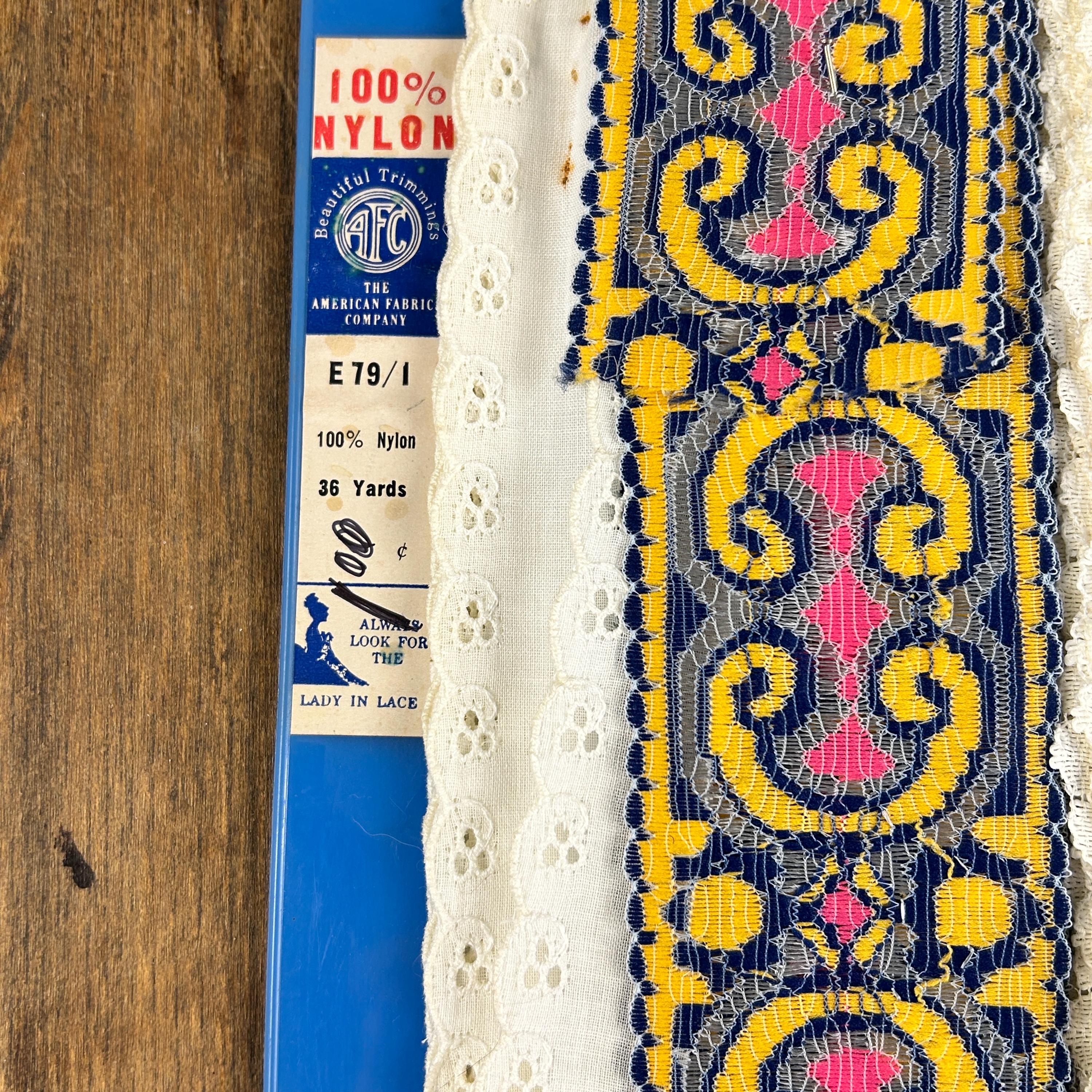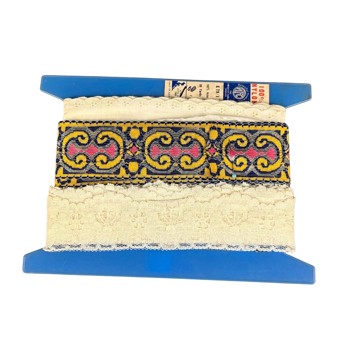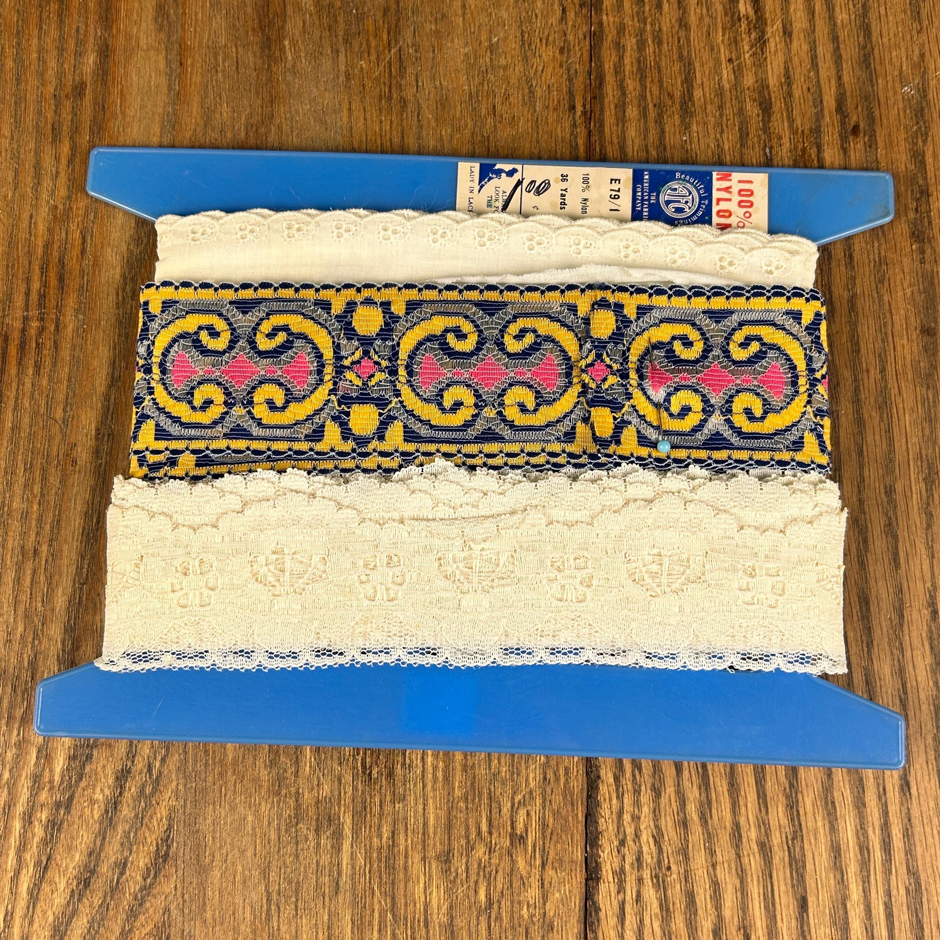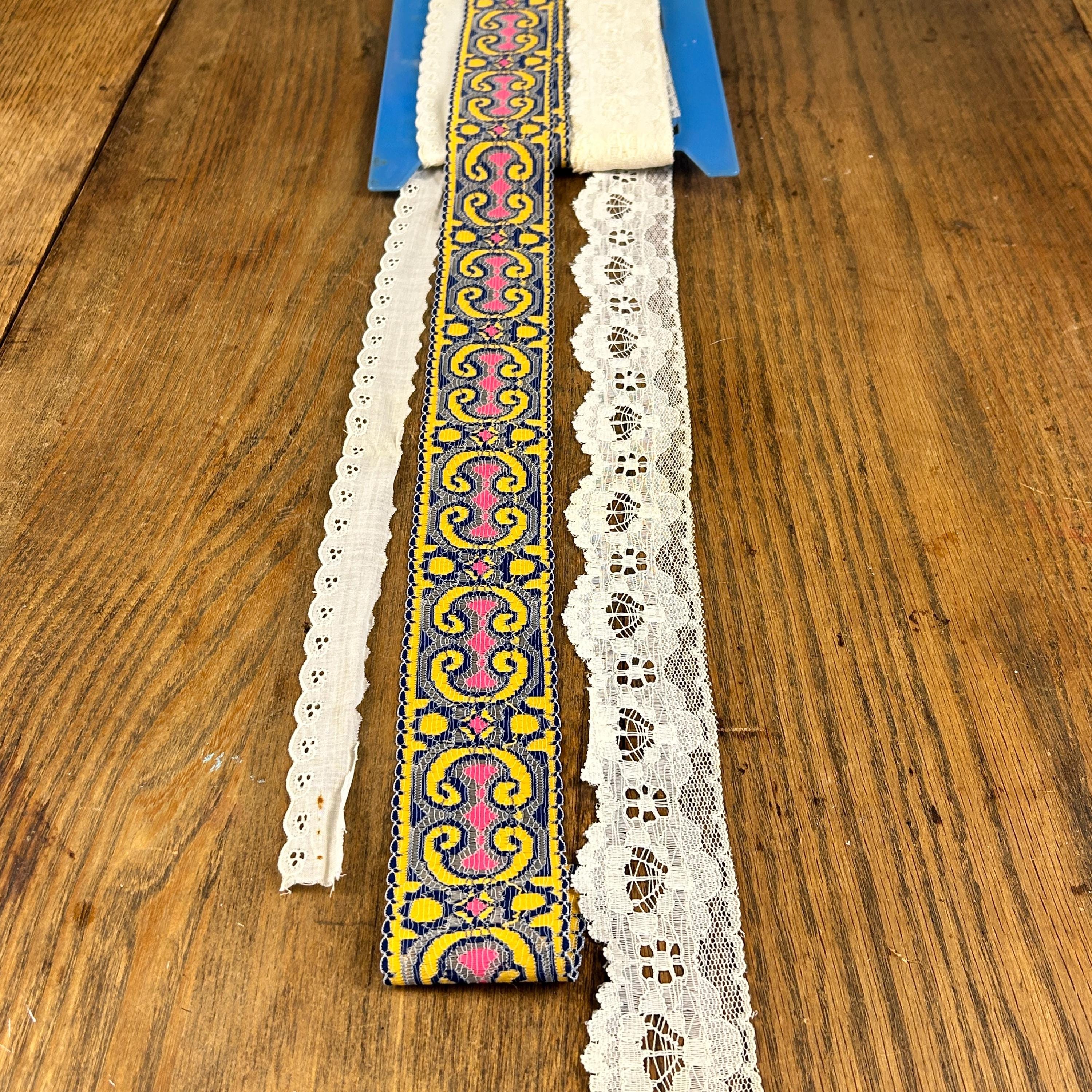 All are in excellent vintage condition. There are several yards of both 1 and 2. Probably a couple of yards of the eyelet.