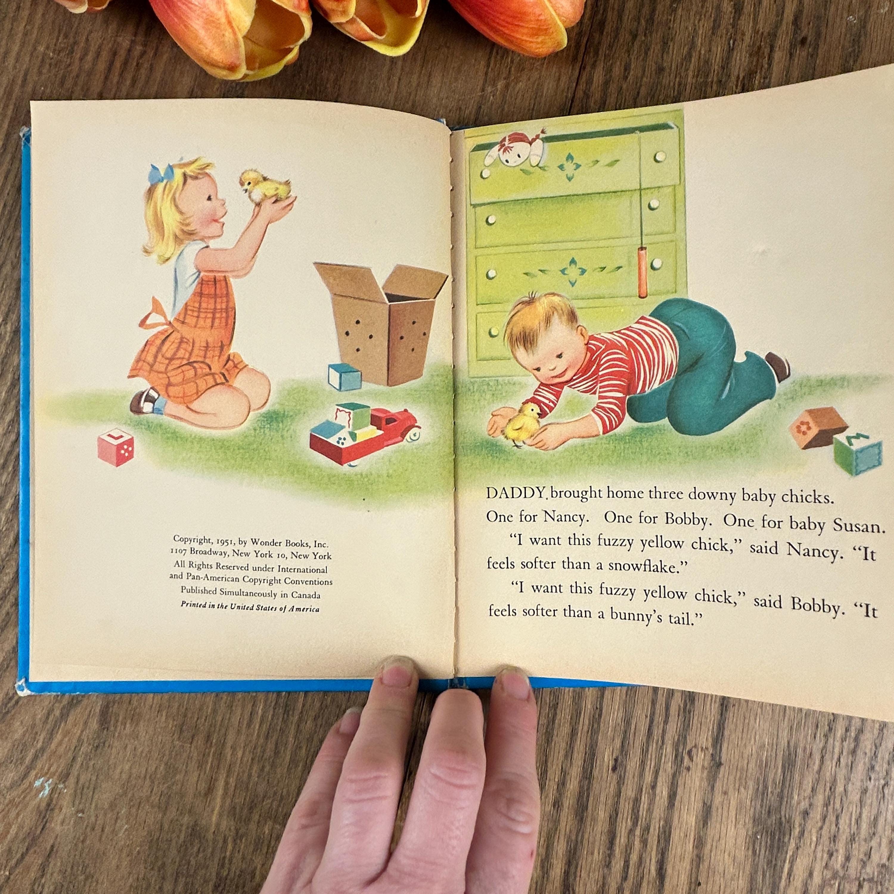 Cutest book all about 3 children who each are given a baby chick.