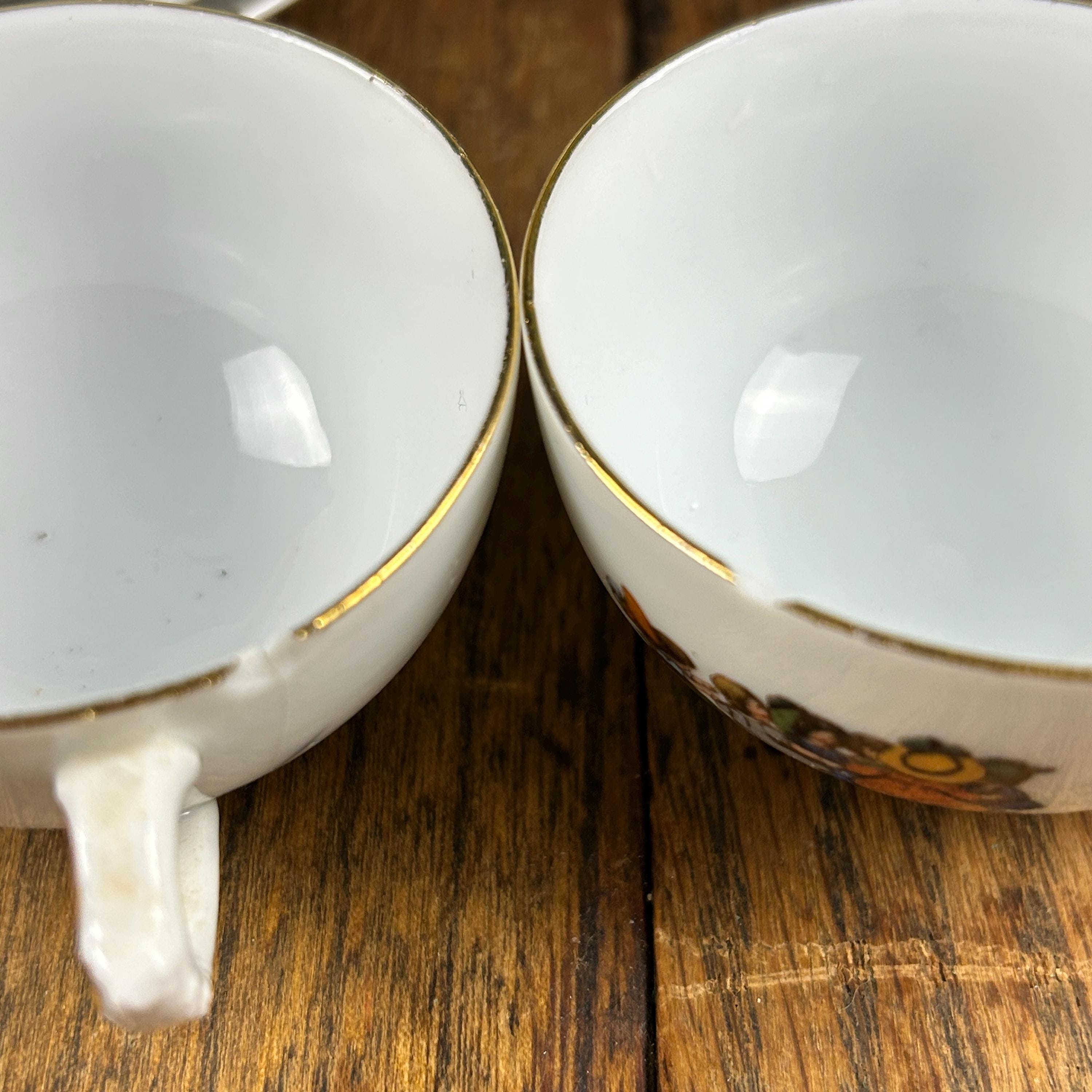 All in lovely condition with very little wear, except for tiny chips at the edge of two cups. That is shown in the photos.