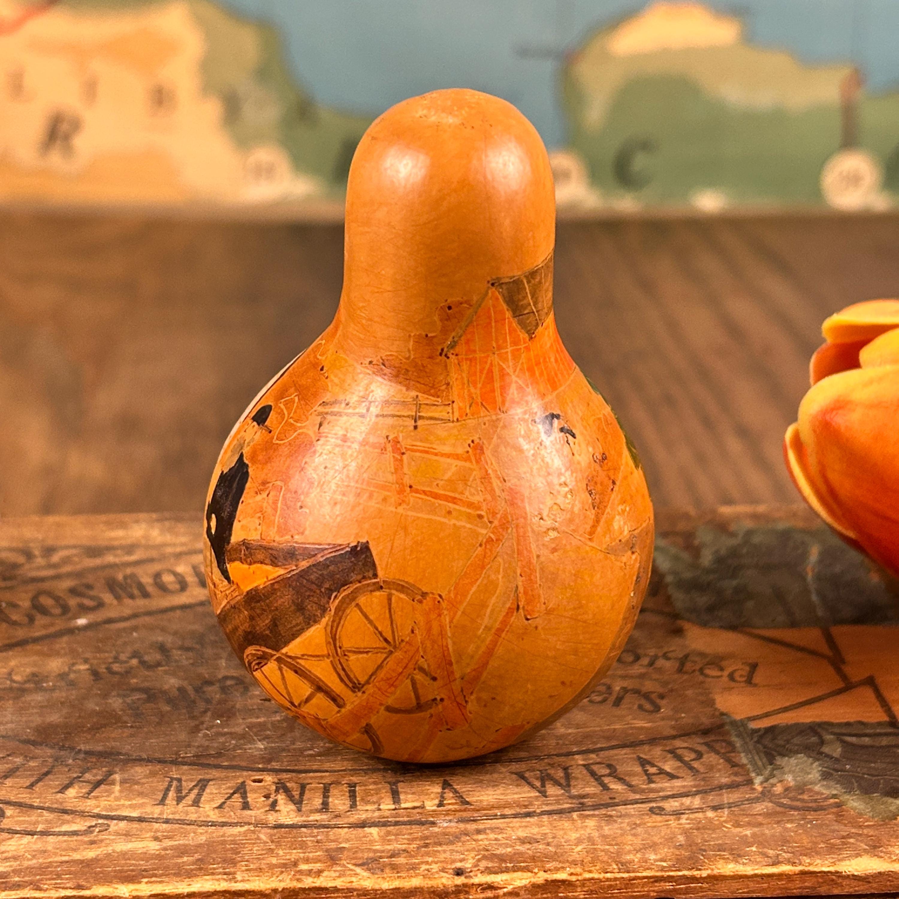 Immerse your home in the rustic charm of Vintage Carved Gourds Rattle, a piece of hand-carved Peruvian Folk Art. This primitive and authentic décor item adds a touch of traditional craftsmanship to your space. The intricately carved gourds, transformed into rattles, showcase the skillful artistry of Peruvian artisans. Whether displayed as a standalone piece or incorporated into your rustic home decor, these vintage carved gourds bring a unique and cultural flair to your living space. Embrace the primitive beauty and traditional artistry with this distinctive piece of Peruvian Folk Art. This is a vintage item and may show minor wear due to age.