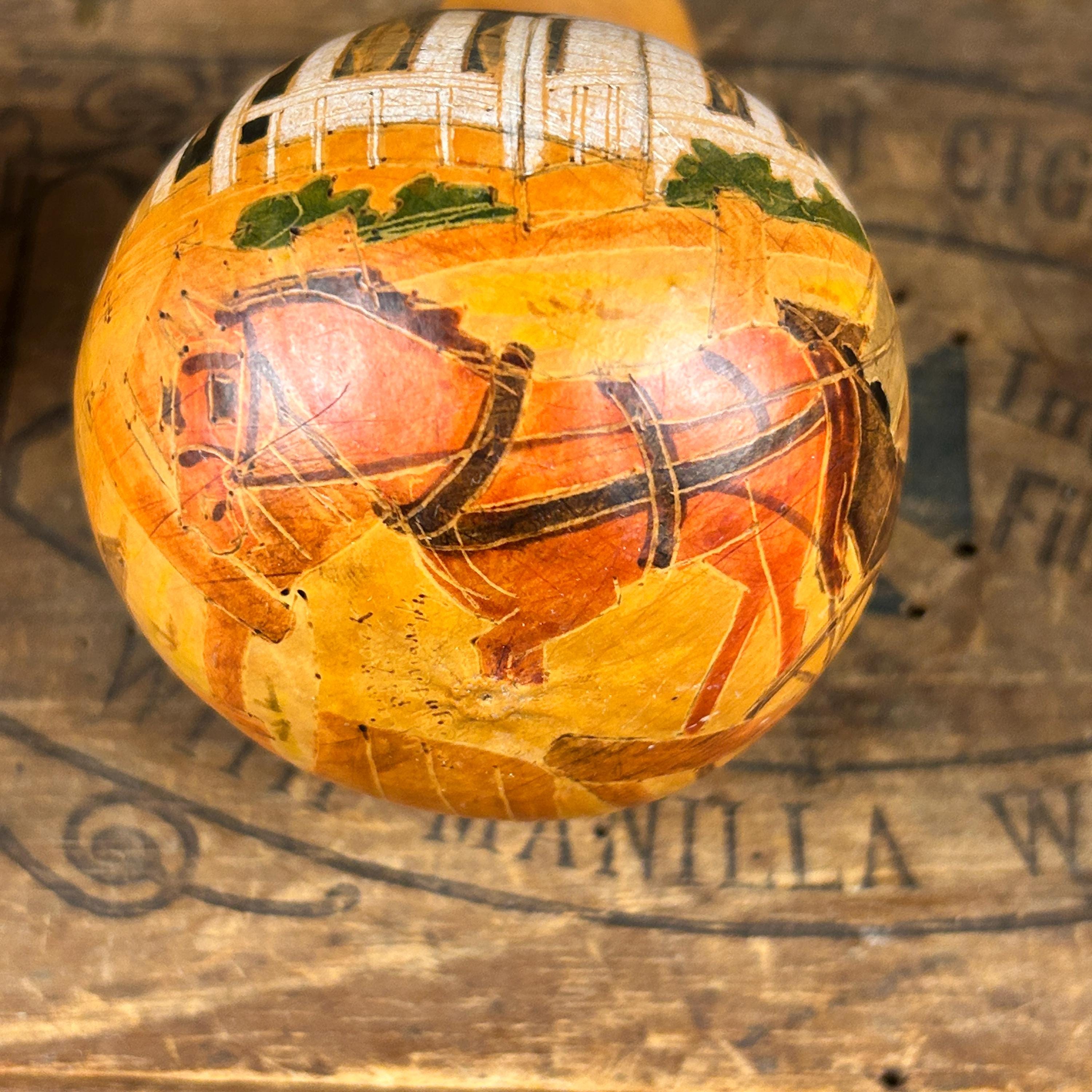 Beautifully hand-carved and stained Farmhouse Scene small Peruvian Folk Art Rattle