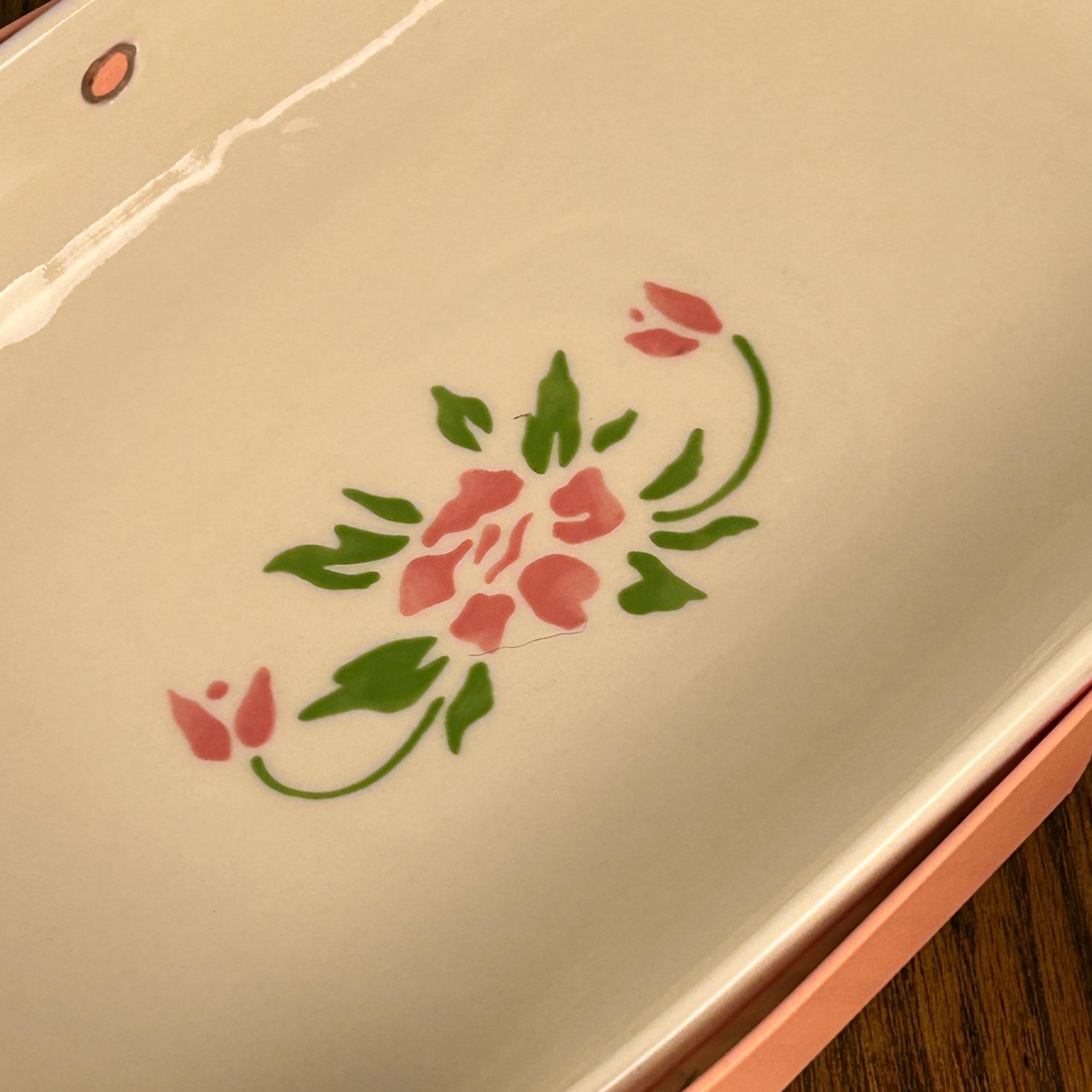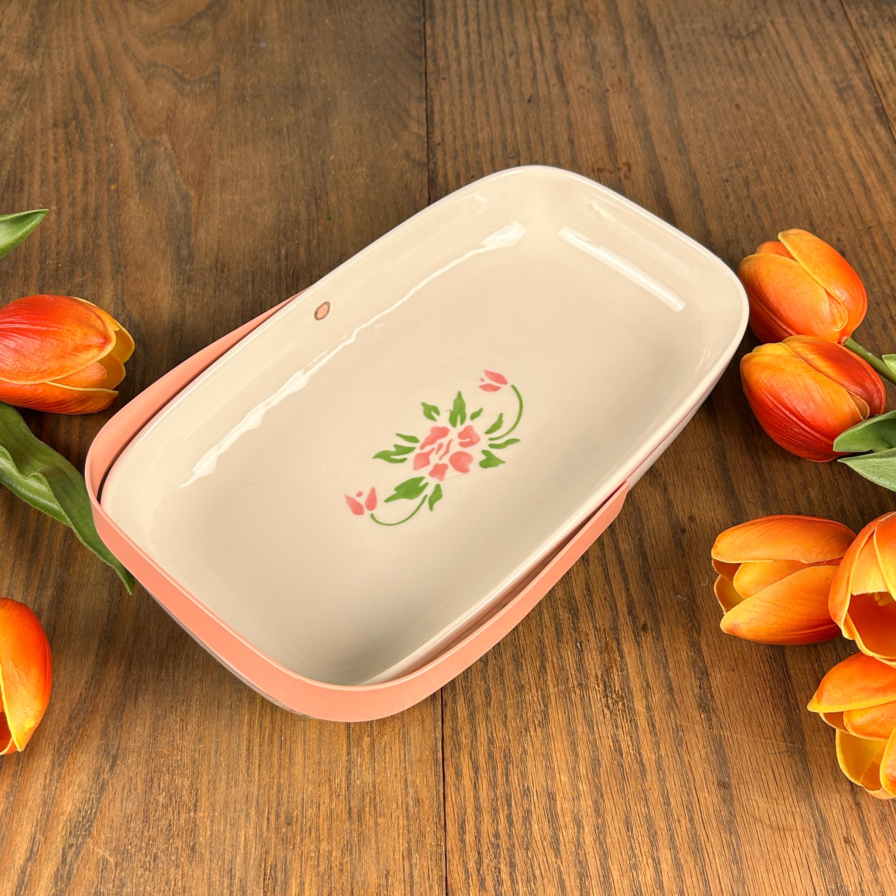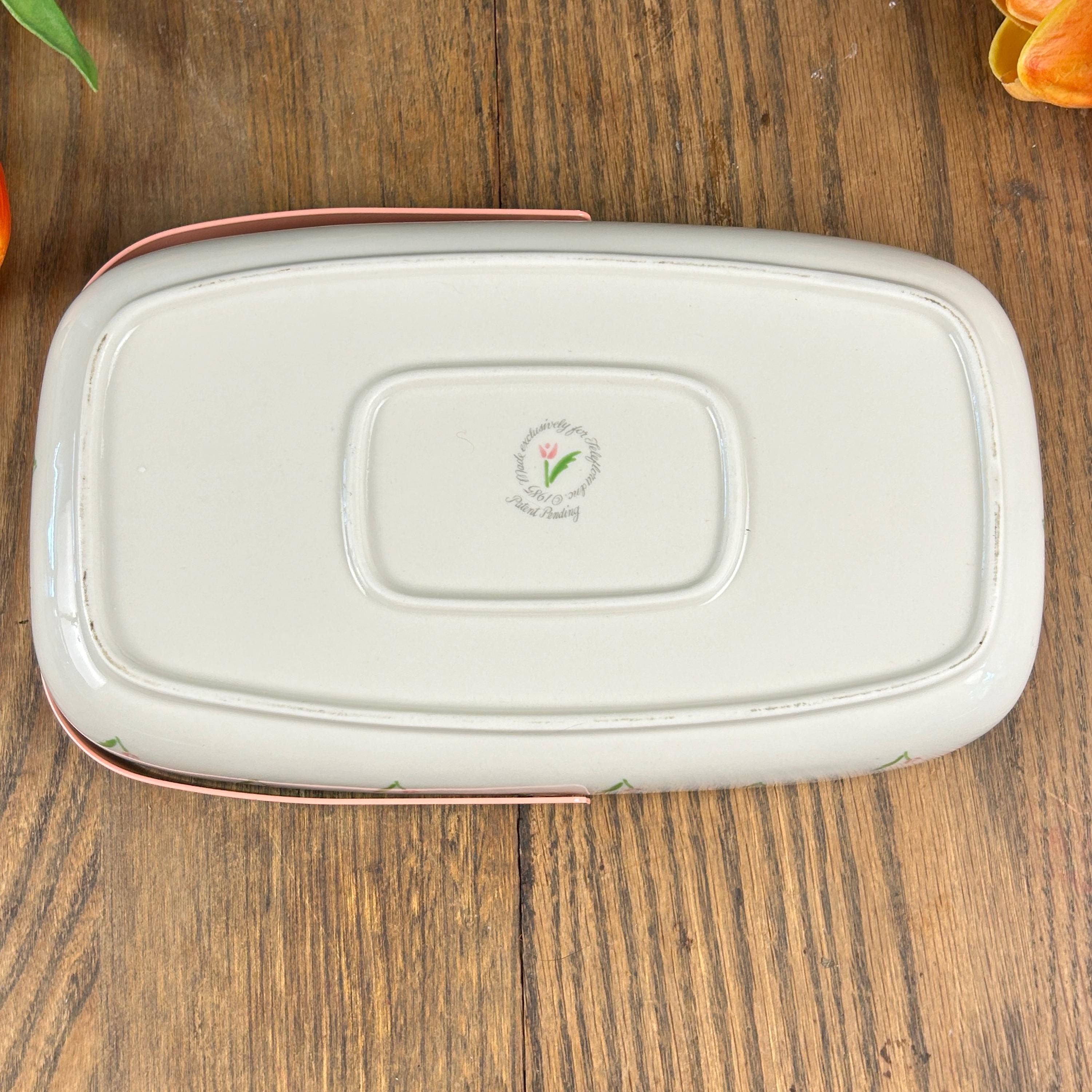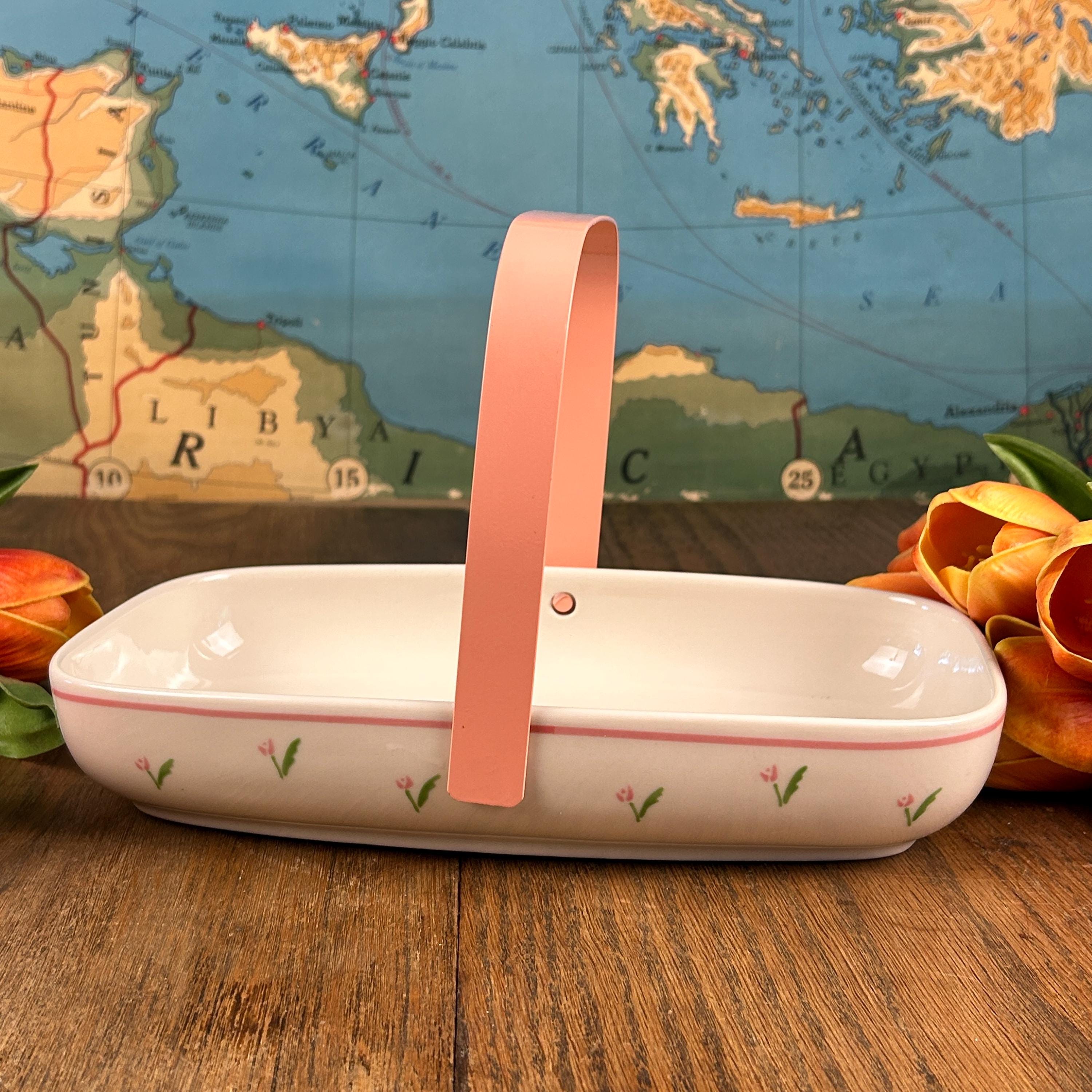 This adorable 1980s vintage Teleflora Planters Basket is simple, yet stunning. Simple pink and green flowers adorn the outside and a small pink and green bouquet sits in the middle of the basket.