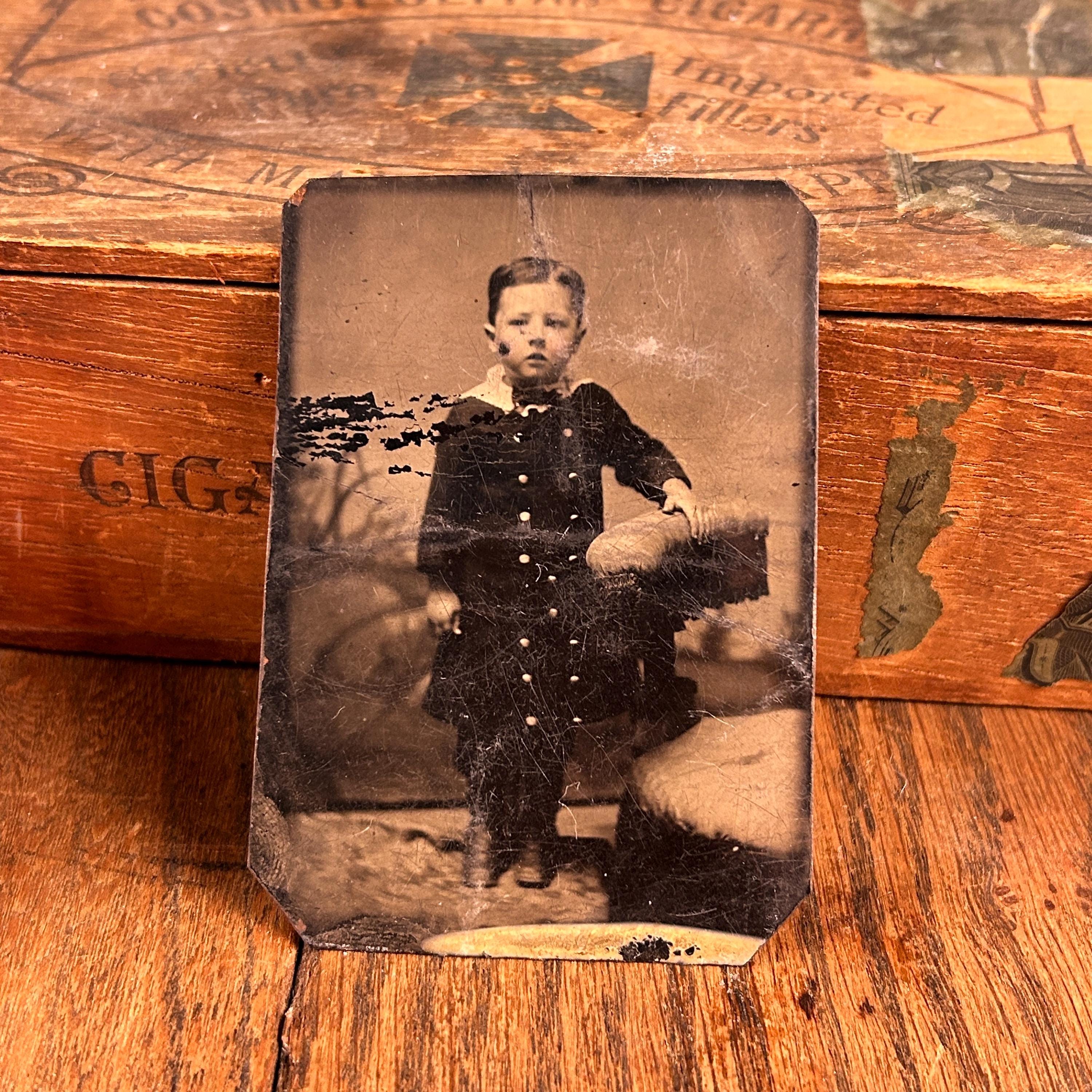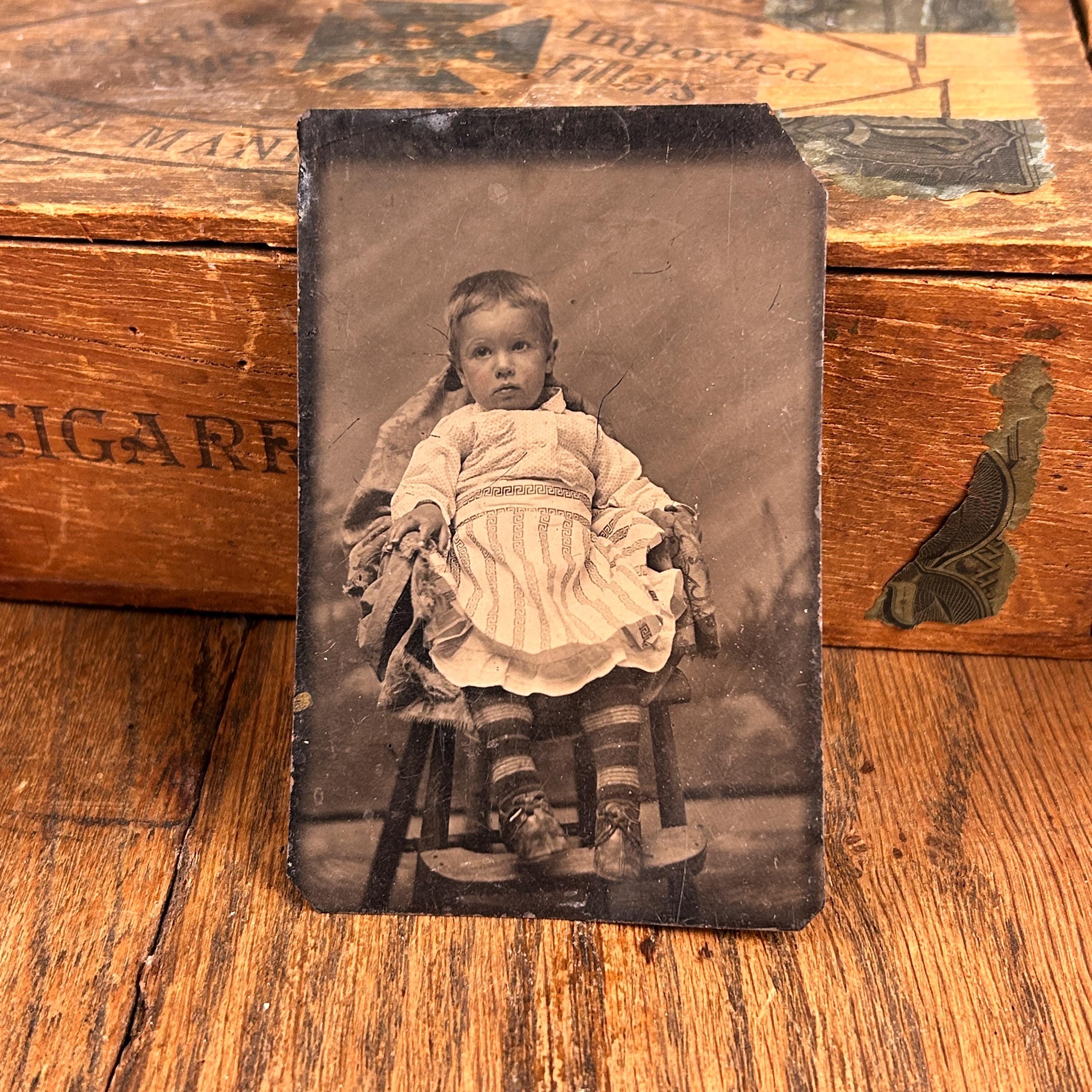 Antique Tintype Photographs of Children - Each measuring approximately 3 1/2" x 2 1/2".