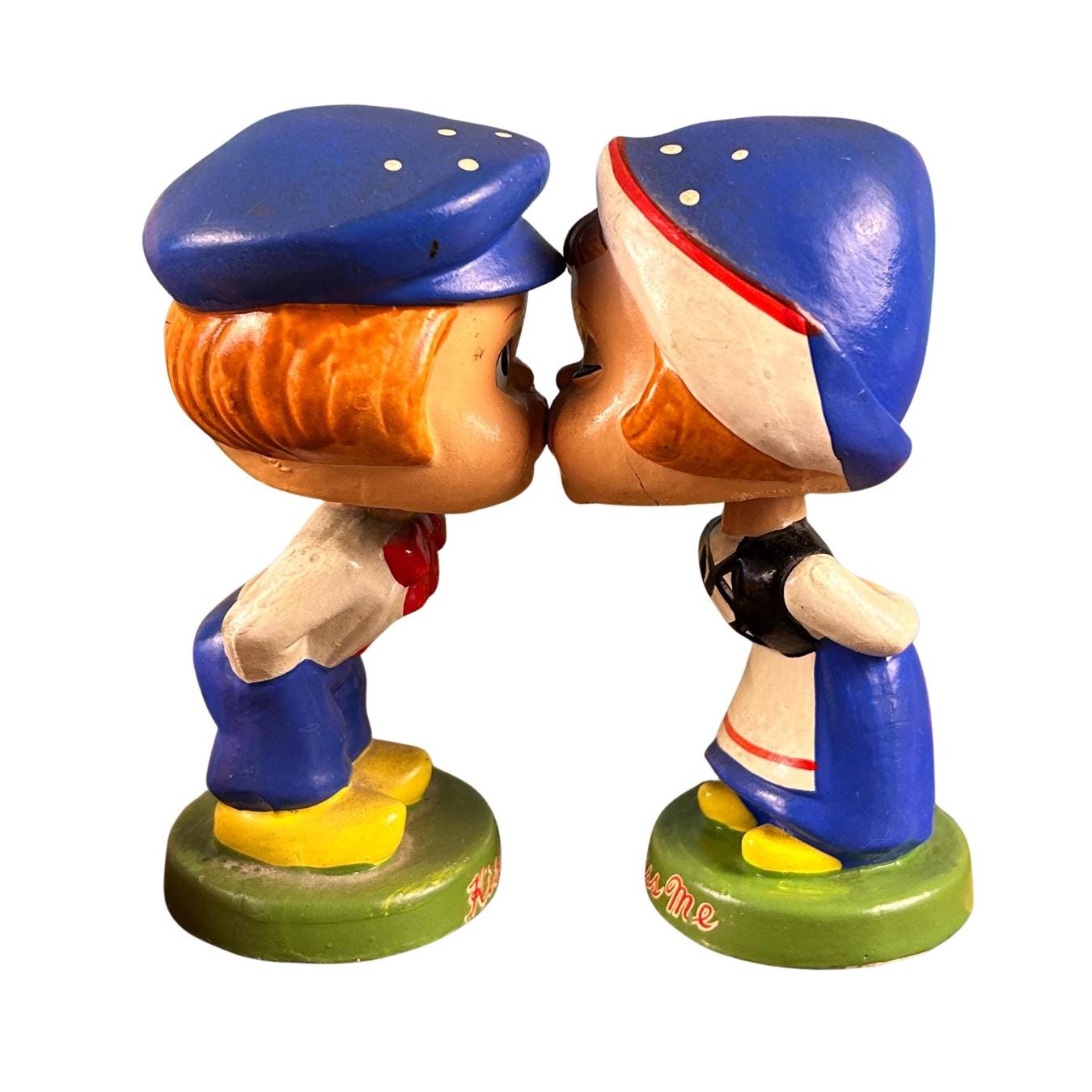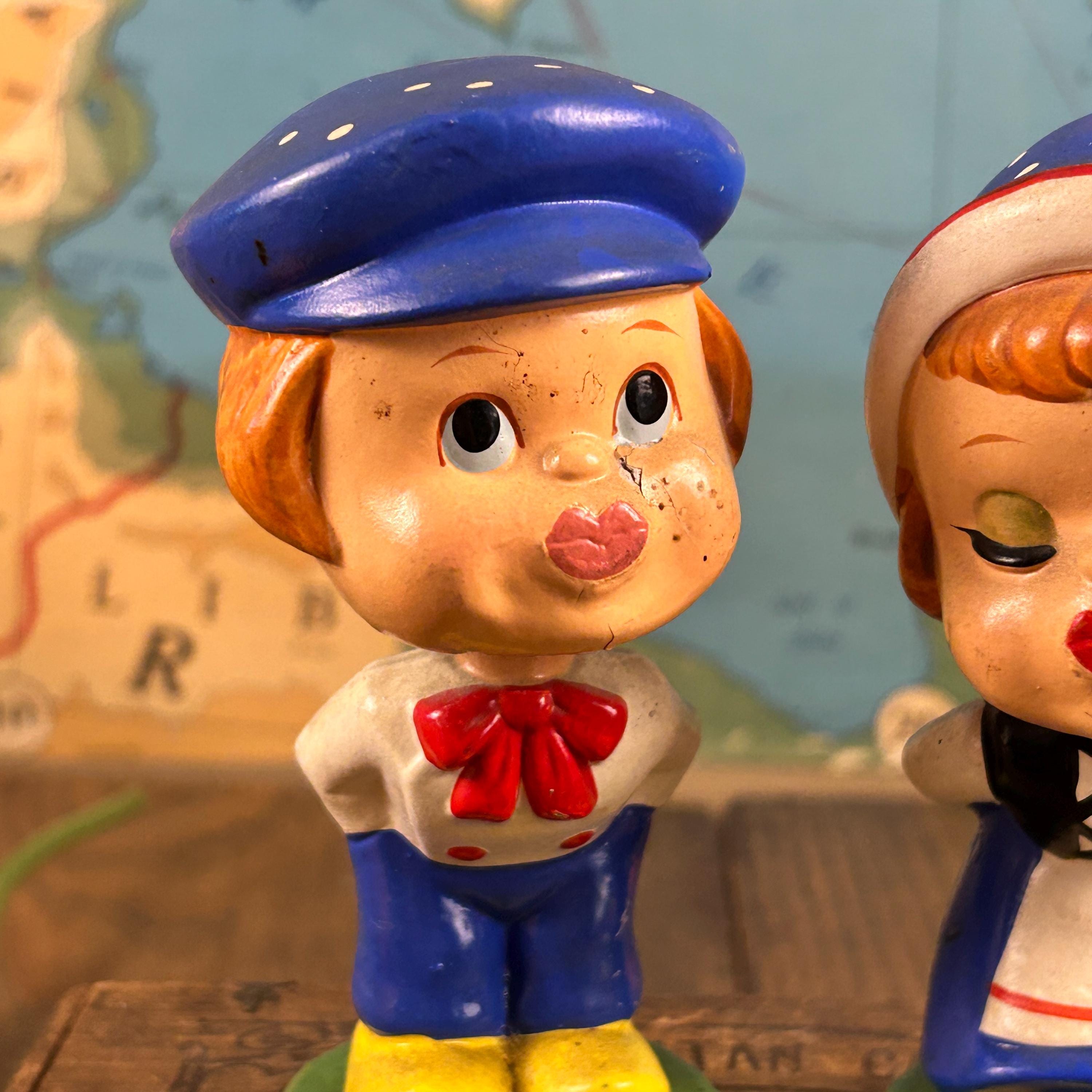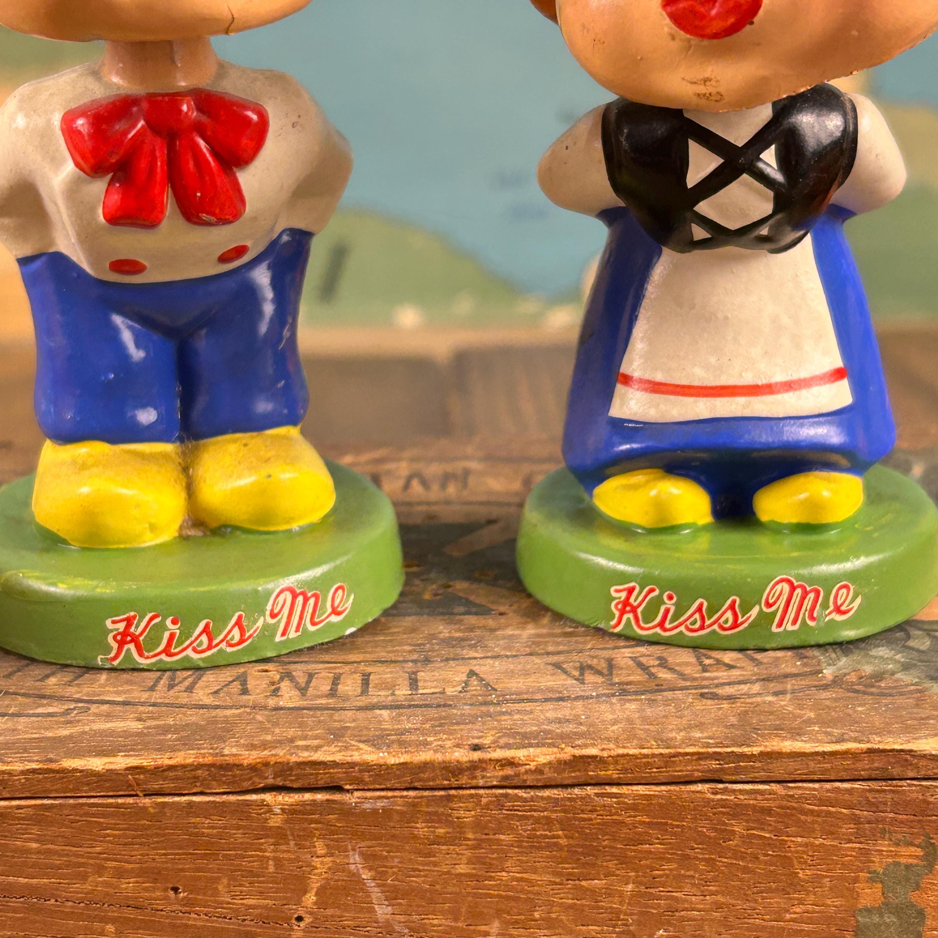 Wonderful NORCREST vintage paper mache KISS ME kissing boy and girl Nodder bobble head pair!! Adorable!