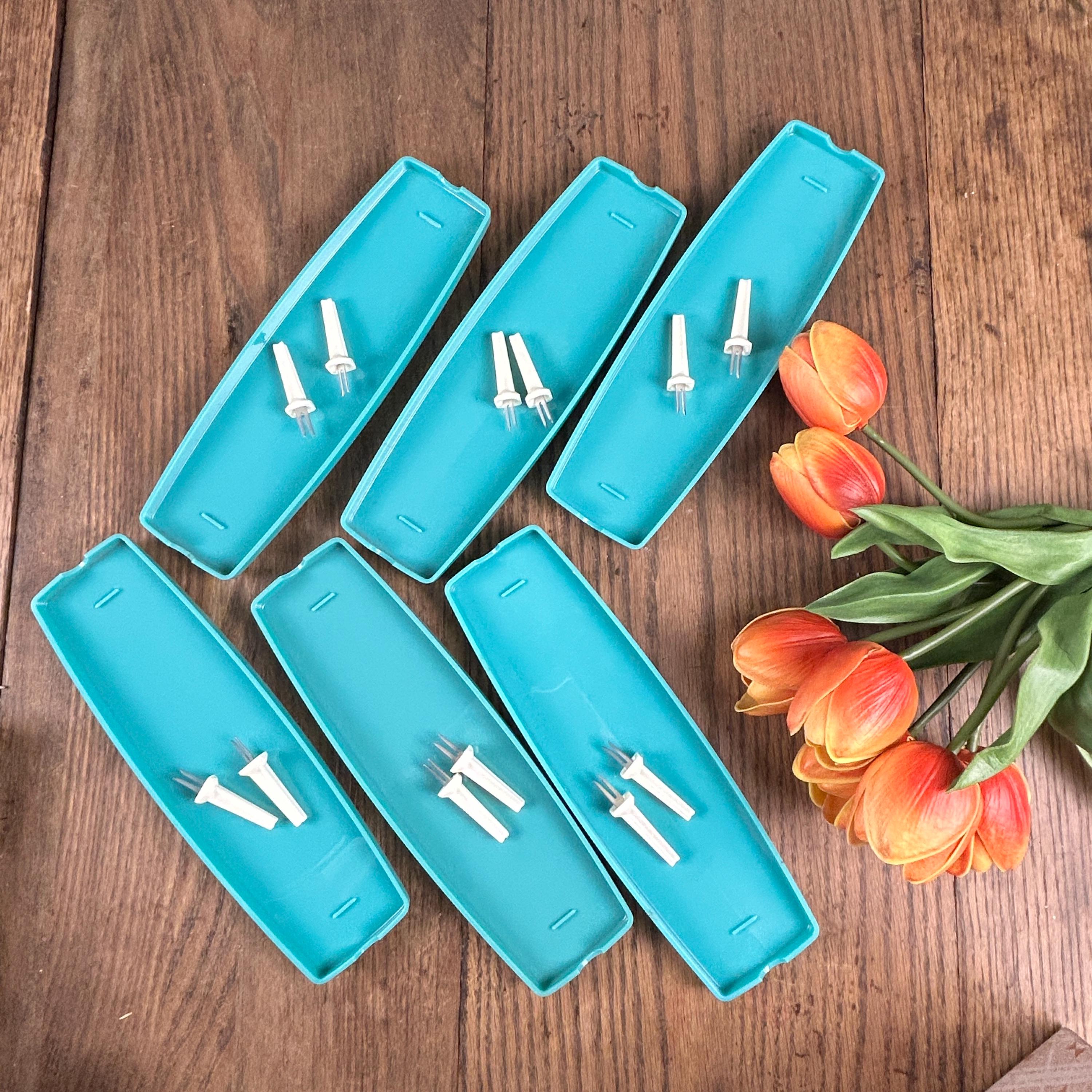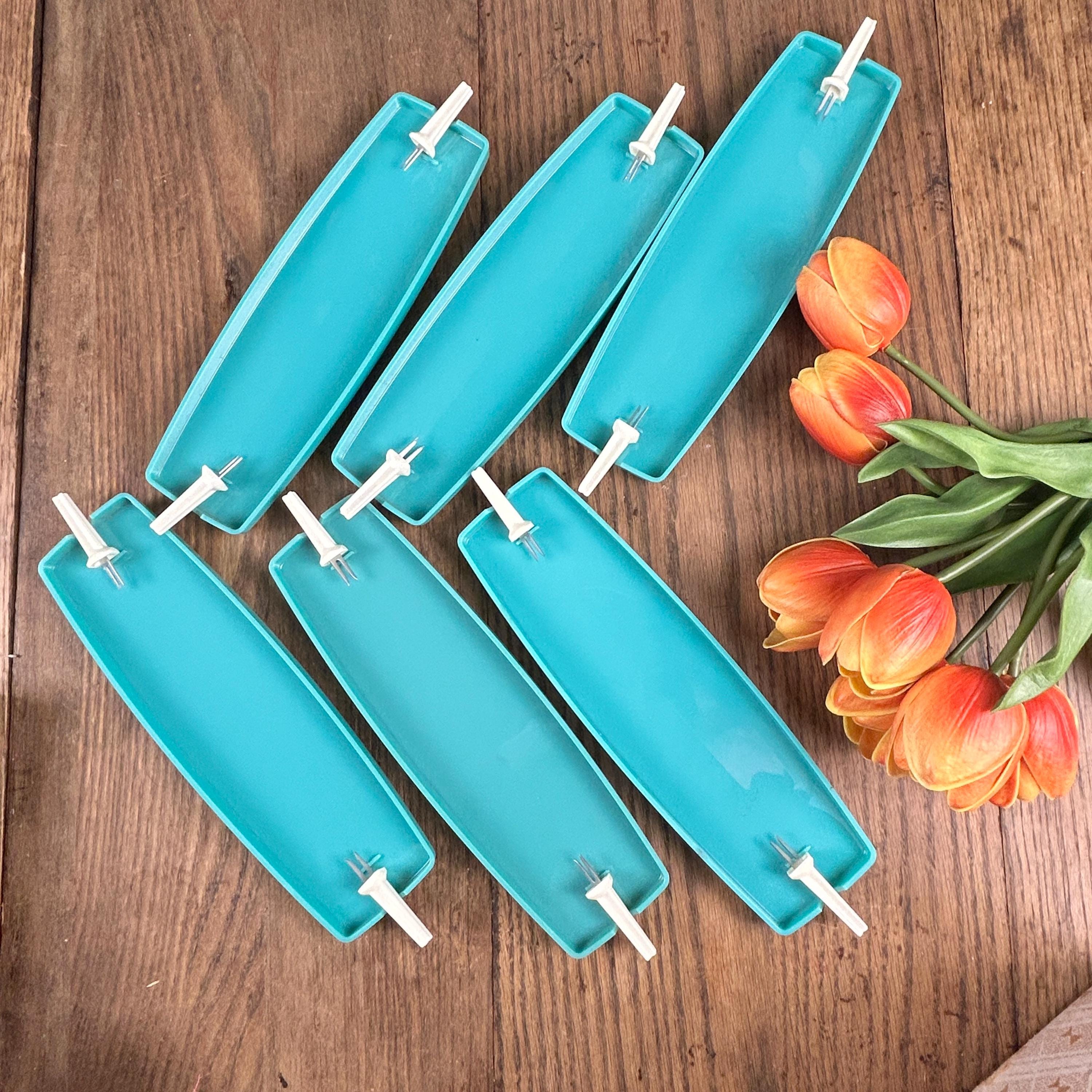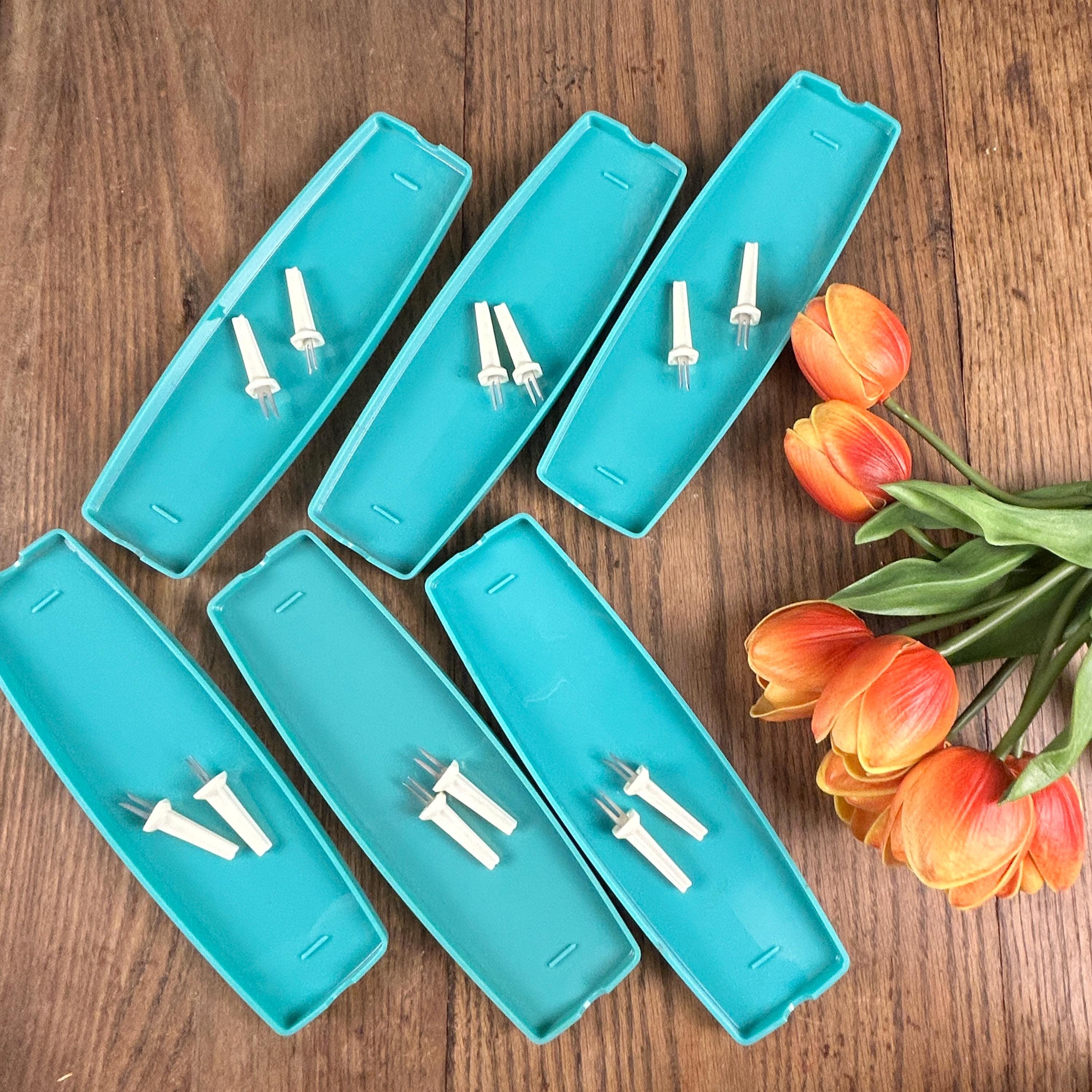 Produced in St.Paul, Minnesota, possibly in the late 70s or early 80s, each tray measures 10" x 3" and the corn pokers measure 2 1/4" each. The style scream mid century, although I think these were made at a later date according to the history of the company. Definitely one-of-a-kind find and they come in the original packaging.