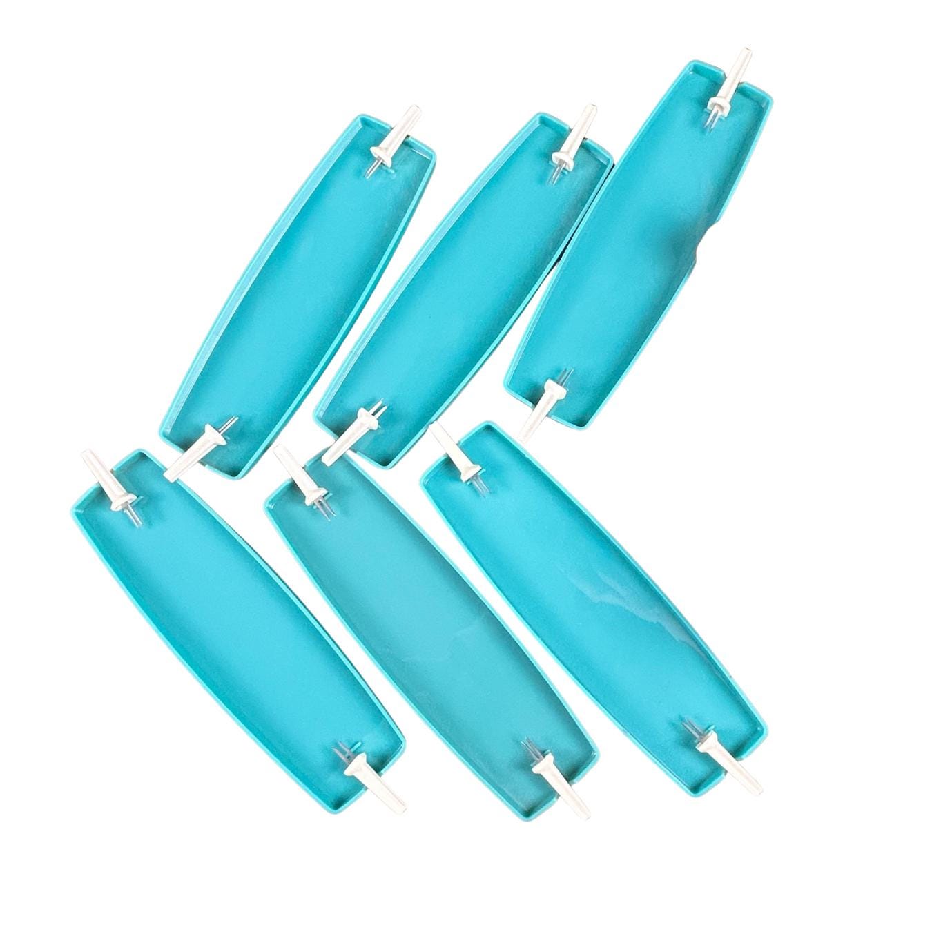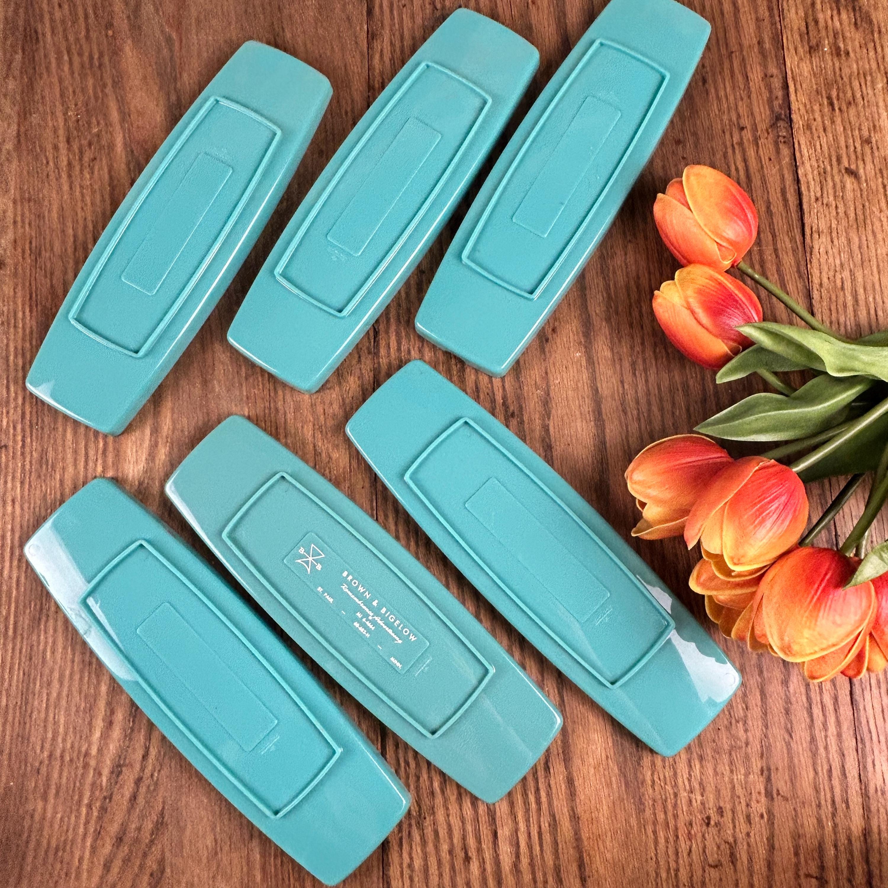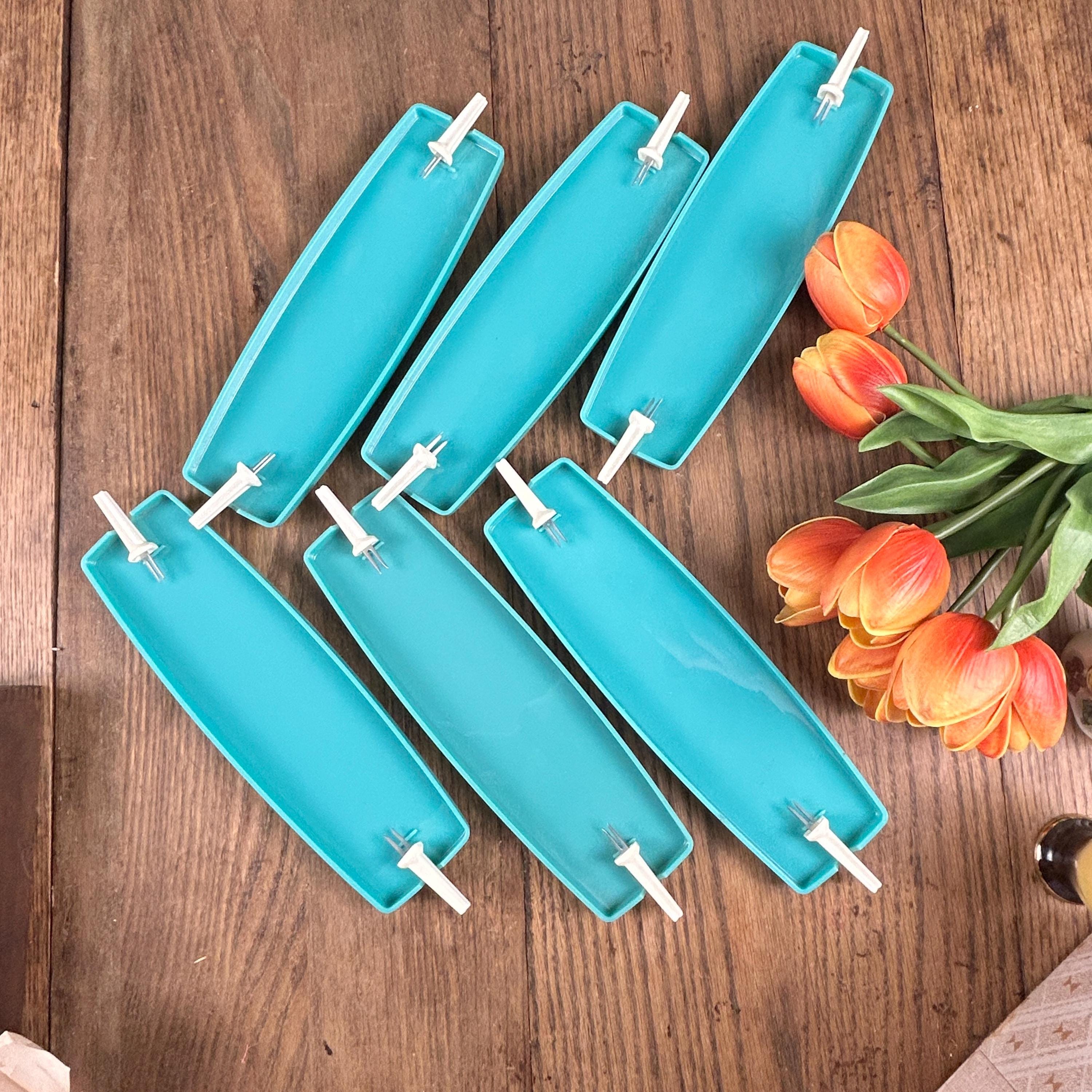Produced in St.Paul, Minnesota, possibly in the late 70s or early 80s, each tray measures 10" x 3" and the corn pokers measure 2 1/4" each. The style scream mid century, although I think these were made at a later date according to the history of the company. Definitely one-of-a-kind find and they come in the original packaging.