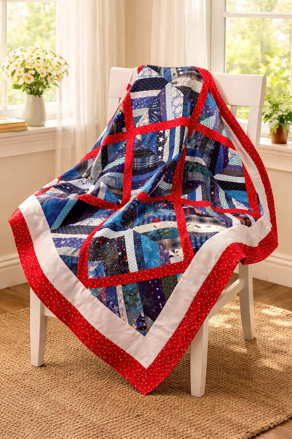 Throw it over a chair on the porch for 4th of July! Would be beautiful on an old rocking chair!