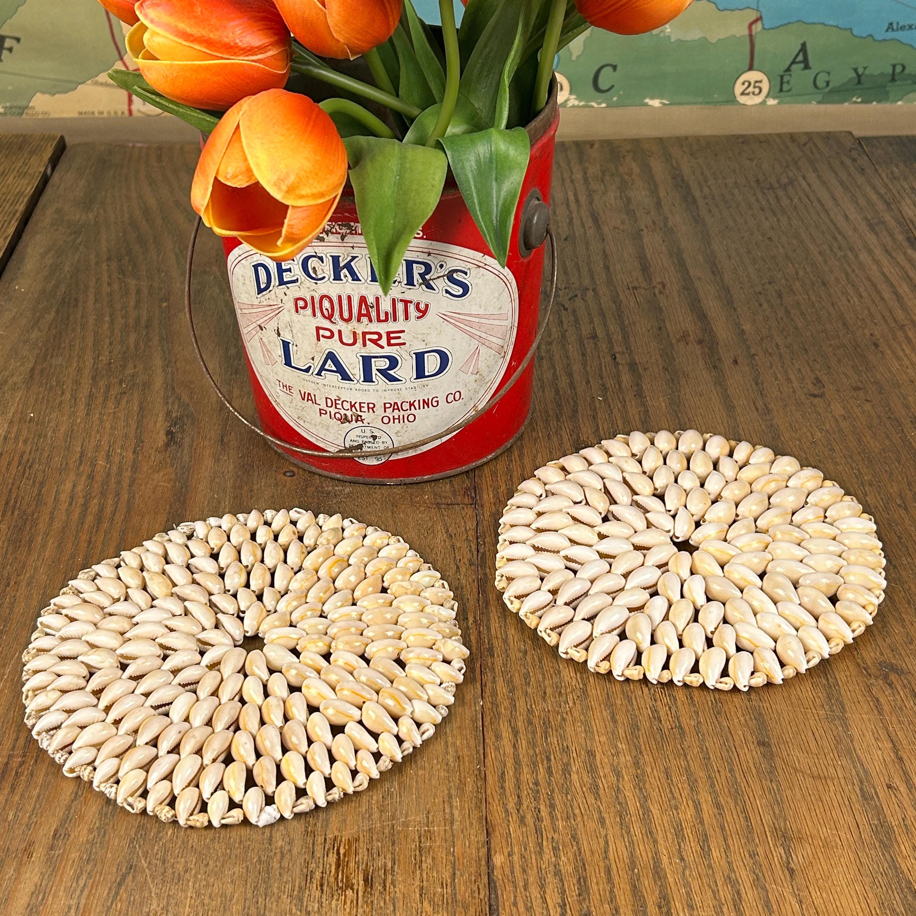 Perfect as a gift or as a distinctive accent for your own home, these vintage shell trivets celebrate the artistry of handmade decor from decades past.