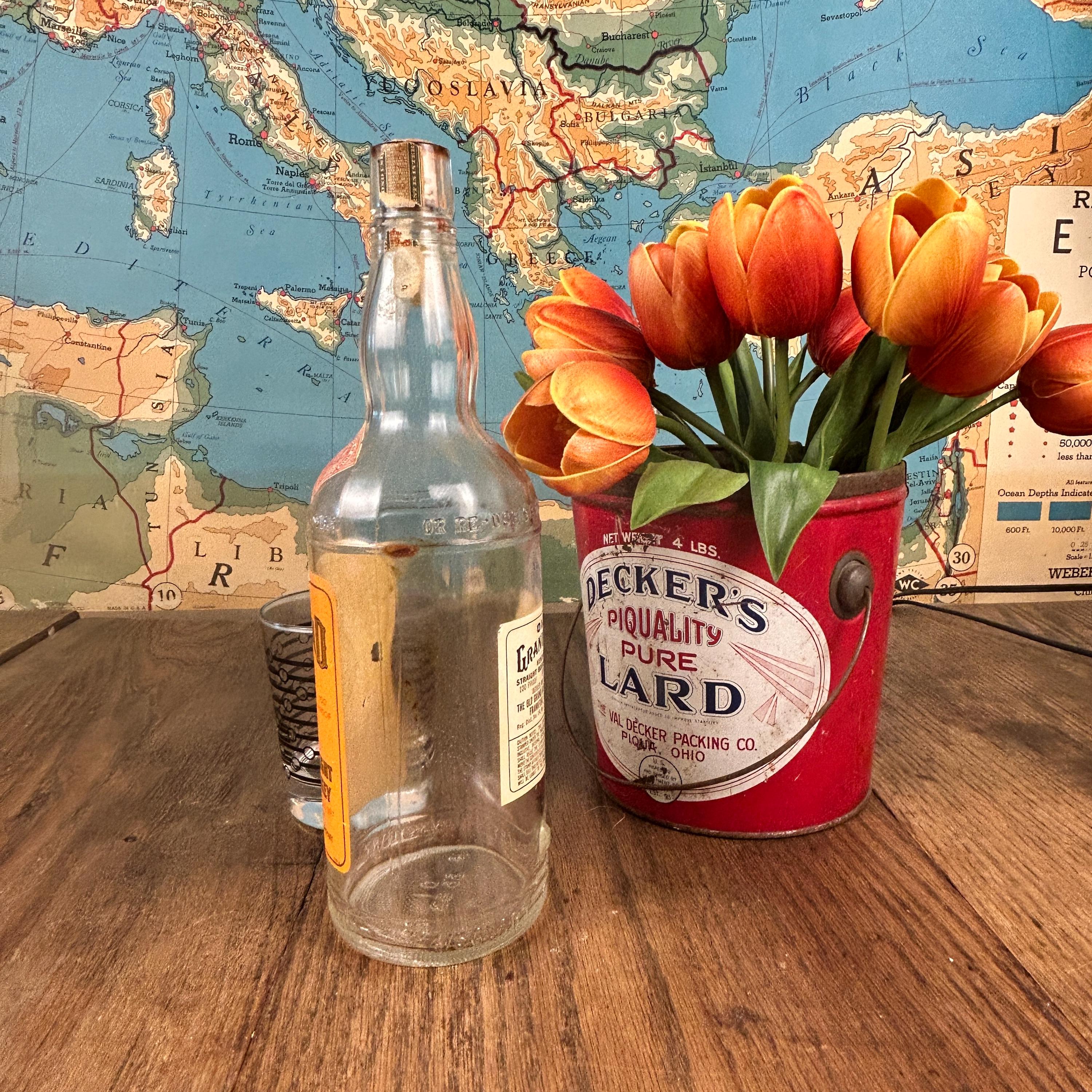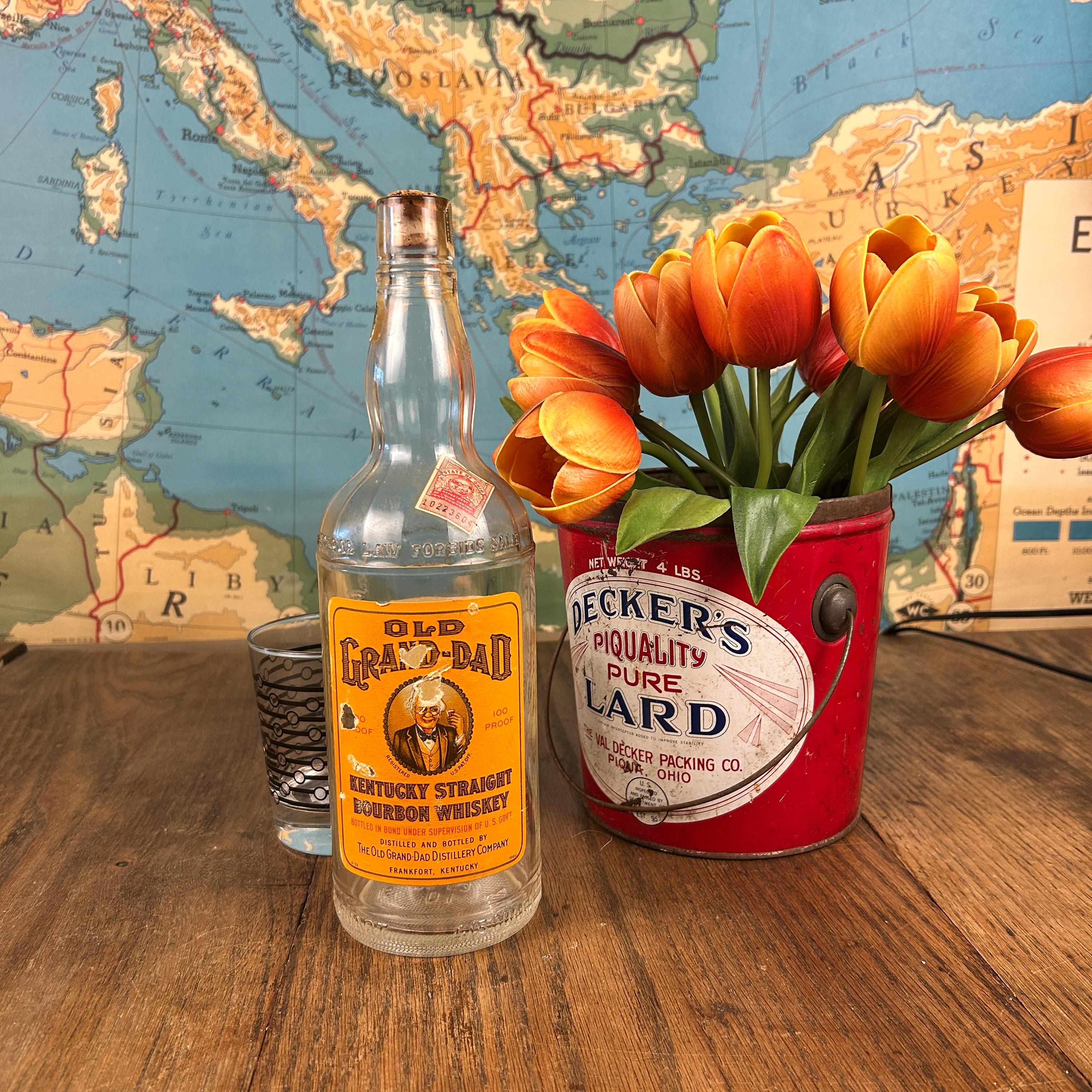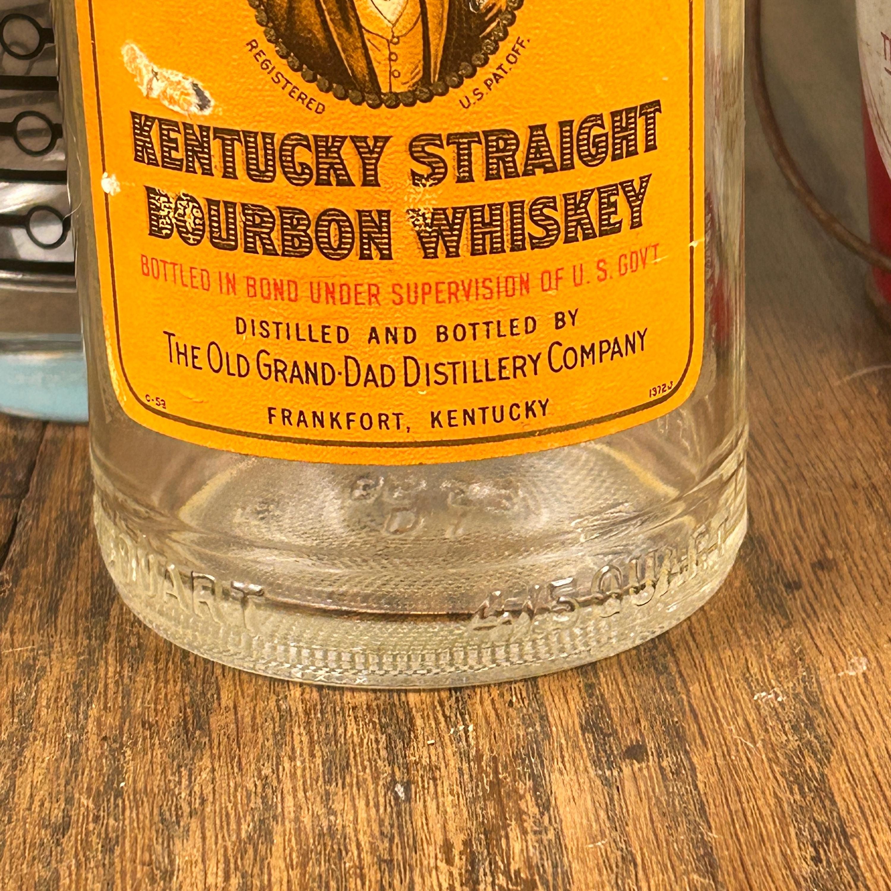 Bottles marked with "4/5 quart" are typically older, reflecting the packaging standards of the mid-20th century, such as the Old Grand-Dad bottles from the 1950s, 60s, and 70s.