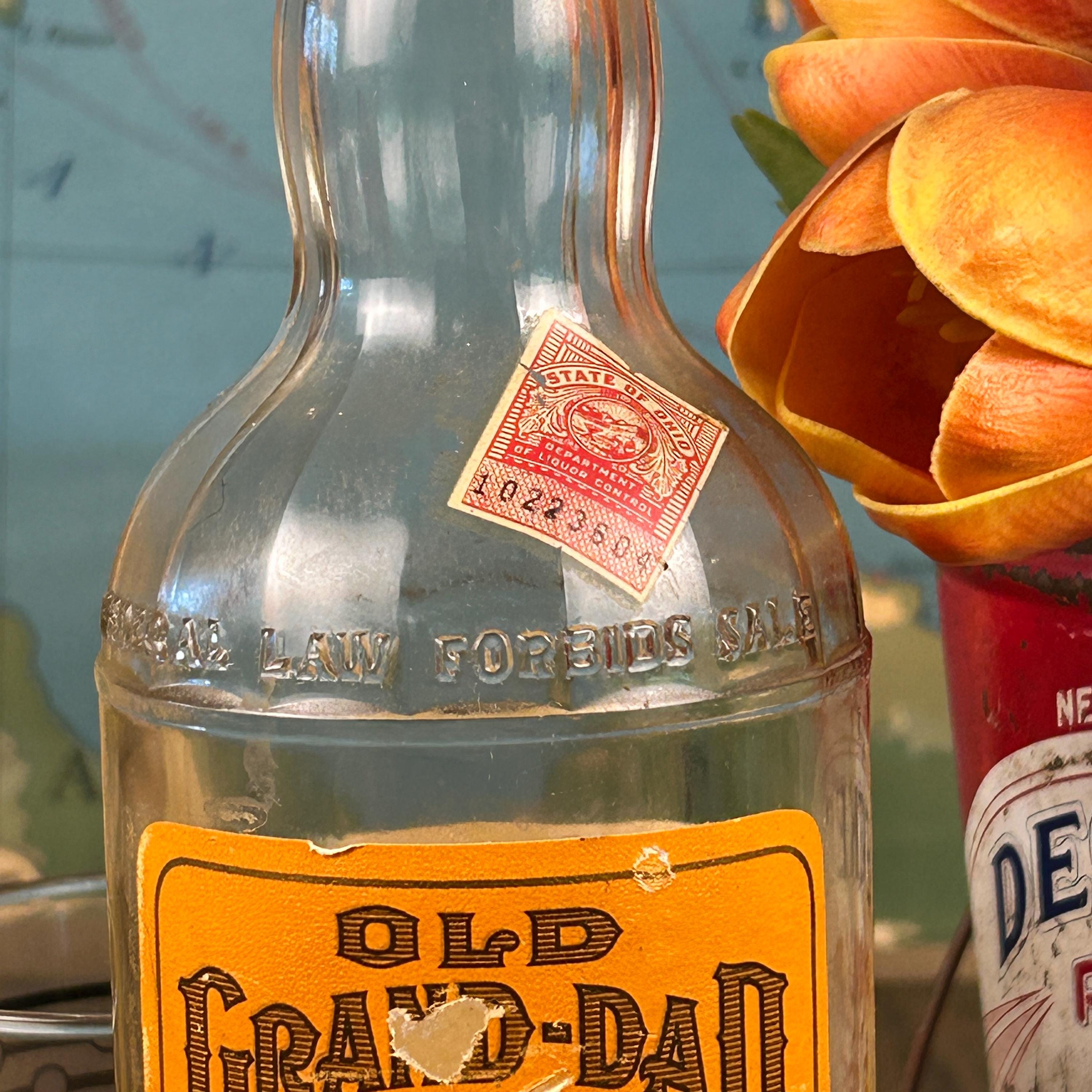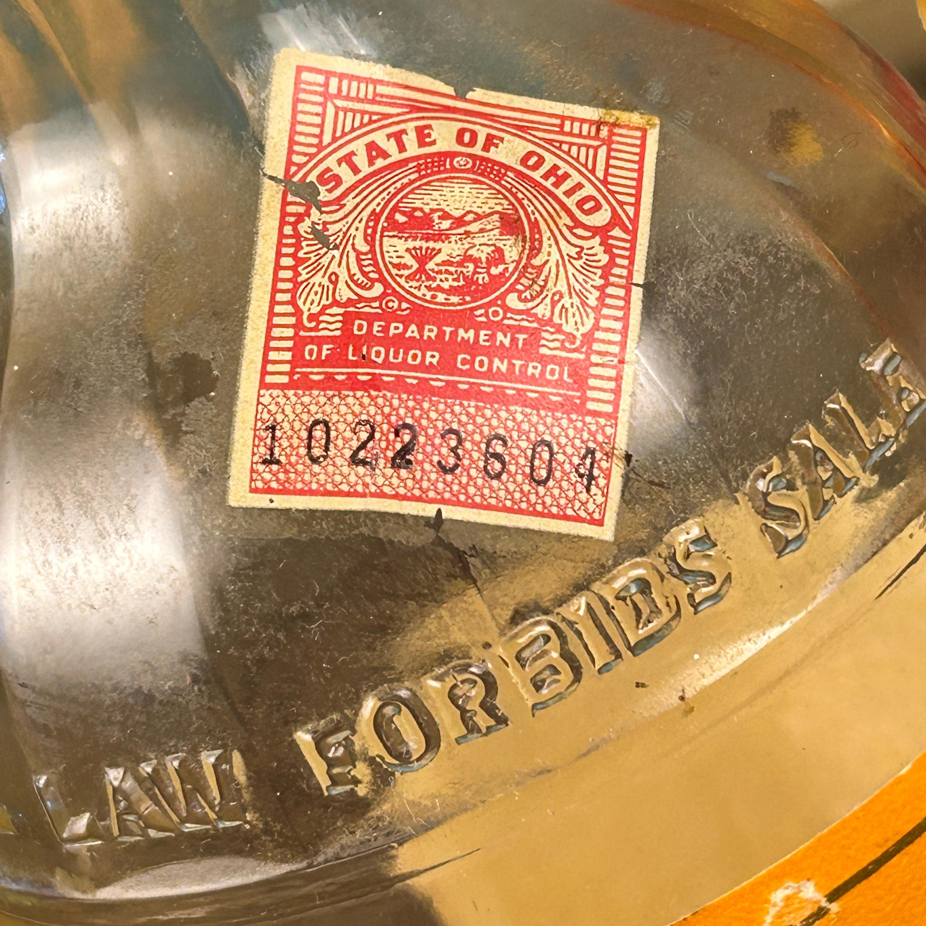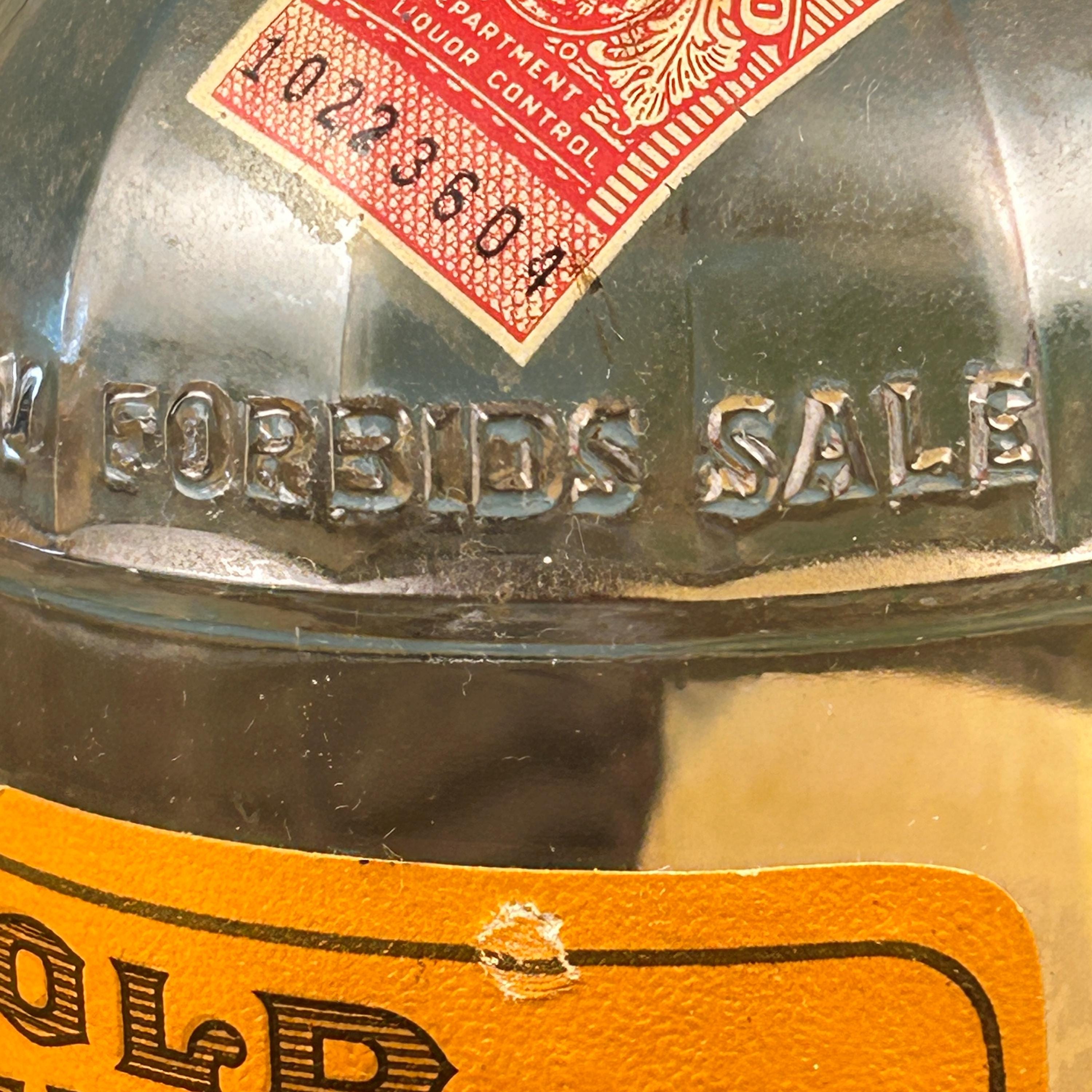 Bottle reads "FEDERAL LAW FORBIDS SALE OR RE-USE OF THIS BOTTLE". This phrase was required on all liquor bottles sold within the United States that were made between 1935 and 1964