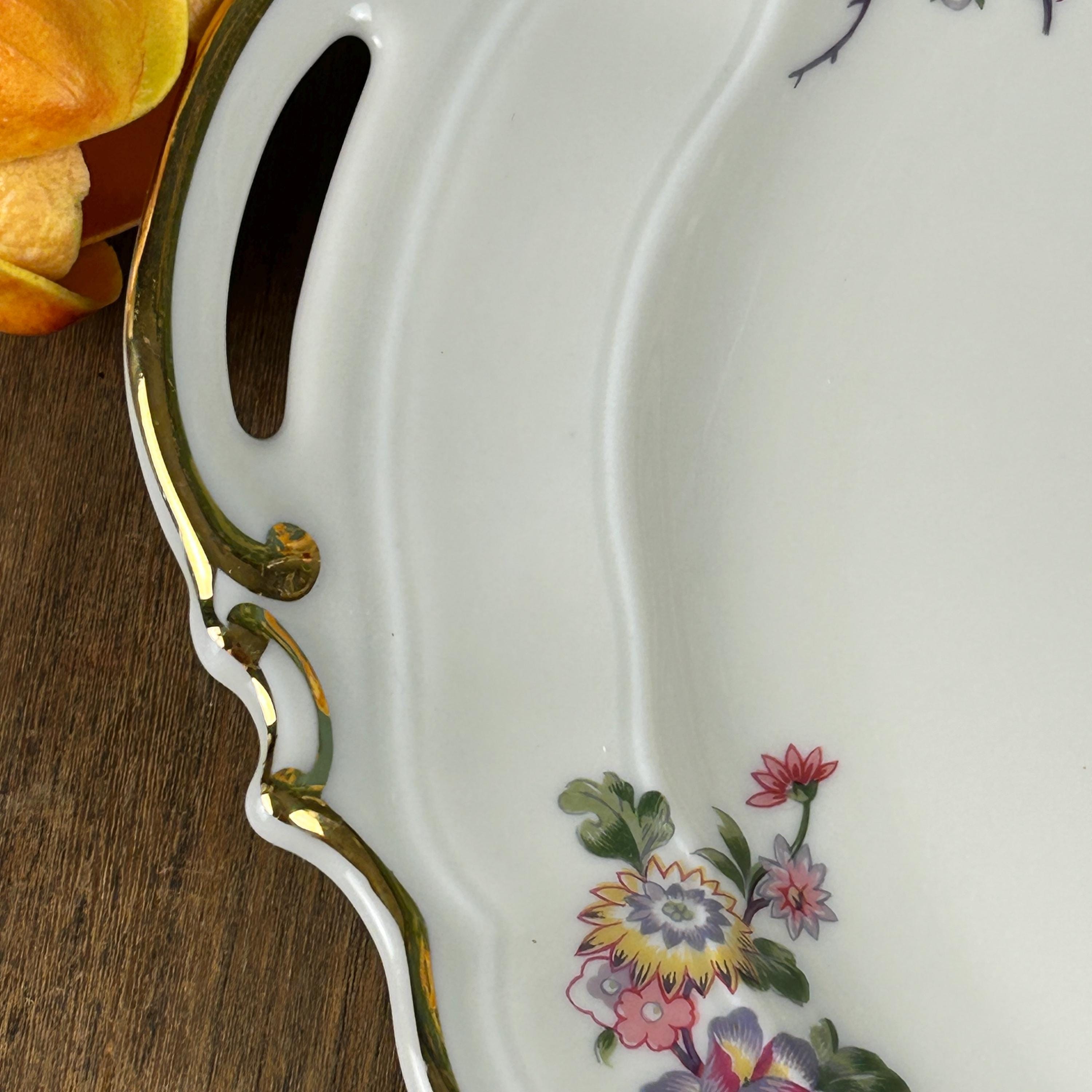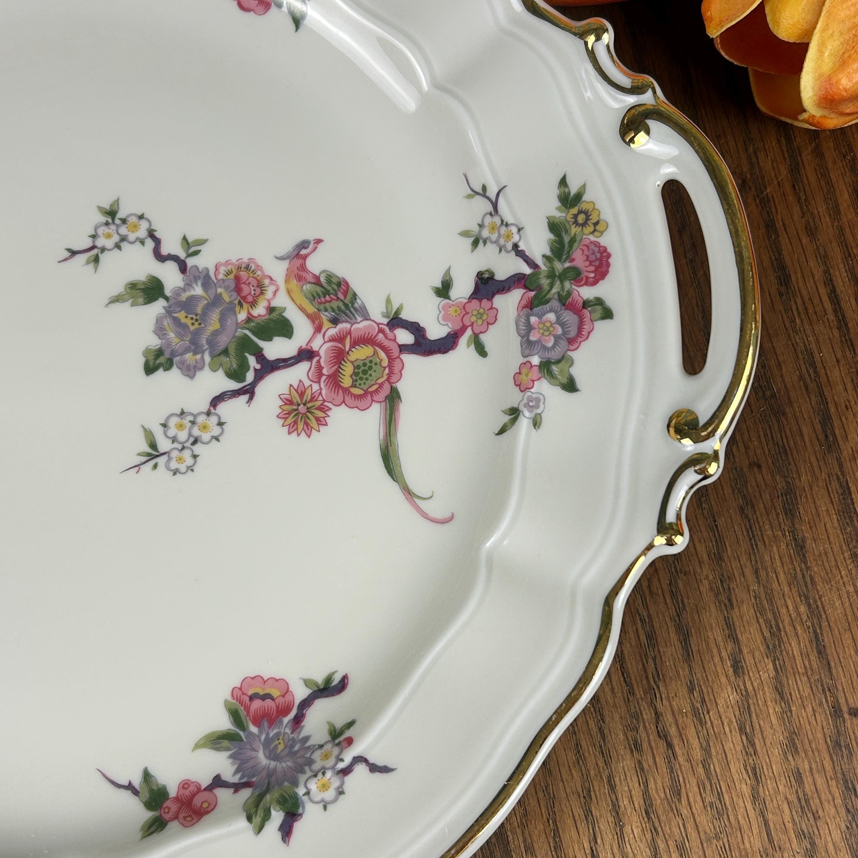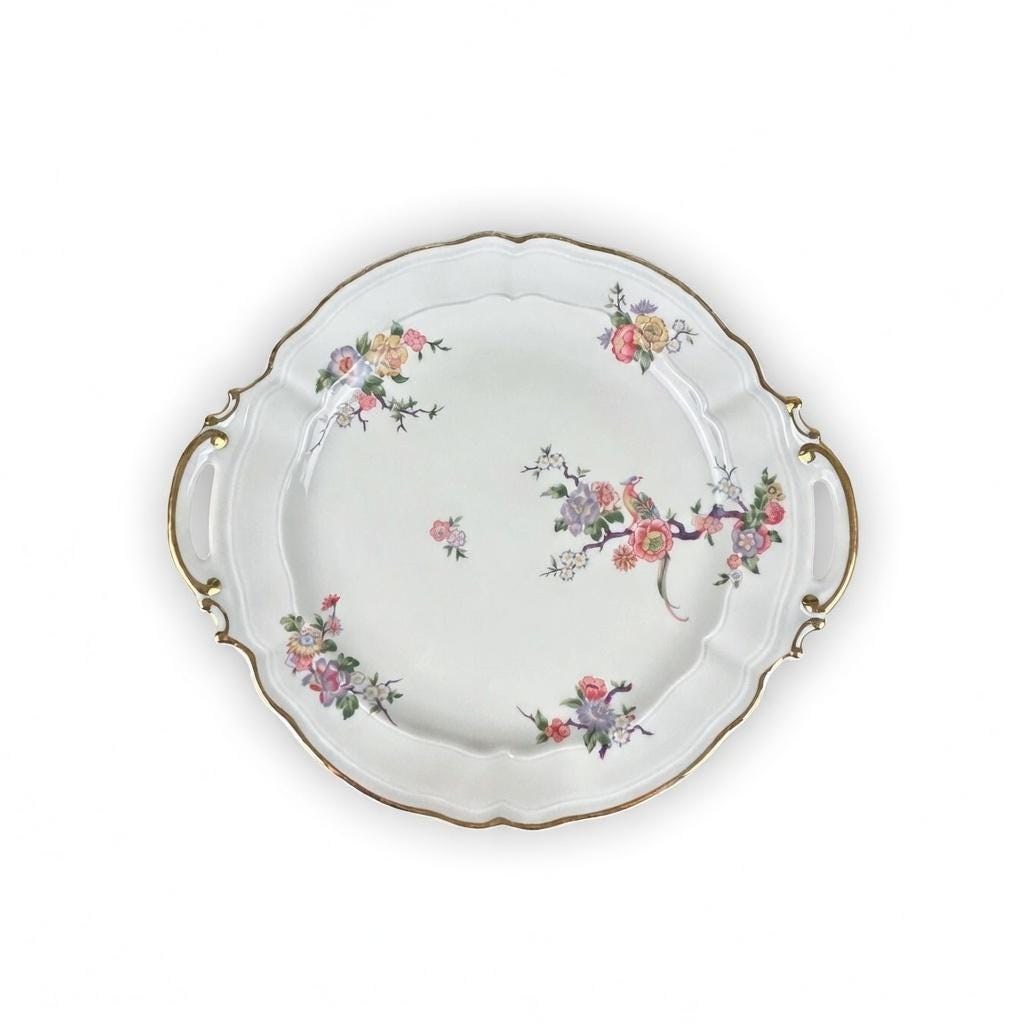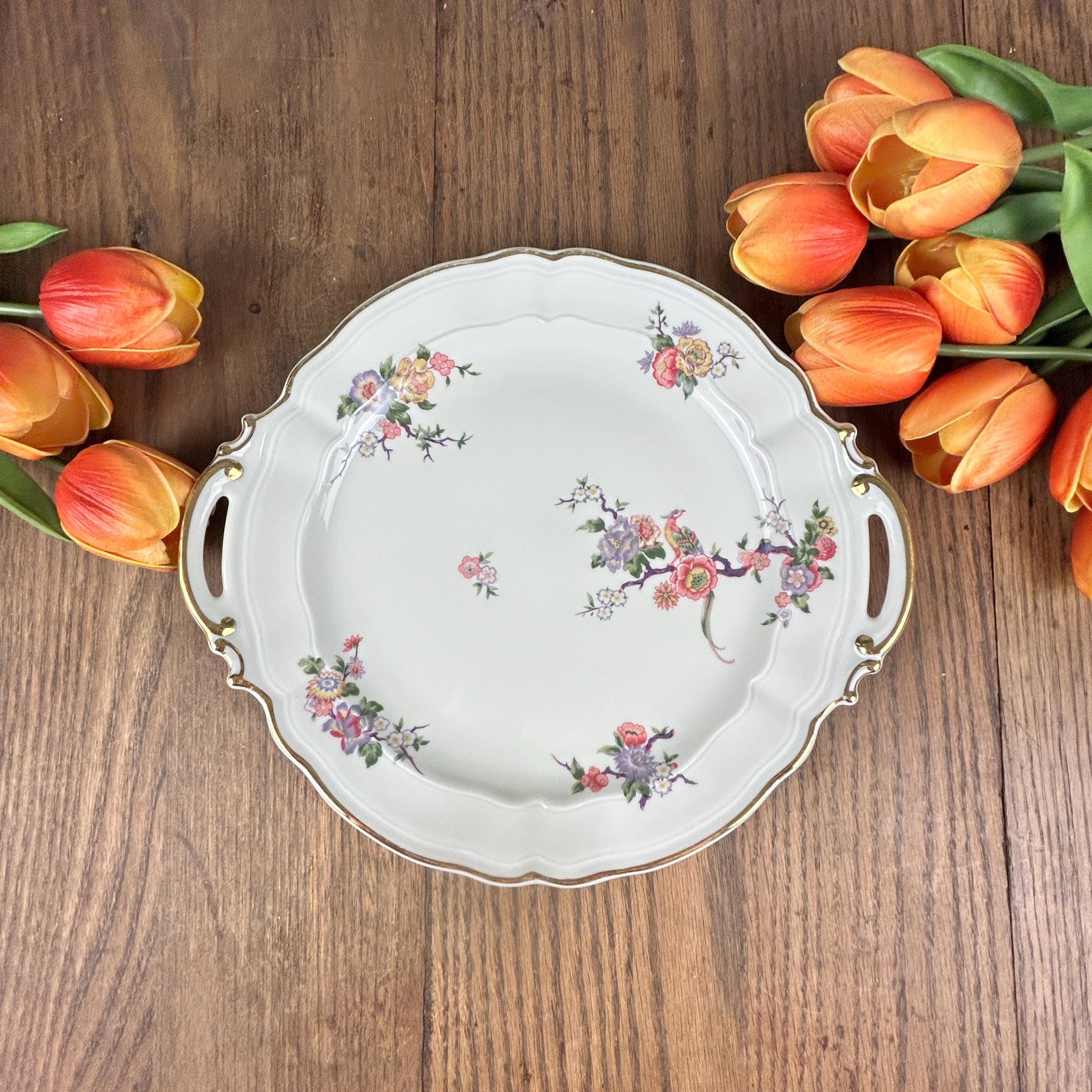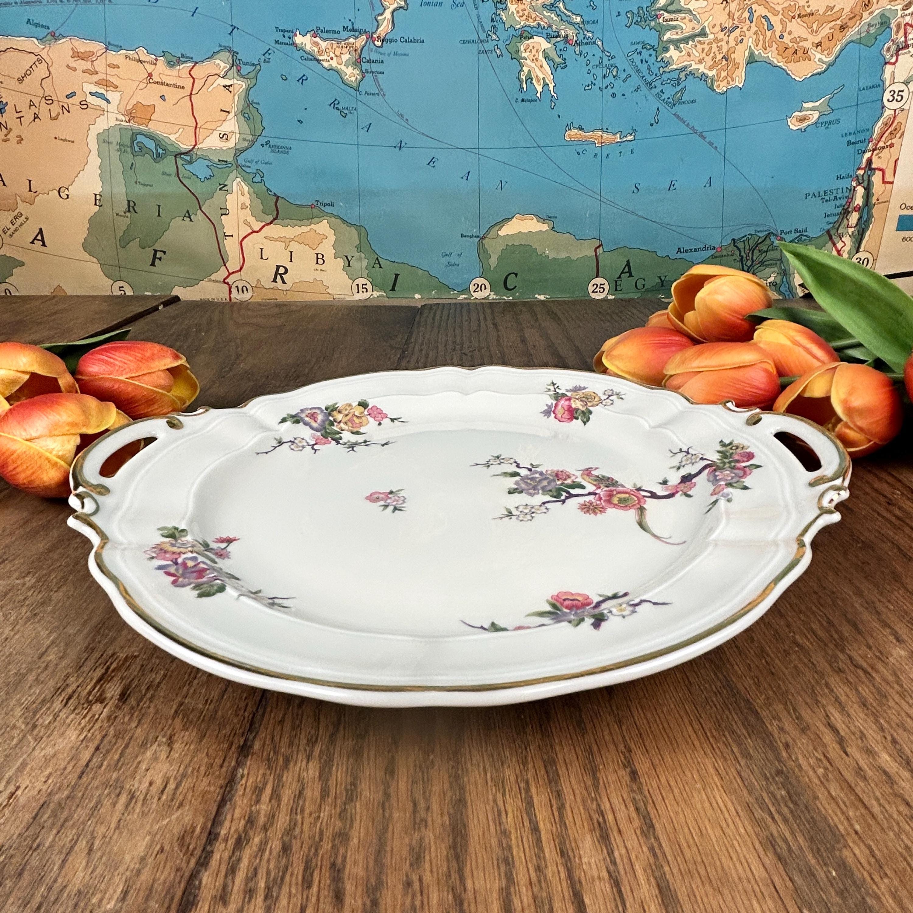 Lovely vintage double-handled cake plate in the Bengali pattern from Limoges, France. Excellent condition with no noticeable surface wear or discoloration- see pictures. Measures approx 10.5"dia.