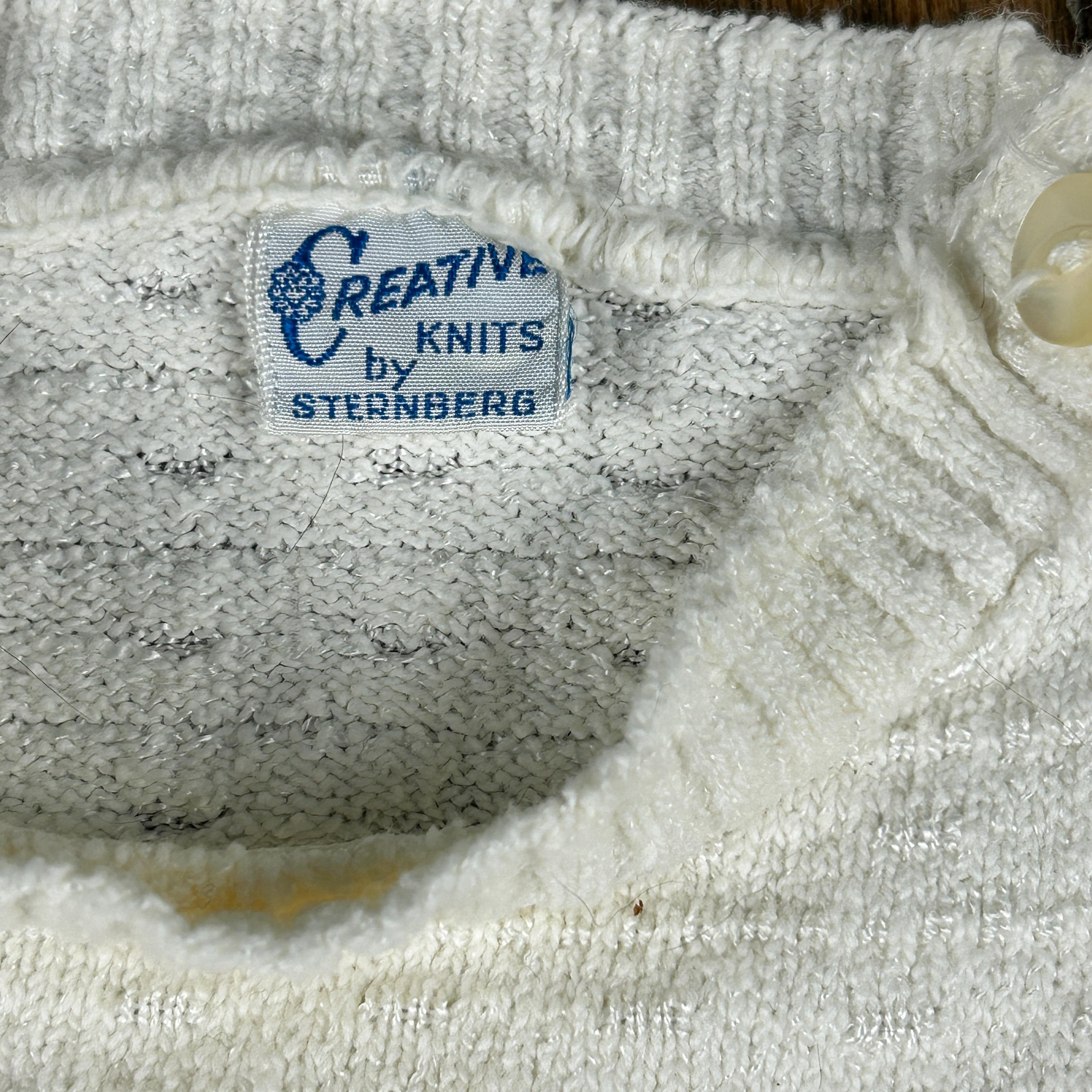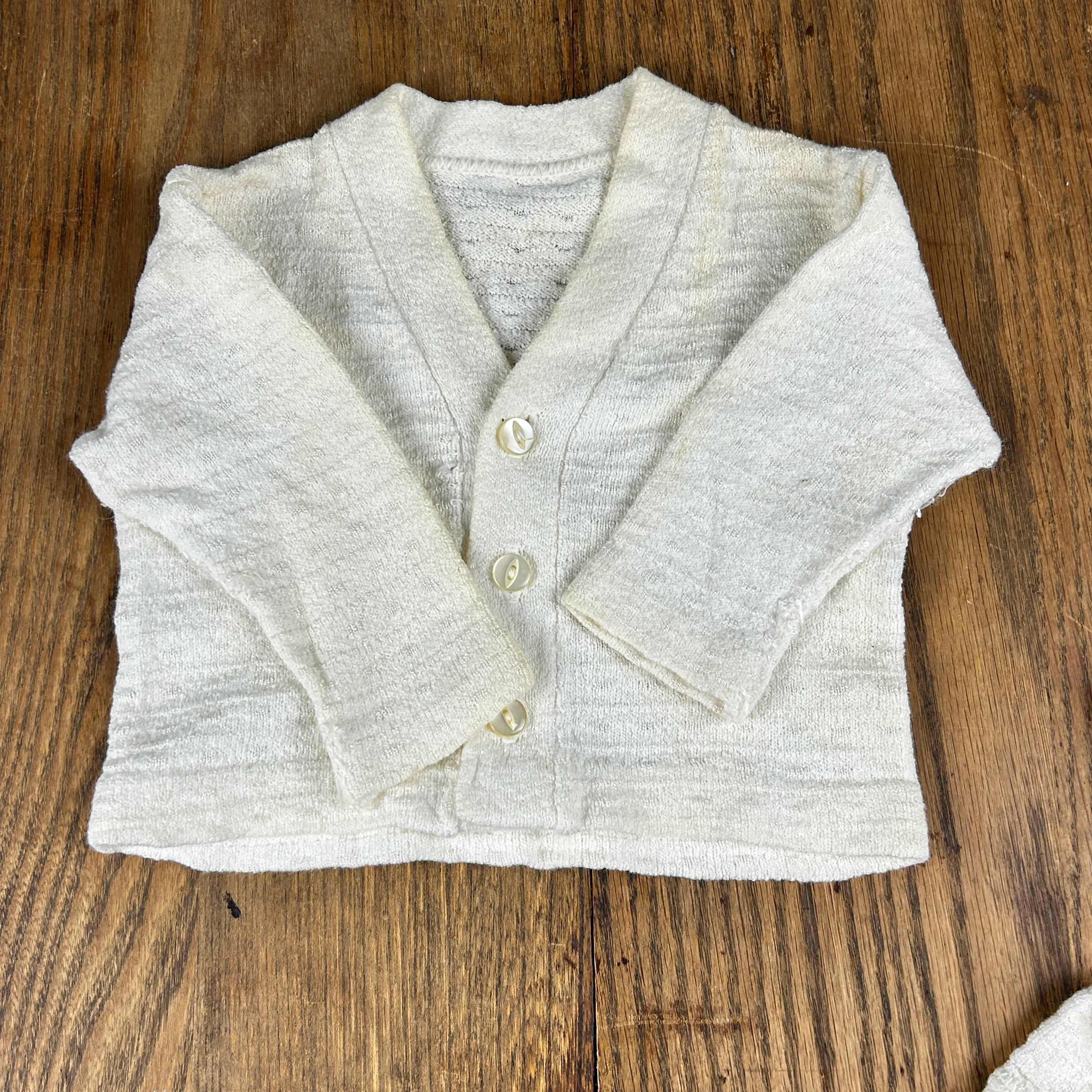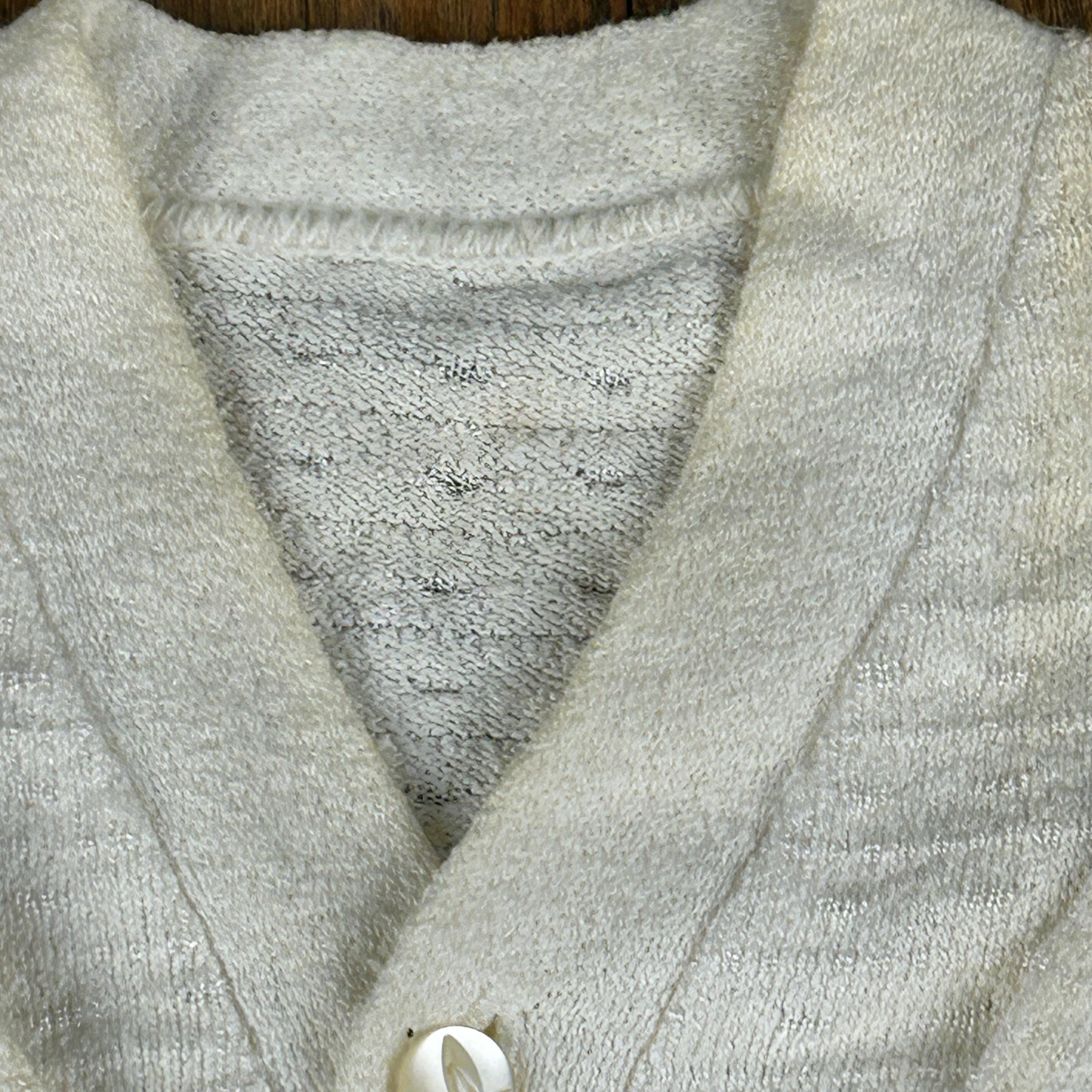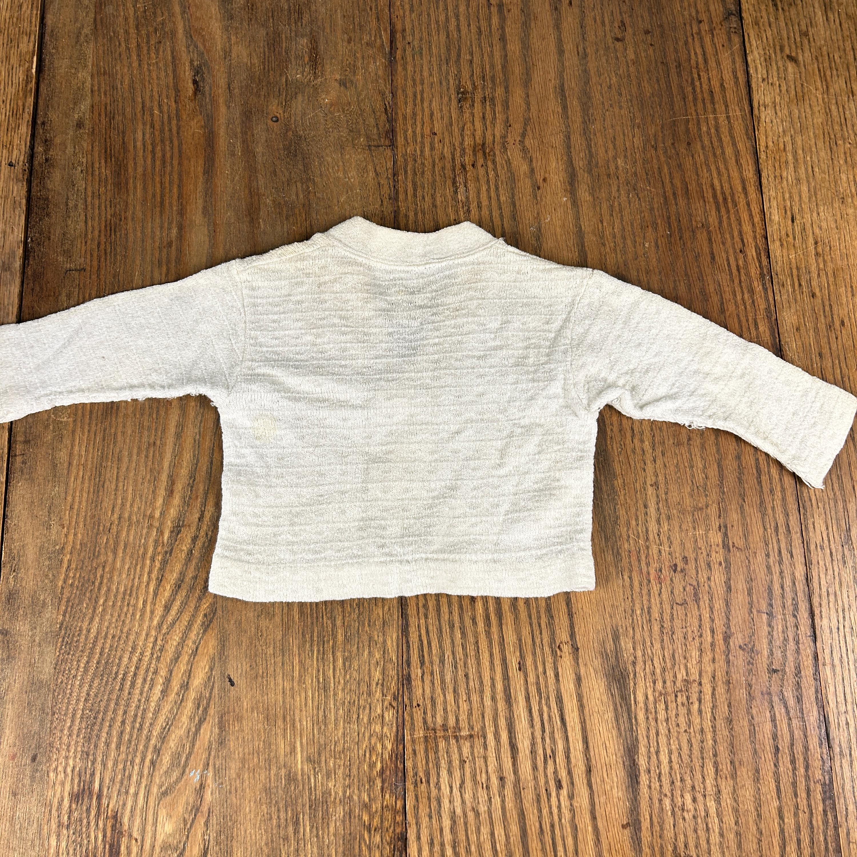 Vintage 1960s Kid'N Cotton by Sternberg 12 Months White Cotton Ribbed Baby Bodysuit With Snap Closure and Button Shoulder with matching 3-button V-Neck Cardigan