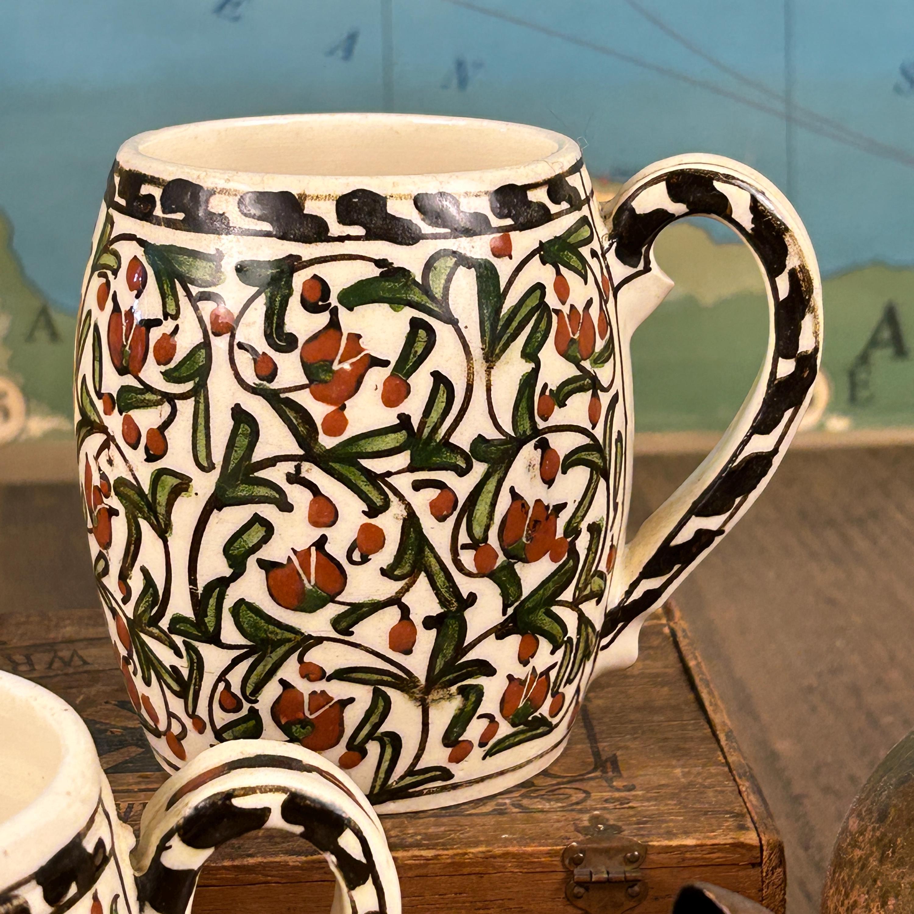 The mugs show some signs of time gone by, the ceramic may have small firing defects, the mugs are not exactly the same as they have been handmade and handpainted. Please see all photos as they are part of the description.