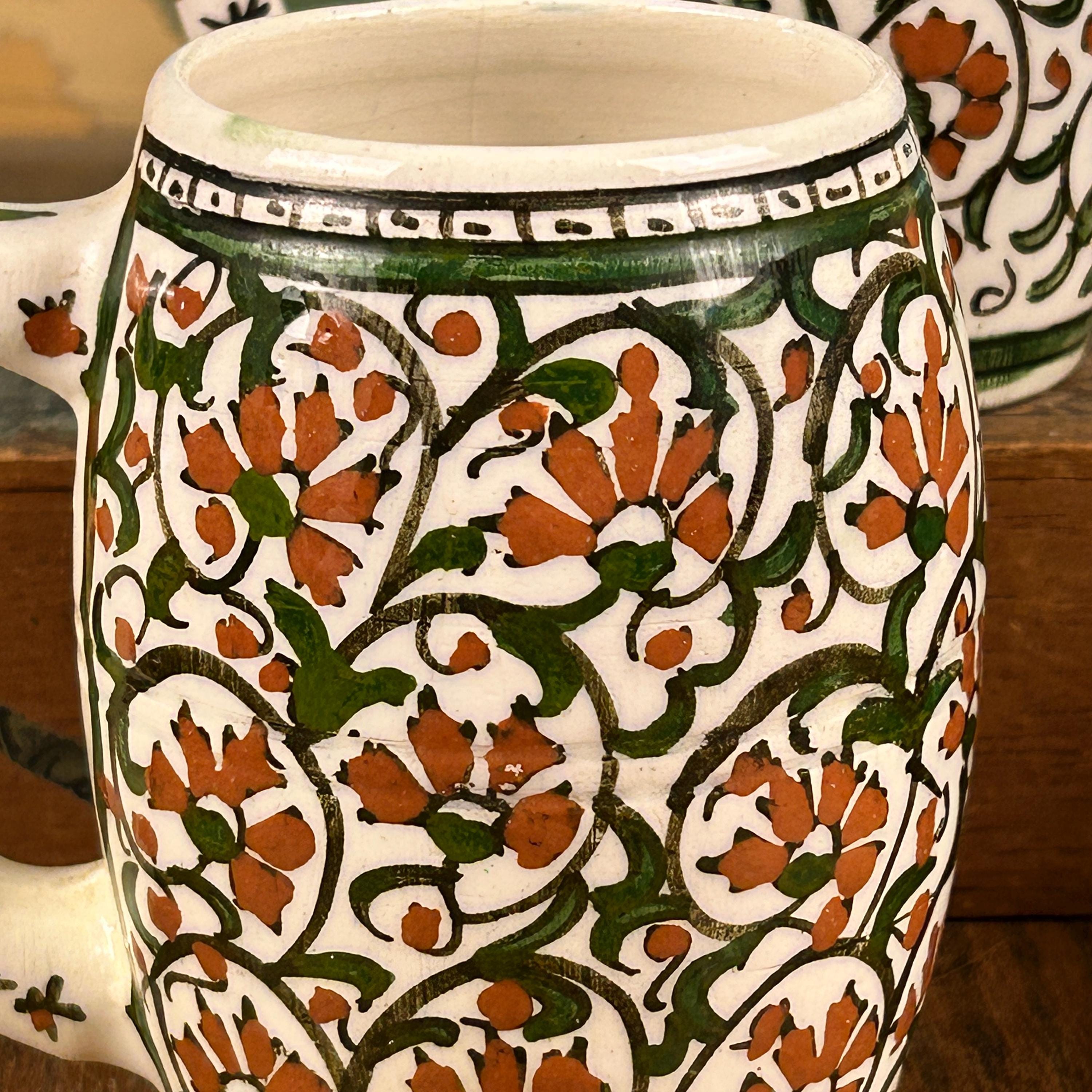 The mugs show some signs of time gone by, the ceramic may have small firing defects, the mugs are not exactly the same as they have been handmade and handpainted. Please see all photos as they are part of the description.