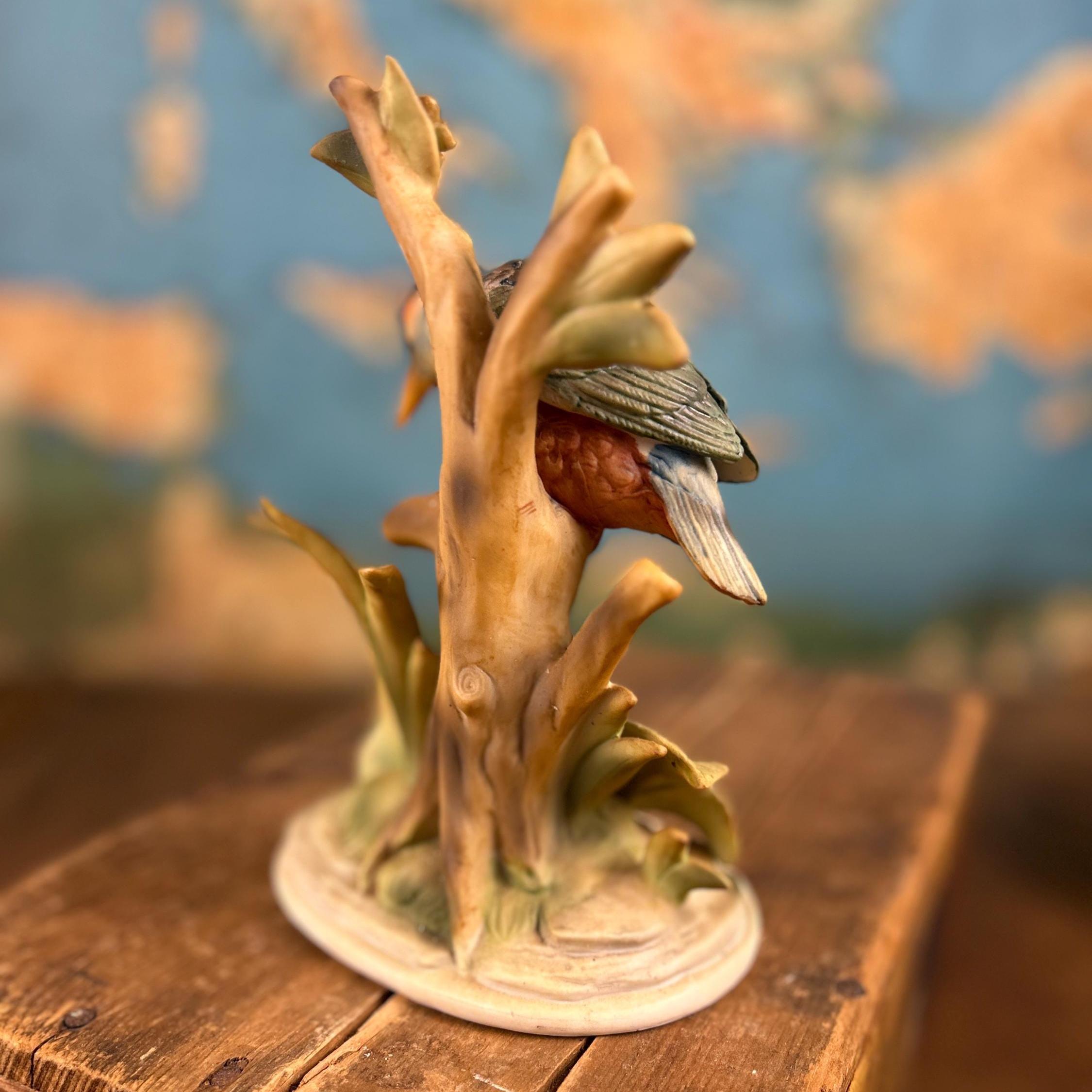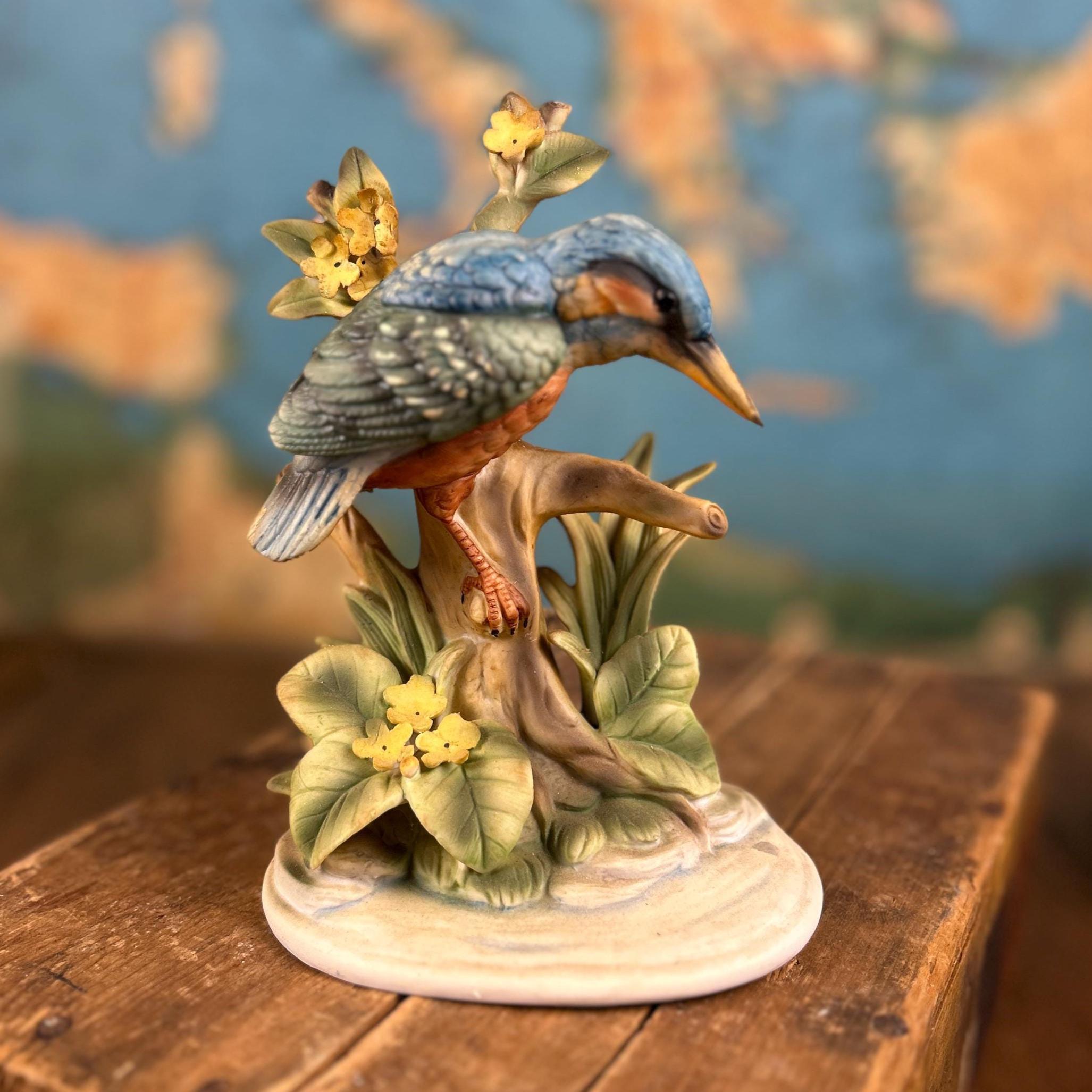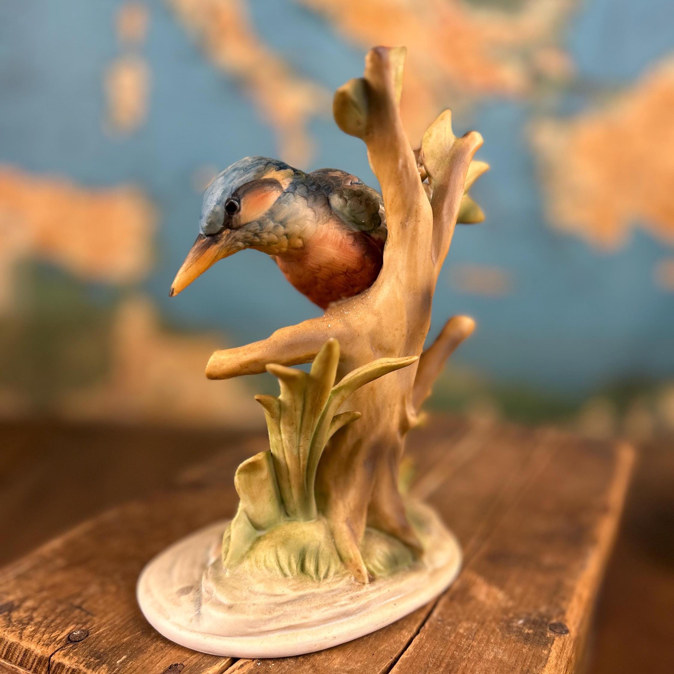 What a beautiful vintage piece of art. So detailed and the colors are beautiful. Vintage Stafford, Japan ceramic bisque beautiful Kingfisher figurine. Excellent condition with no chips or cracks. There appears some paint loss on the wings, but it does not take away from its beauty and charm. It has been well loved and cherished over the years. Please see all photos as they are part of the description. Great housewarming gift or for your favorite bird watcher. Rare find, great collectable.