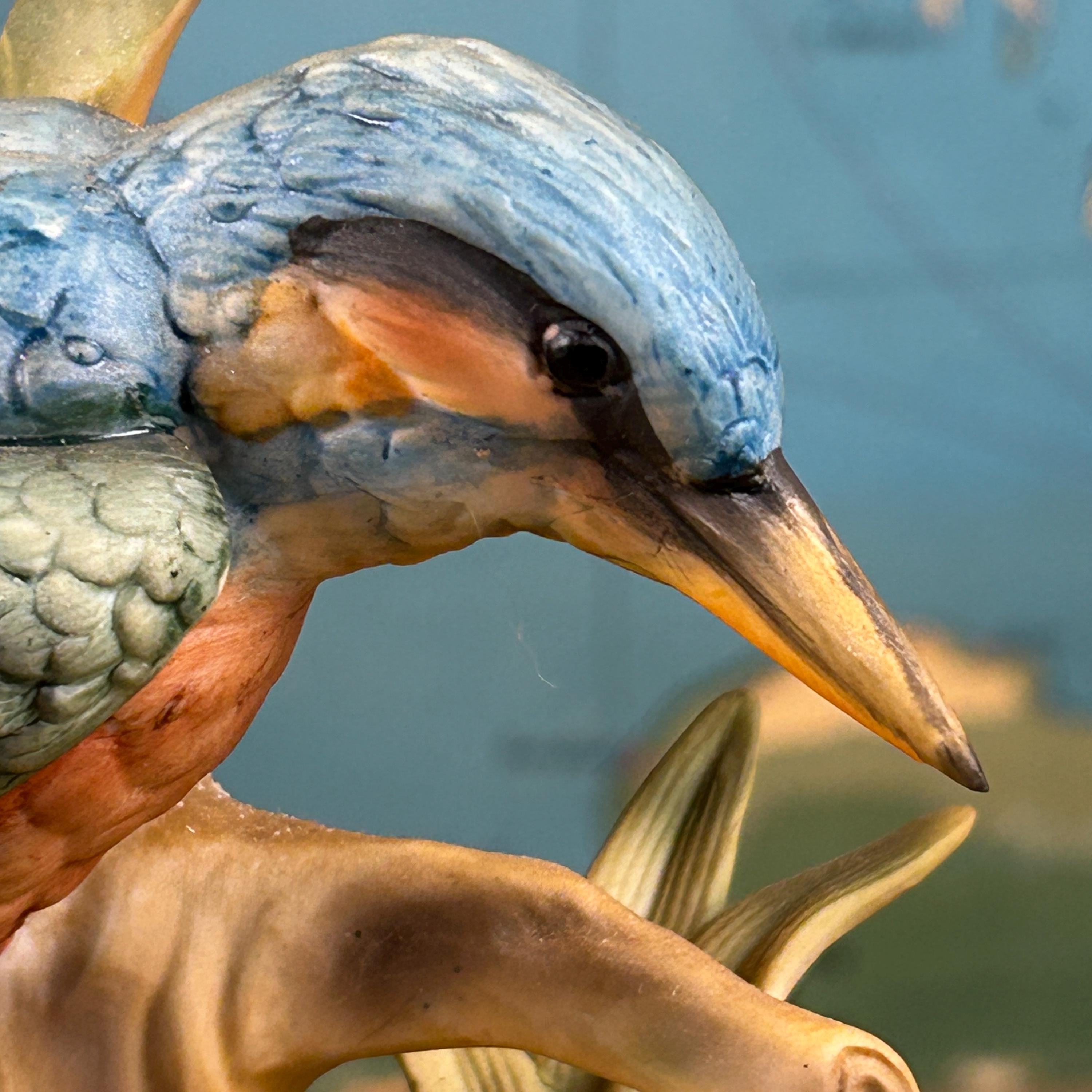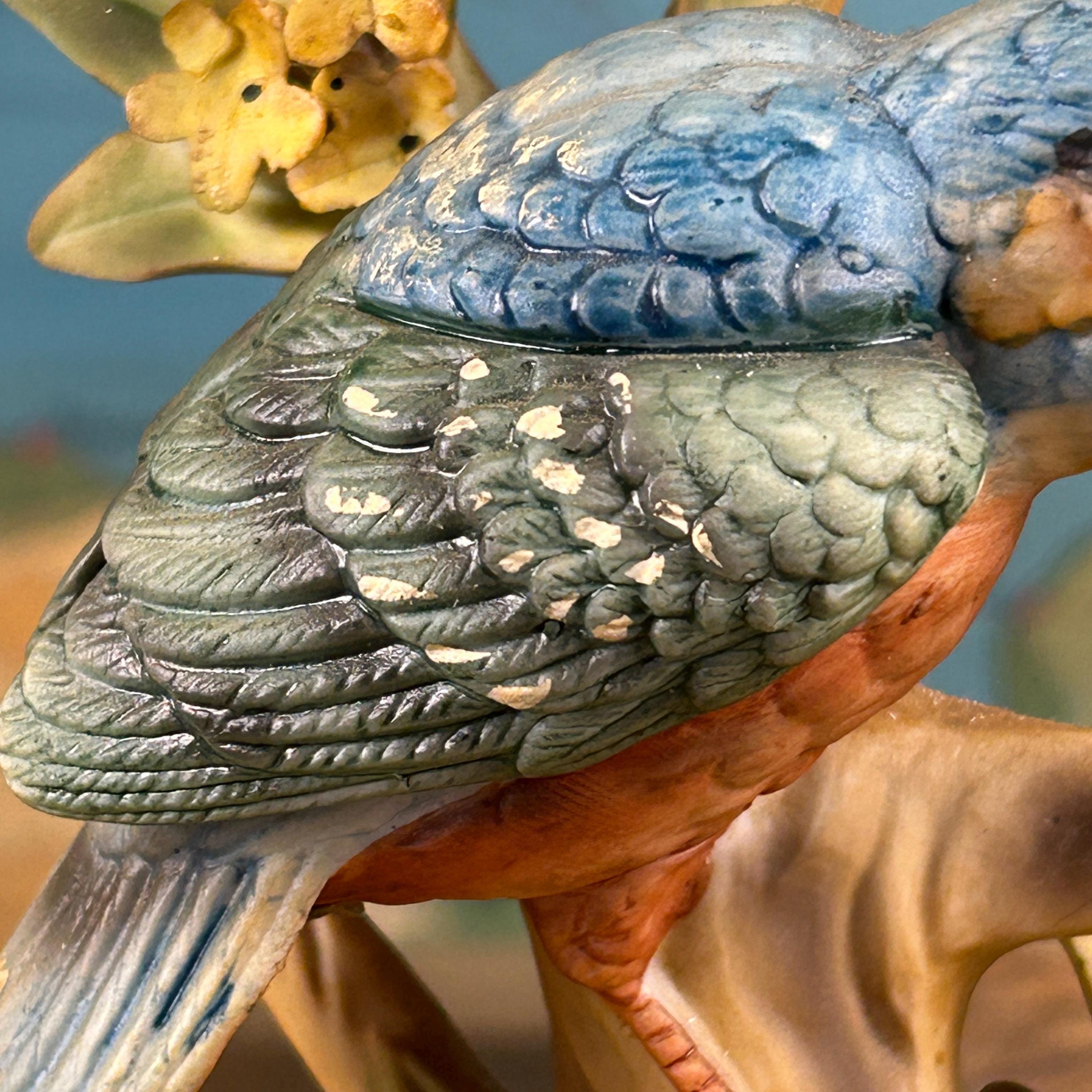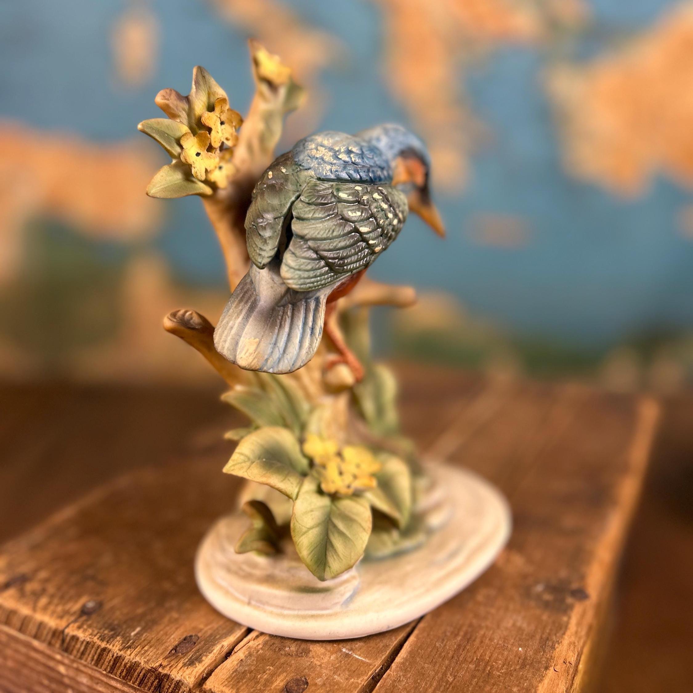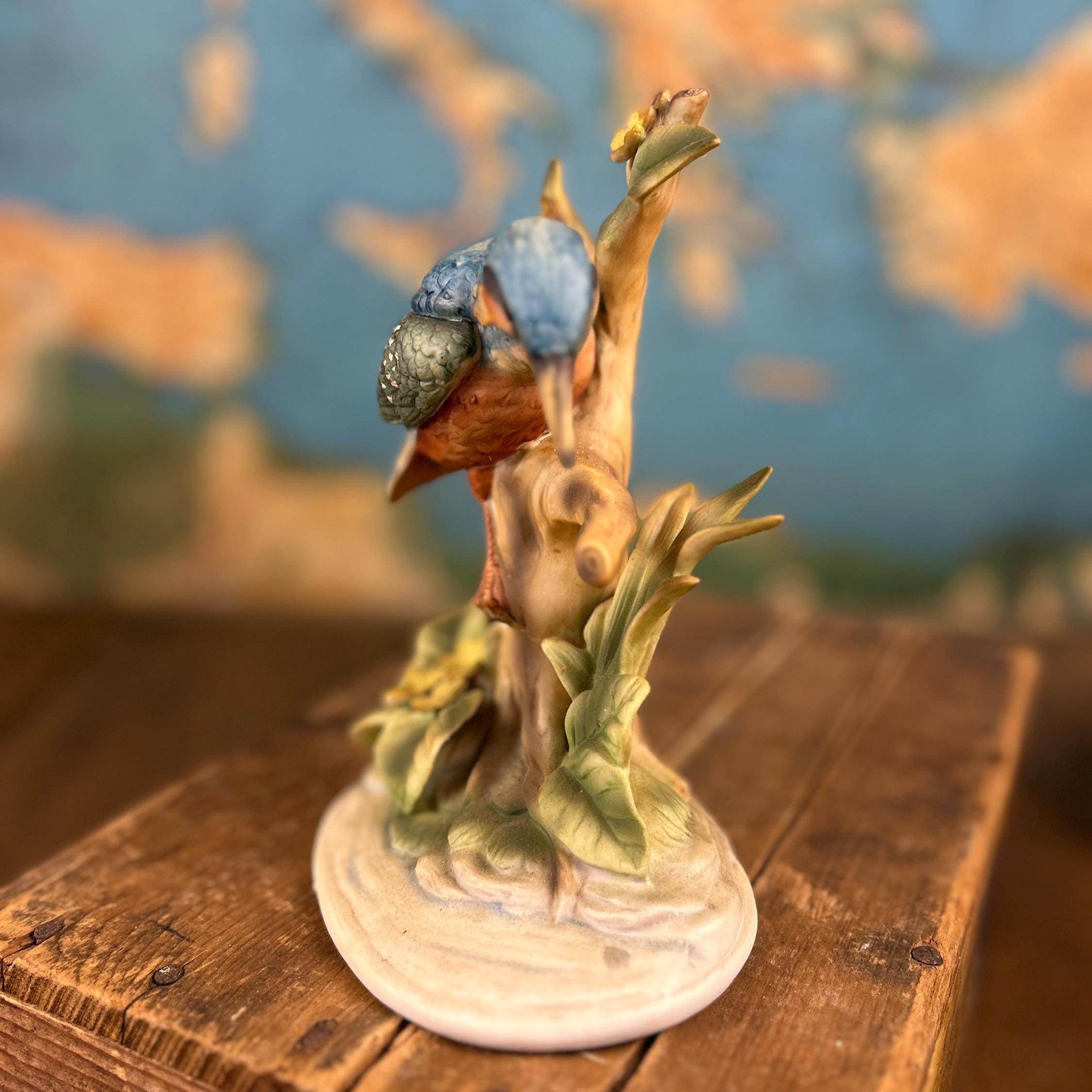 What a beautiful vintage piece of art. So detailed and the colors are beautiful. Vintage Stafford, Japan ceramic bisque beautiful Kingfisher figurine. Excellent condition with no chips or cracks. There appears some paint loss on the wings, but it does not take away from its beauty and charm. It has been well loved and cherished over the years. Please see all photos as they are part of the description. Great housewarming gift or for your favorite bird watcher. Rare find, great collectable.