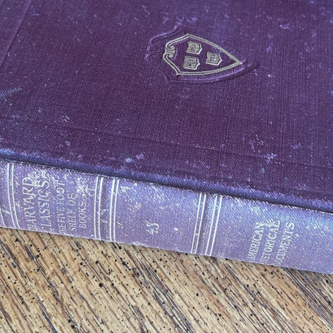 Compiled and Edited by Charles W. Eliot in 1909, the Harvard Classics is a 51-volume Anthology of classic literature from throughout the history of western civilization. The set is sometimes called "Eliot's Five-Foot Shelf." This book is the 1910 book of American Historical Documents. It is in good antique condition. Pages all intact. Some spotting on pages. Beautiful wear on cover. Please see all photos.