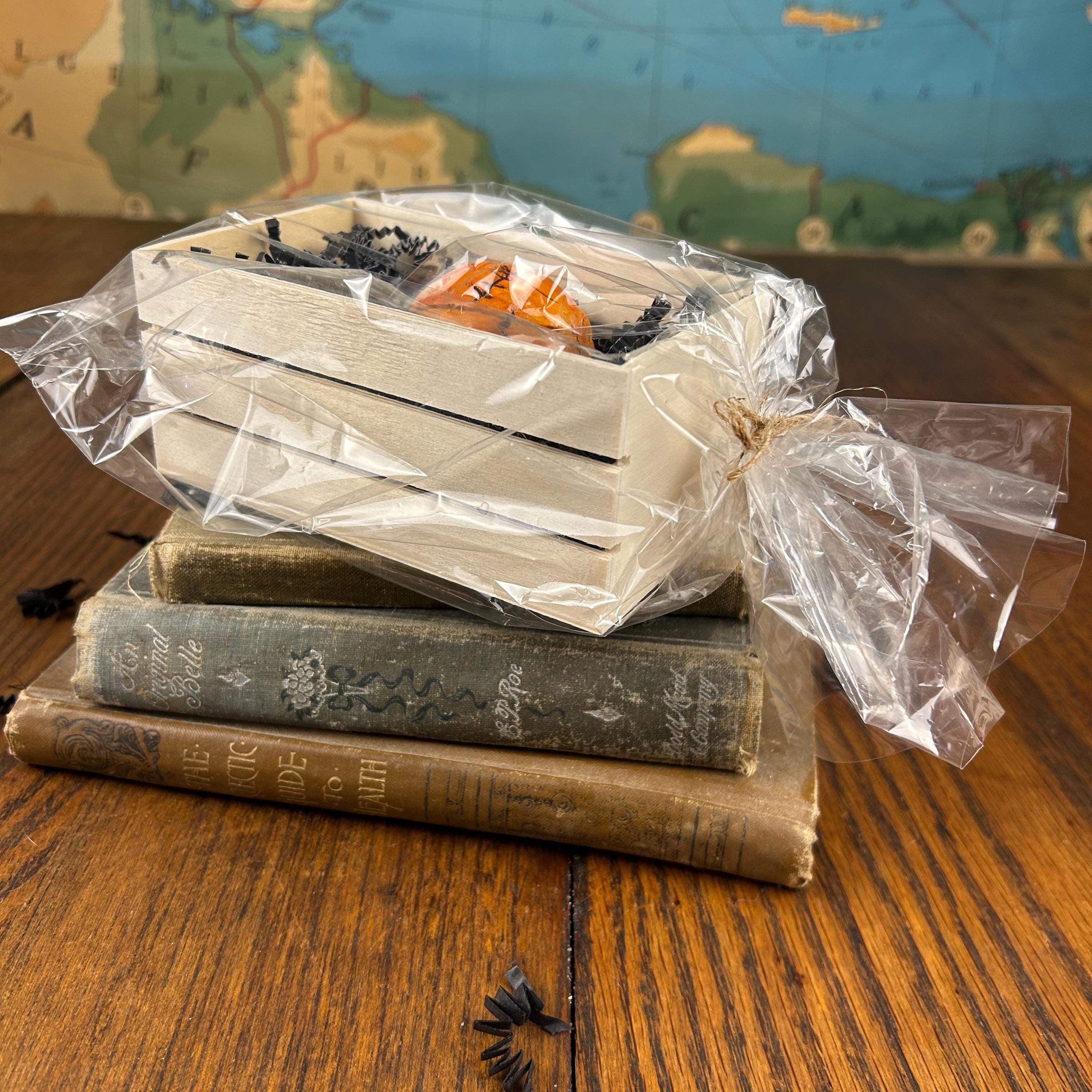 This tiny pumpkin is handmade by myself out of polymer clay. Each one has a unique style and look and comes with their own Certificate of Authenticity along with their name. They are sculpted, baked, hand-painted and finished with semi-gloss coating. Each one is signed on the bottom and comes packaged in its own little wooden box, crinkle paper shred, wrapped in a clear bag, and tied with twine.